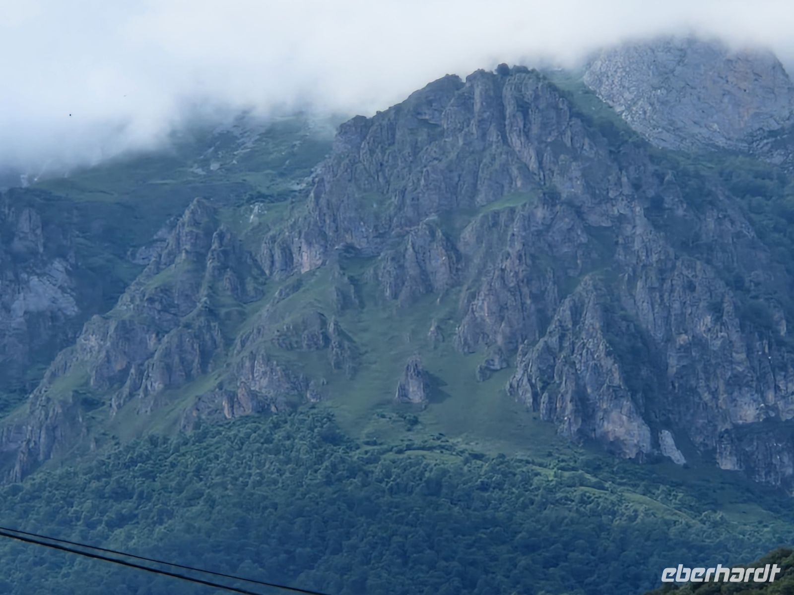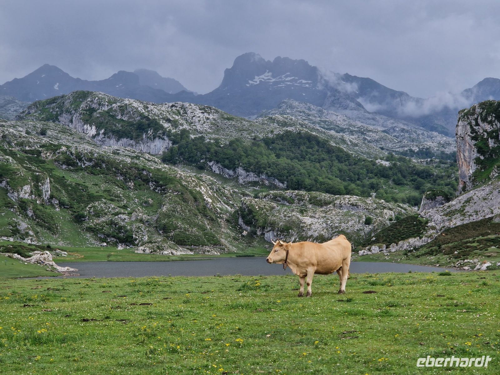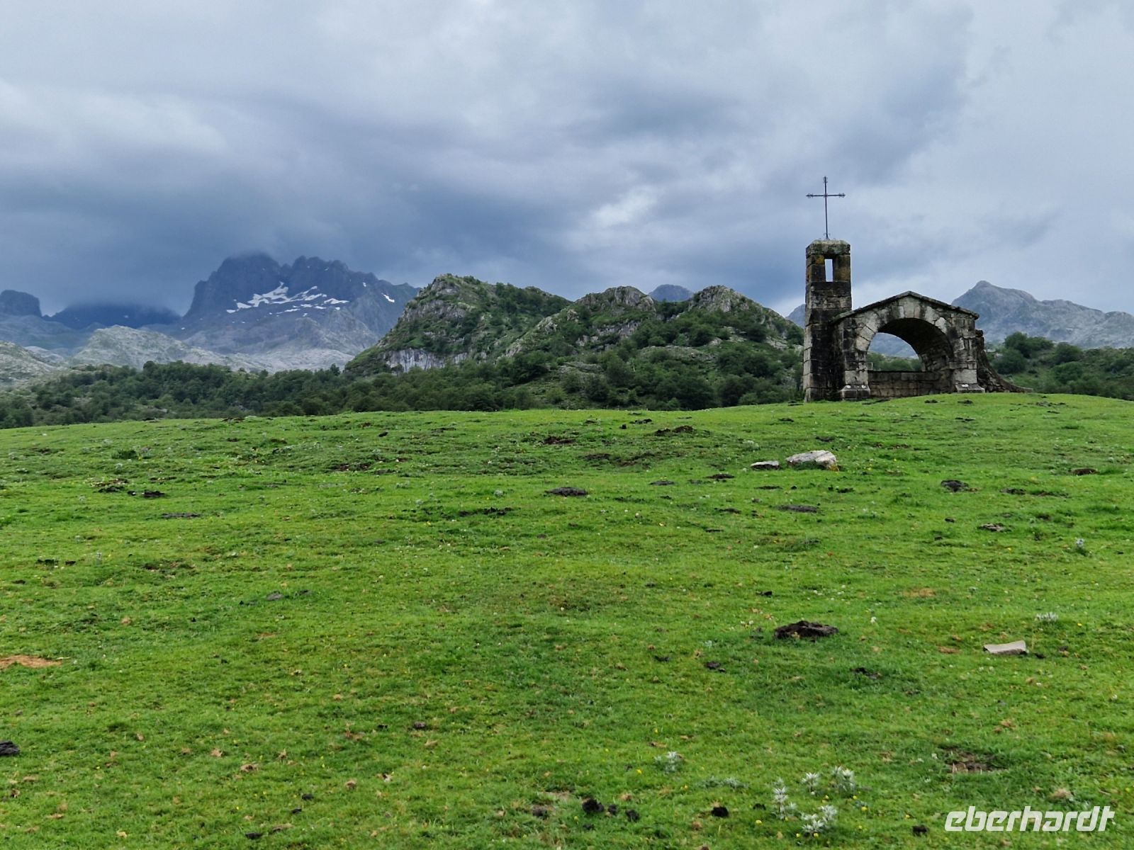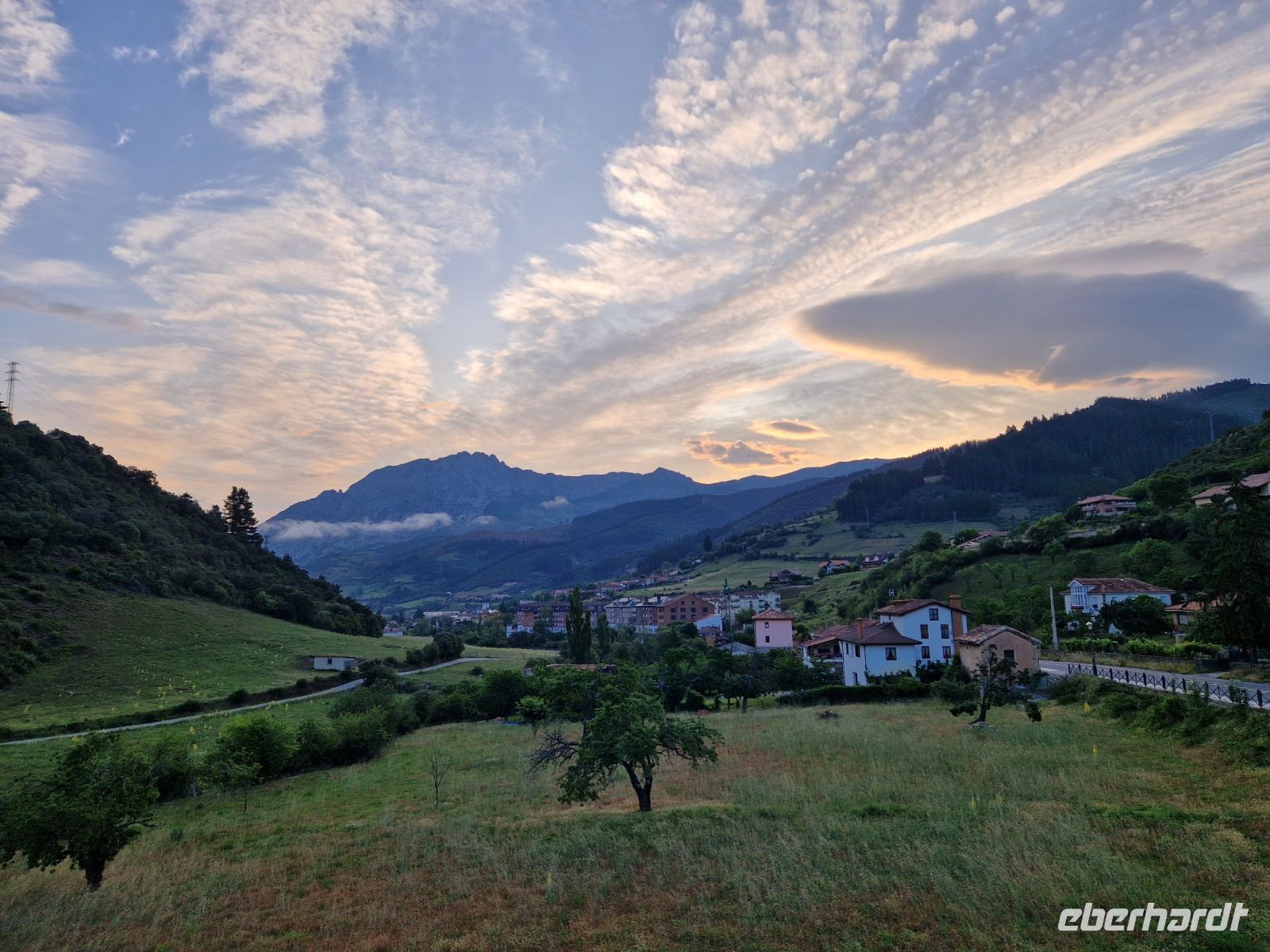 Das Wetter könnte heute besser sein aber dazu hatten wir bis jetzt und auch gestern Glück bei der Wanderung mit Oscar. Wir genießen die grüne Wiese mit Kühen, die das ganze Jahr hier Blick auf die voll mit Schnee bedeckten Gipfel des Picos de Europa haben. Plötzlich aber kam ein Gewitter. Wir werden es nicht vergessen. Es war nicht nur Regen, sondern auch Blitze dabei und laut Erfahrung, waren Sie nicht so weit weg von uns. Wir haben uns alle gegenseitig geholfen und am Ende könnten wir die Wanderung sogar mit Sonne wieder beenden. Wir waren total nass und Ines hatte die tolle Idee uns lieber so schnell wie möglich umzuziehen bevor wir am frühen Nachmittag weiter nach Ribadeo (schon in Galizien) an der Atlantik-Küste fahren. Bei Cangas de Onis wo man eine „romanische“ Brücke zu Fuß zu überqueren kann, werden wir uns am Busbahnhof umziehen. Niemand hat nichts gesehen oder mindestens, niemand was nicht wollte. Der Busfahrer Miguel hat gelacht und sagte sowas wird er auch nicht schnell vergessen. Wir waren trocken und glücklich.