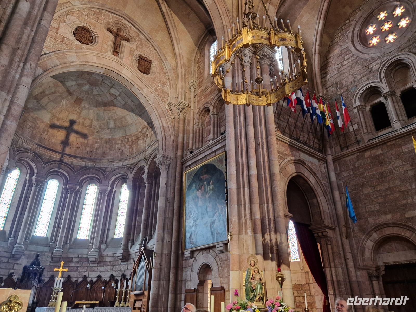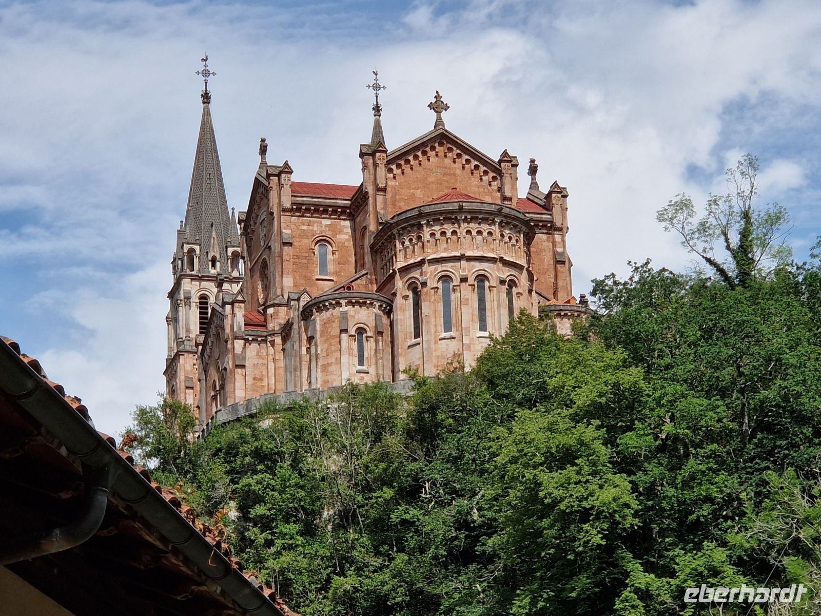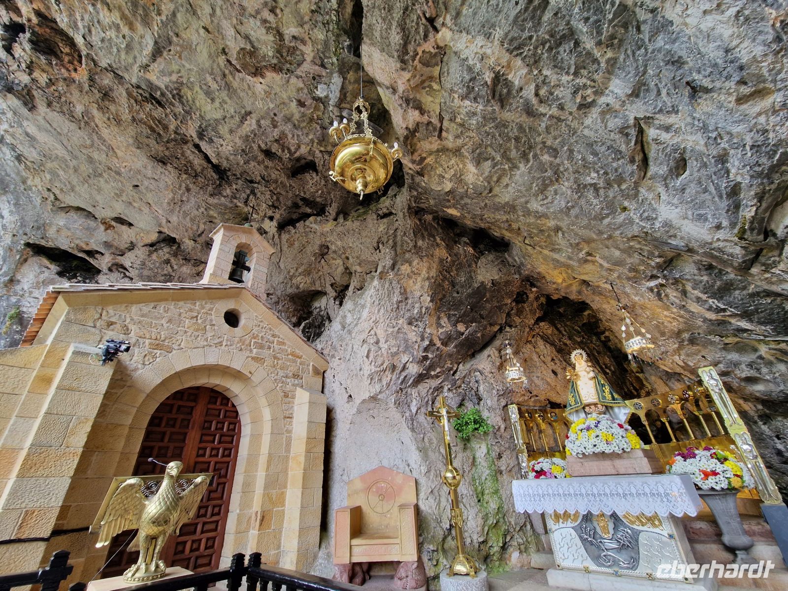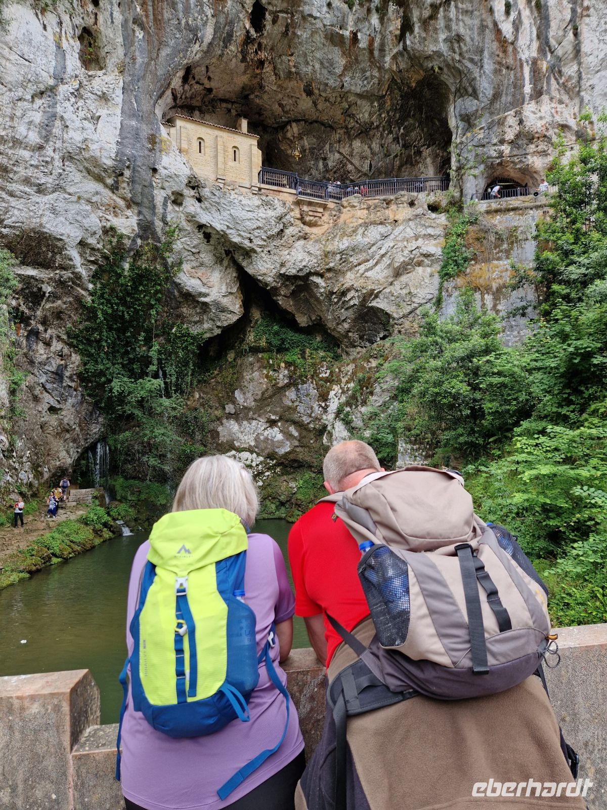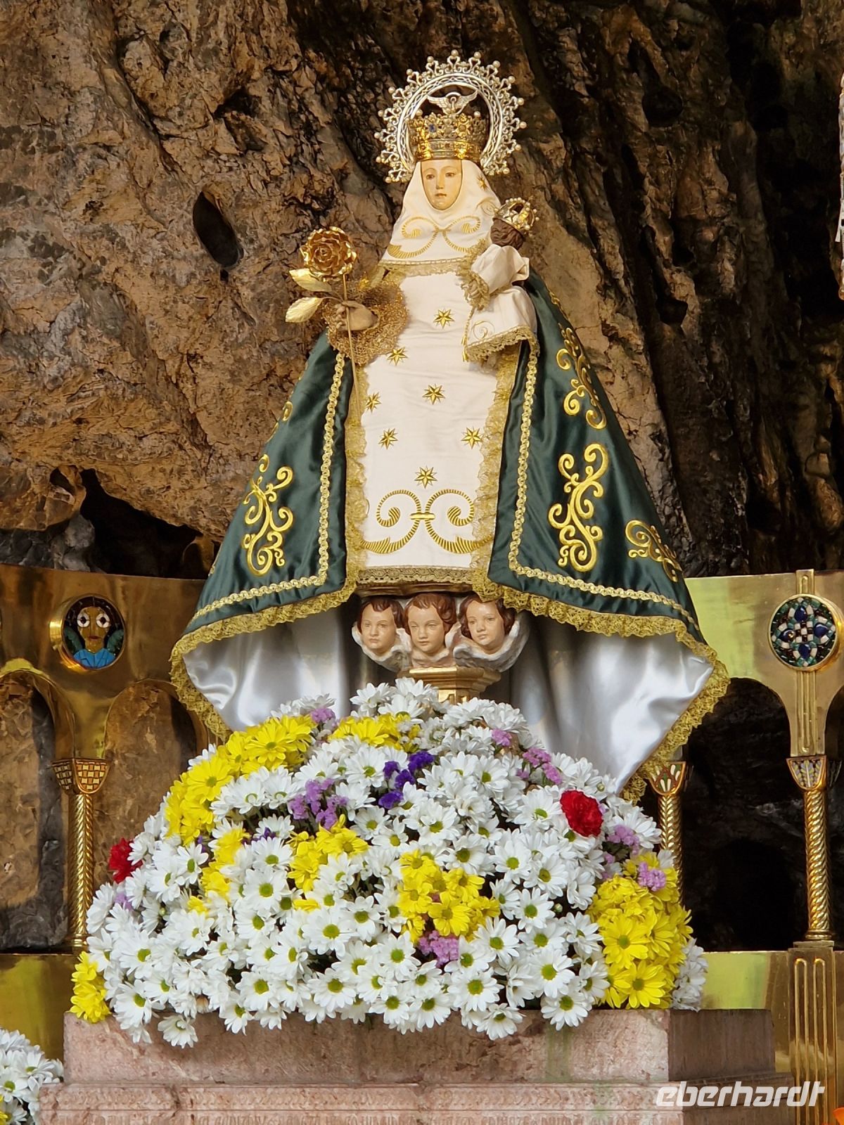 Wir besichtigen erstmals dem Wallfahrtsort von Covadonga, wo die große Basilika und eine kleine Kapelle in die Felsengrotte gebaut sind. Hier fanden wir auch andere Pilger, da hier auch eine Station an der Küsten-Nordvariante des spanischen Jakobswegs ist. Berühmt ist Covadonga, da 711 genau hier in diesem Gebirge die Reconquista (Wiedereroberung der Christen) mit der Schlacht von Covadonga, die erst 1492 im andalusischen Granada beendet war, begann. Bei der Heilige Grotte konnte Benjamin für die Madonna zwei Lieder Singen und Regina eine Kerze für uns alle anzünden damit unsere Reise weiter gut läuft.