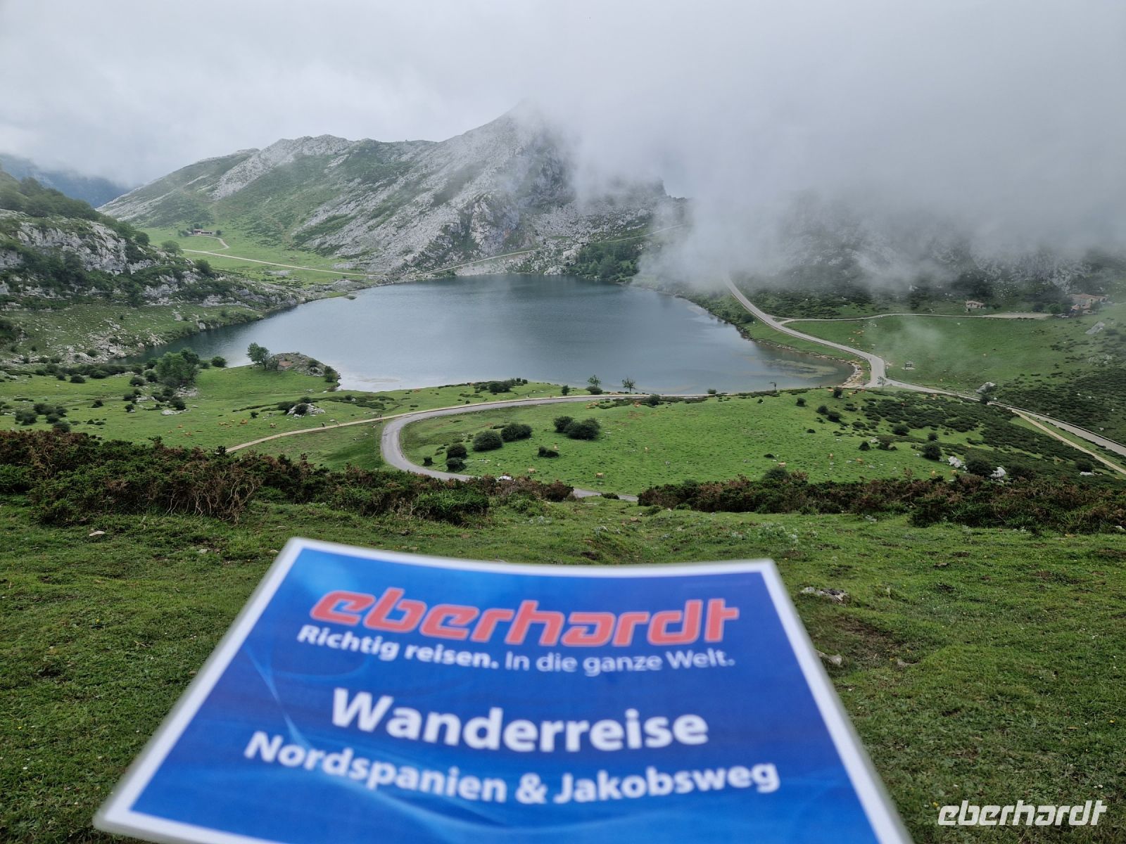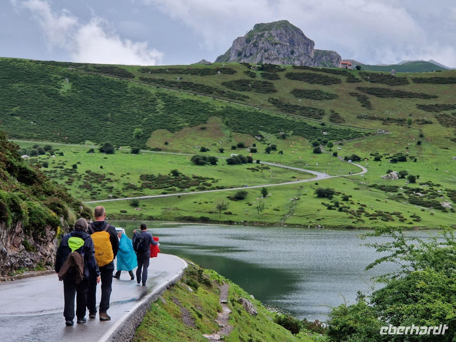 Gleich geht es weiter über eine serpentinenreiche Panoramastraße bis zu den Gletscher-Seen von Covadonga. Berühmt sind die auch durch den Radsport, da diese Straße hinauf zu den Lagos de Covadonga zu den berühmtesten Anstiegen der Vuelta a Espana führt. Dieser Anstieg von rund 200 auf 1.110 Meter Höhe beträgt durchschnittlich 6,3% und maximal 13%! Aber keine Sorge: wir bewältigten diese Strecke mit dem Bus. Oben gut angekommen wollen wir gemeinsam eine idyllische, kleine, leichte Wanderung von fünf Kilometern um die beiden Gebirgsseen von Covadonga machen: Lago Enol und Lago Ercina. Wir haben heute erstmals wieder Glück mit dem Wetter und heute wieder Sonne. Erstmals aber?? Wir besuchen das Besucherzentrum. Bevor wir diese kürzere Wanderung machen verkosten wir die Cabrales Käse, eine Blau-Edelschimmelkäse. Oberhalb vom Restaurant laufen wir zum Aussichtspunkt und können beide See mit sogar mit Sonne noch photoprahieren?? Uns gefällt es sehr gut hier.