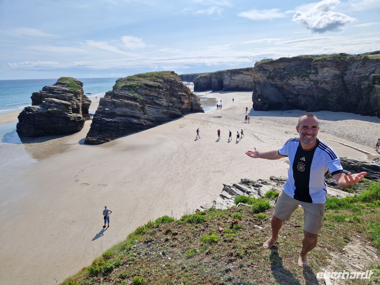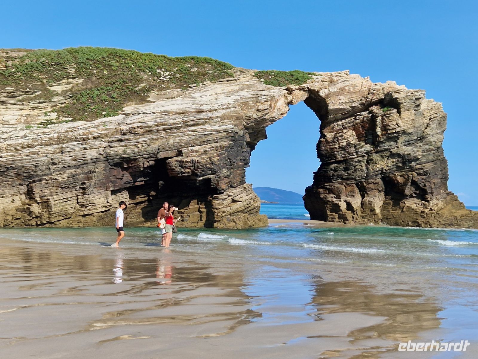 Da heute Vormittag Ebbe ist, werden wir in Ruhe diesen tollen unvergesslichen Strand bei Ebbe erstaunen. Warum bei Ebbe sieht man es am besten? Bei Ebbe bietet dieser Strand mit seinen skurrilen Felsformationen ein wahres Naturschauspiel. Einige von uns badeten sogar und alle bestaunten gemeinsam die verschiedenen Steinbögen dieses Strandes. Herrlich und unvergesslich.