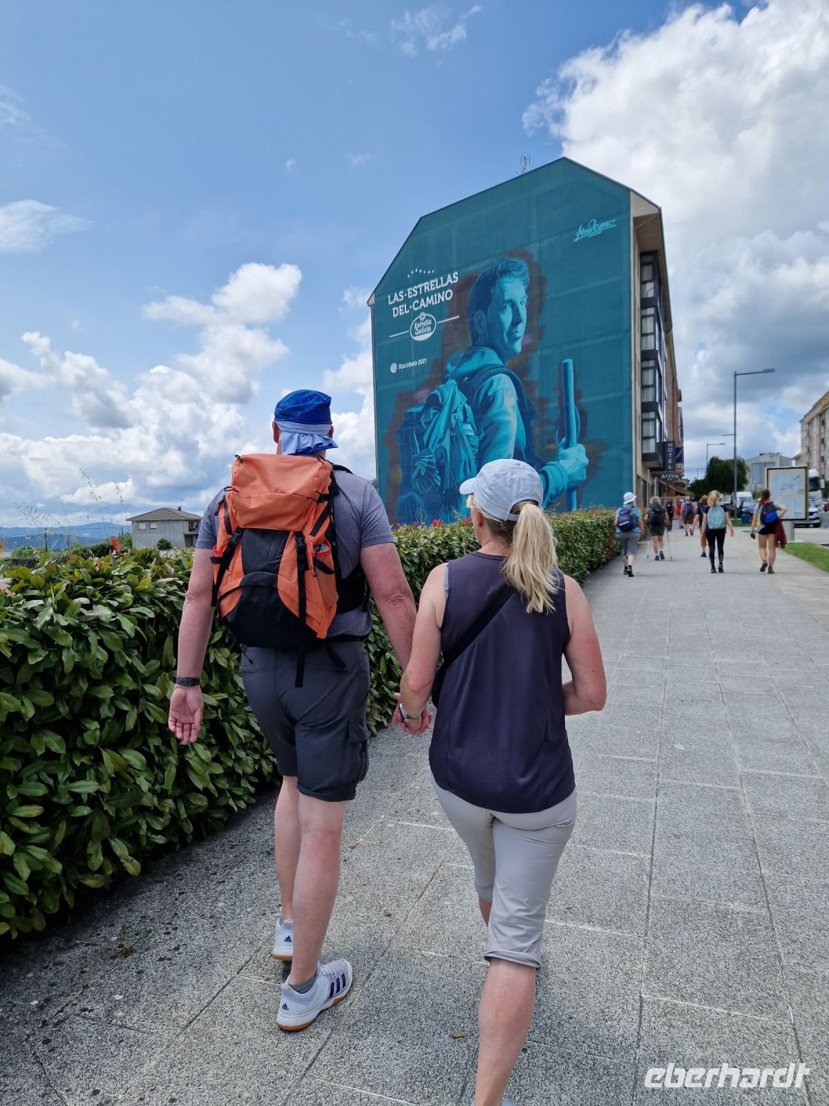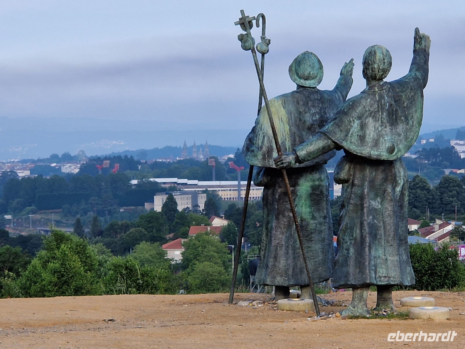 Heute wandern wir die letzte Etappe des Jakobswegs über Monte de Gozo (bei Lavacolla) bis Santiago de Compostela. Als Hauptstadt der Provinz Galicien ist sie das Ziel unzähliger Pilger jedes Jahr. Die Türme und das Glockenläuten der Kathedrale sind von weit her zu hören und heißen Sie in dem weltberühmten Wallfahrtsort willkommen. Heute entschieden wir uns alle diese letzten 5 Kilometer bis Santiago ohne reden zu wandern. Wir befinden uns hier vor den Toren von dem weltbekannten Wallfahrtsort Santiago de Compostela und Hauptstadt der Provinz Galicien. Wir wandern heute das berühmte letzte Stück des Jakobswegs von Monte do Gozo von wo man die Türme von der Kathedrale sieht bis Santiago de Compostela. Unsere Seele freut sich schon darauf! Auf dem Weg sehen wir die Türme der Kathedrale schon von weitem und kamen wie schon im Mittelalter in der Stadt an, um traditionell den Apostel in der Kathedrale zu umarmen. Am Obradoiro Platz gegenüber der prächtigen Fassade der Kathedrale machten tollen Bildern für die Erinnerung.