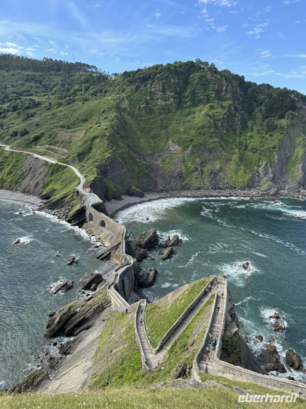 Zu Beginn des Tages fuhren wir nach Bermeo, wo sich einer der wichtigsten Häfen der Region befindet. In der Nähe dieses Dorfes haben wir eine großartige Wanderung bis zur Kapelle des Heilige Johannes von Gaztelugatxe unternommen. Es war eine schöne Route mit ihren Schwierigkeiten, eine Mischung aus beeindruckenden Panoramen, Legenden und den 241 Stufen auf den Spuren des Heiligen Johannes. Gestärkt durch unser gutes Frühstück waren auch die vielen Stufen kein Problem für uns und wir haben alles geschafft!!