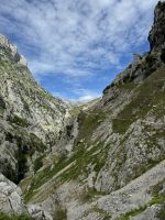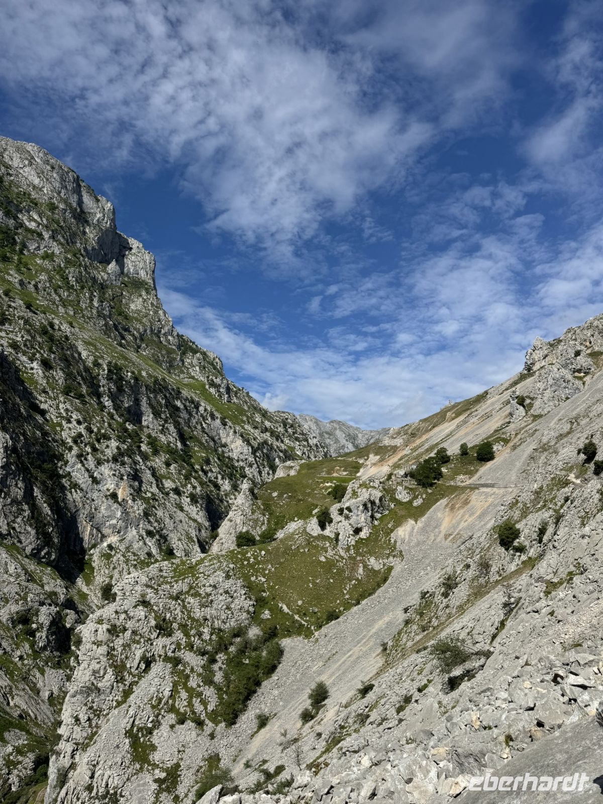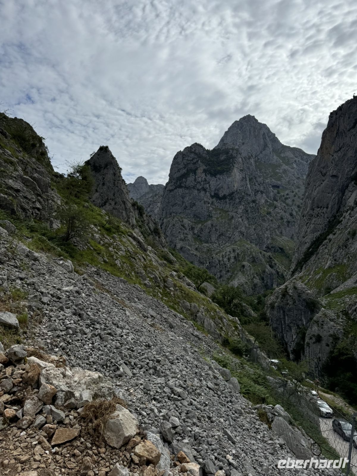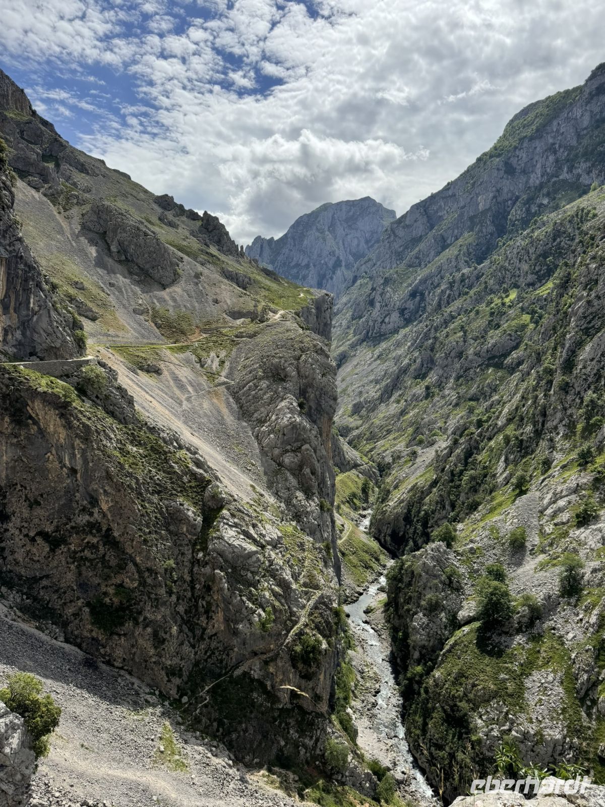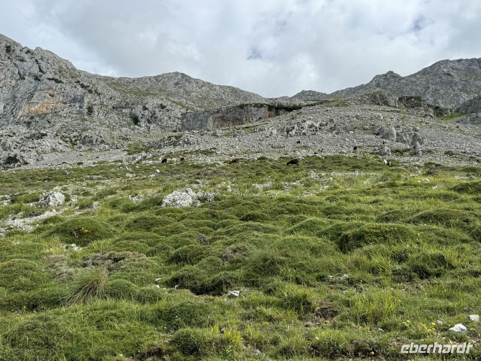 Oben angekommen, bekamen wir herrliche Ausblicke auf die Schlucht und den imposanten Nationalpark Picos de Europa, sowie auf die verschiedenen Gipfel zu Gesicht. Ab diesem Punkt steigerte sich unser Tempo leicht und jede Kurve brachte eine neue Überraschung mit sich, wie die netten Ziegen, welche uns begrüßt haben.