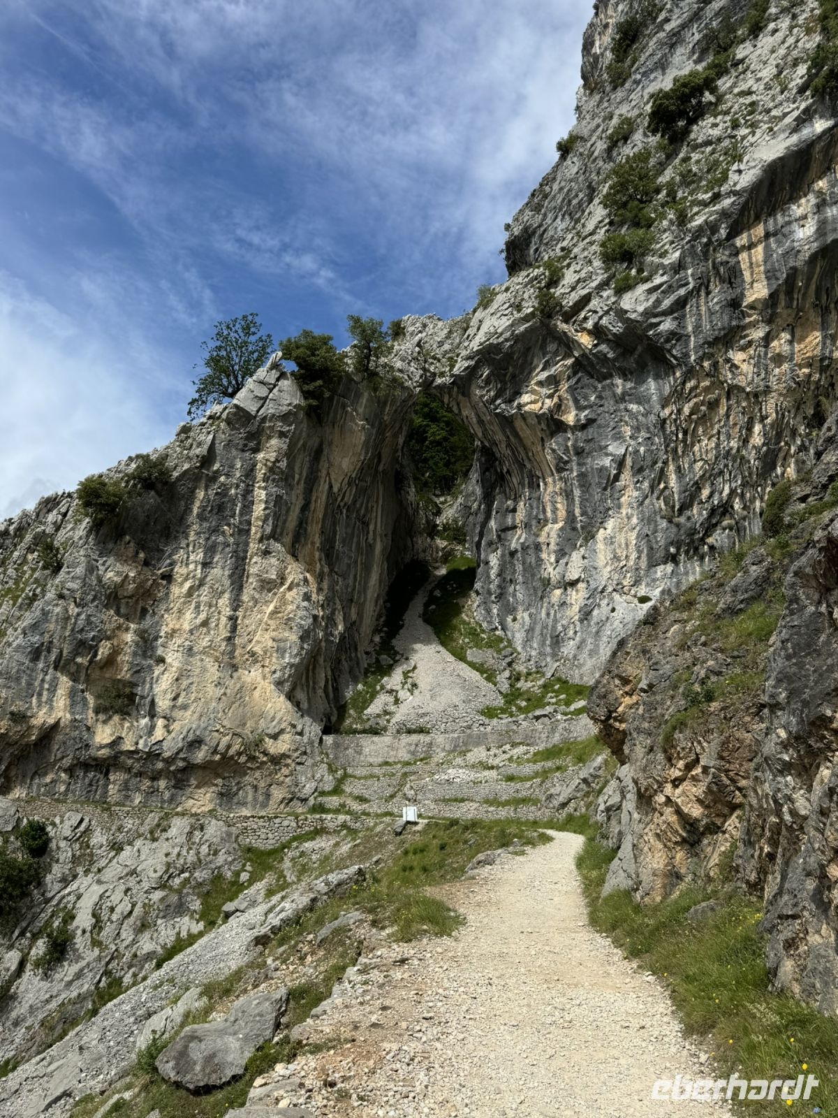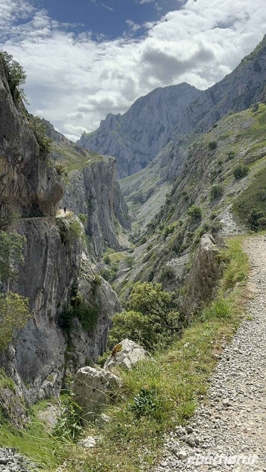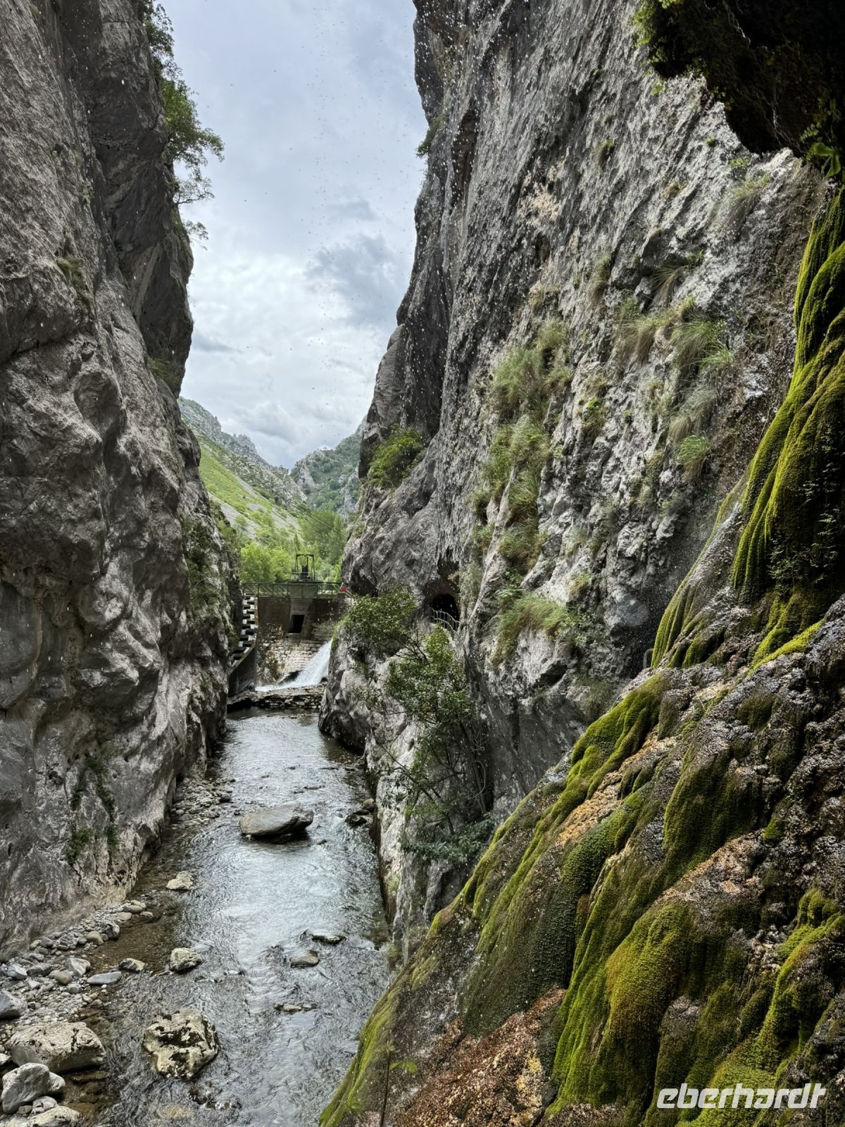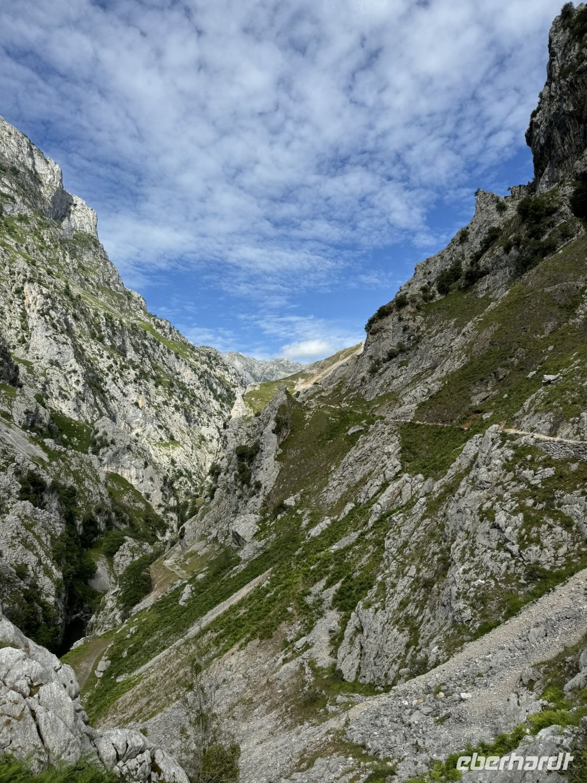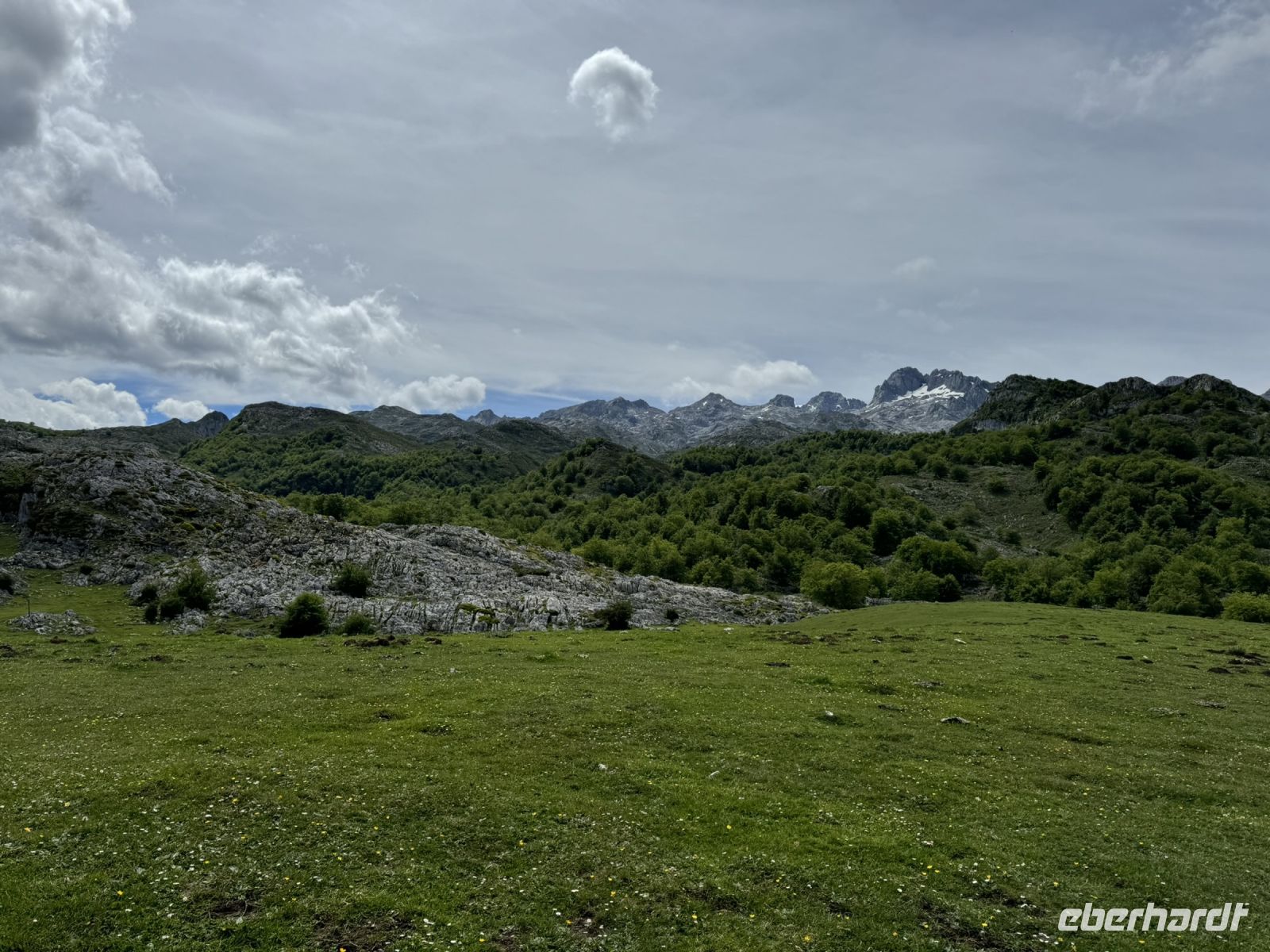 Oben angekommen, bekamen wir herrliche Ausblicke auf die Schlucht und den imposanten Nationalpark Picos de Europa, sowie auf die verschiedenen Gipfel zu Gesicht. Ab diesem Punkt steigerte sich unser Tempo leicht und jede Kurve brachte eine neue Überraschung mit sich, wie die netten Ziegen, welche uns begrüßt haben.