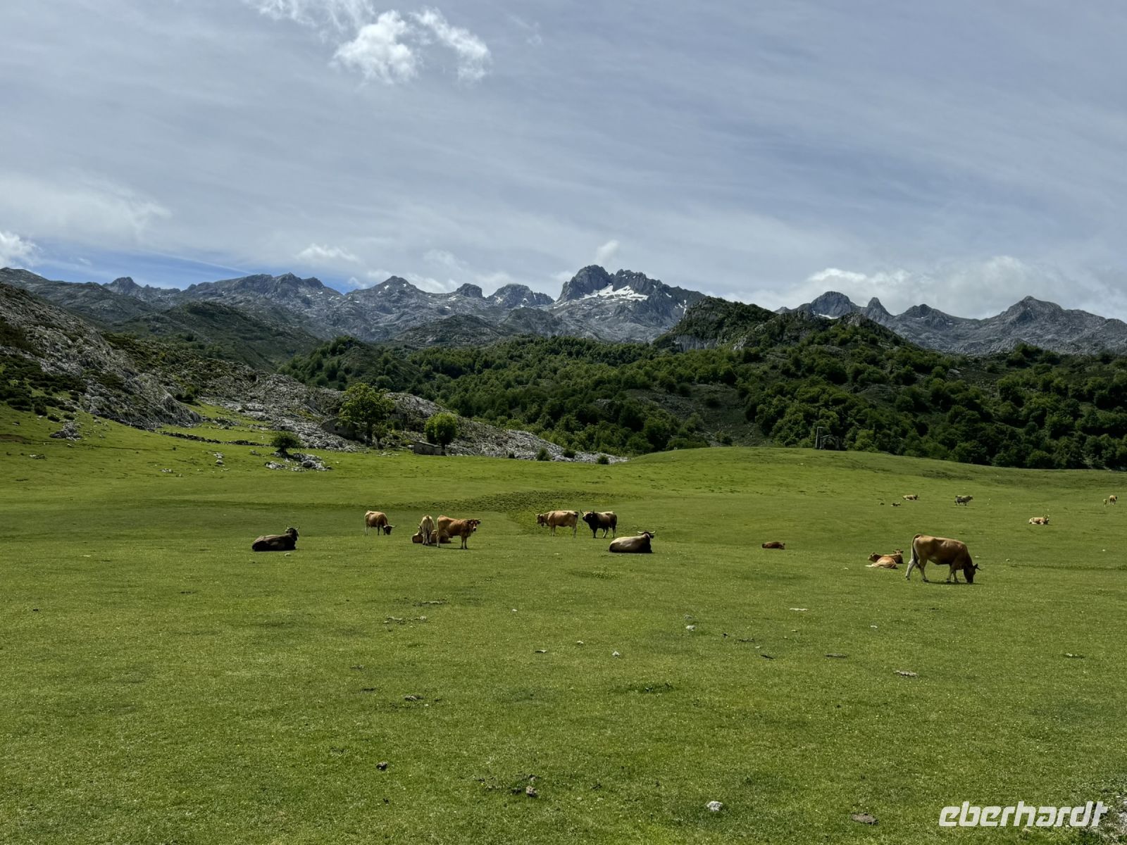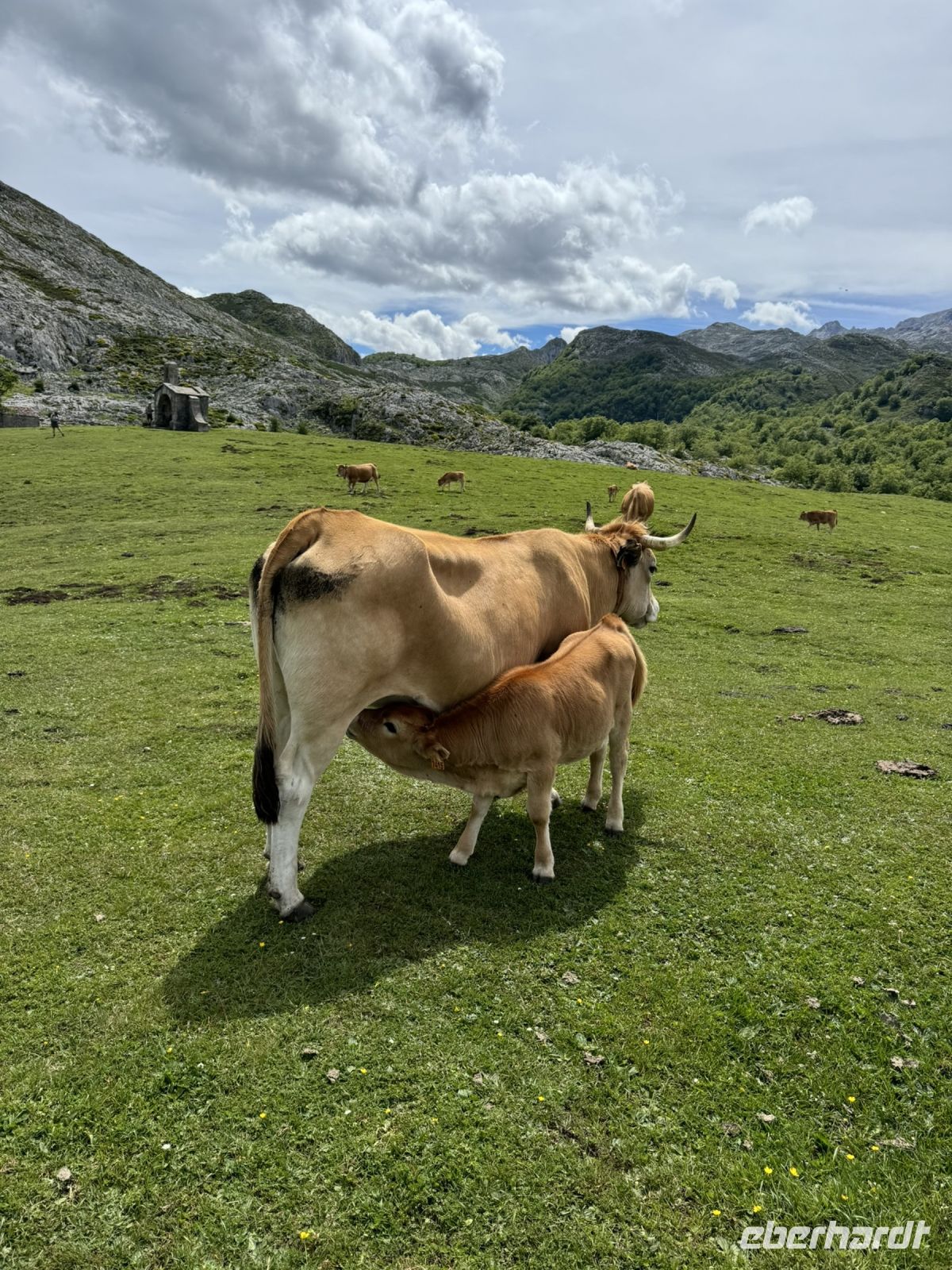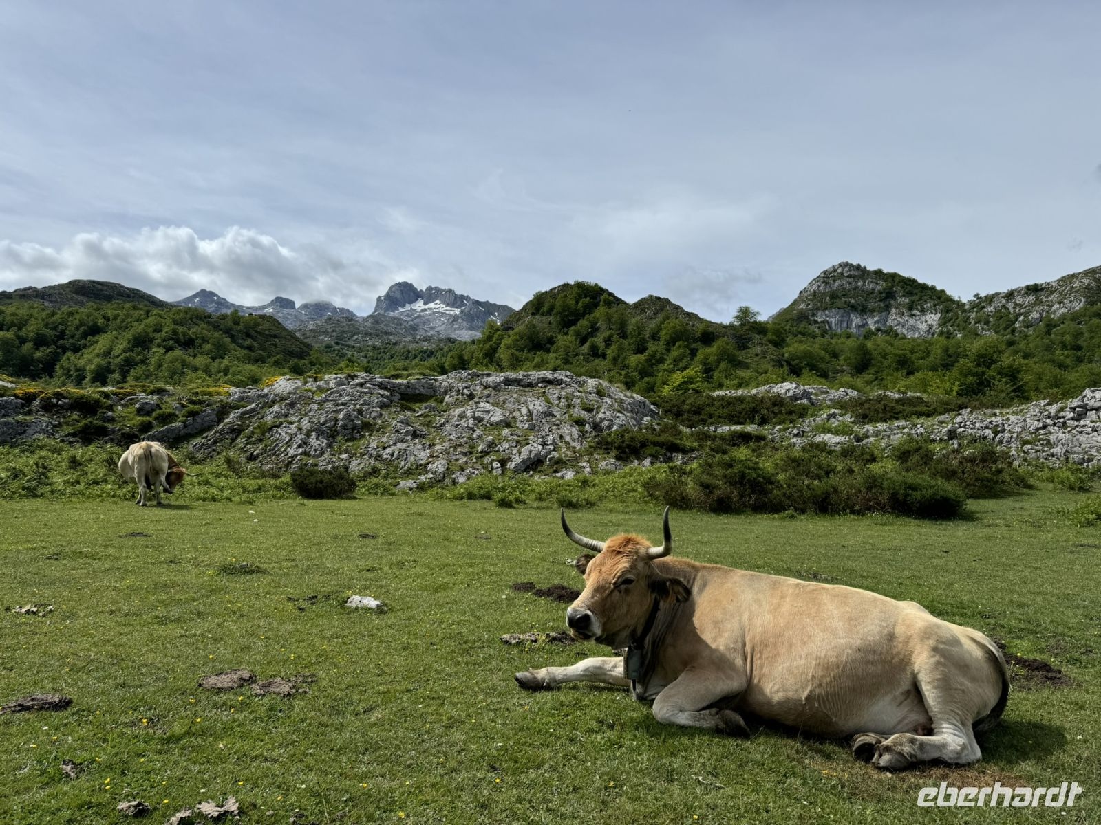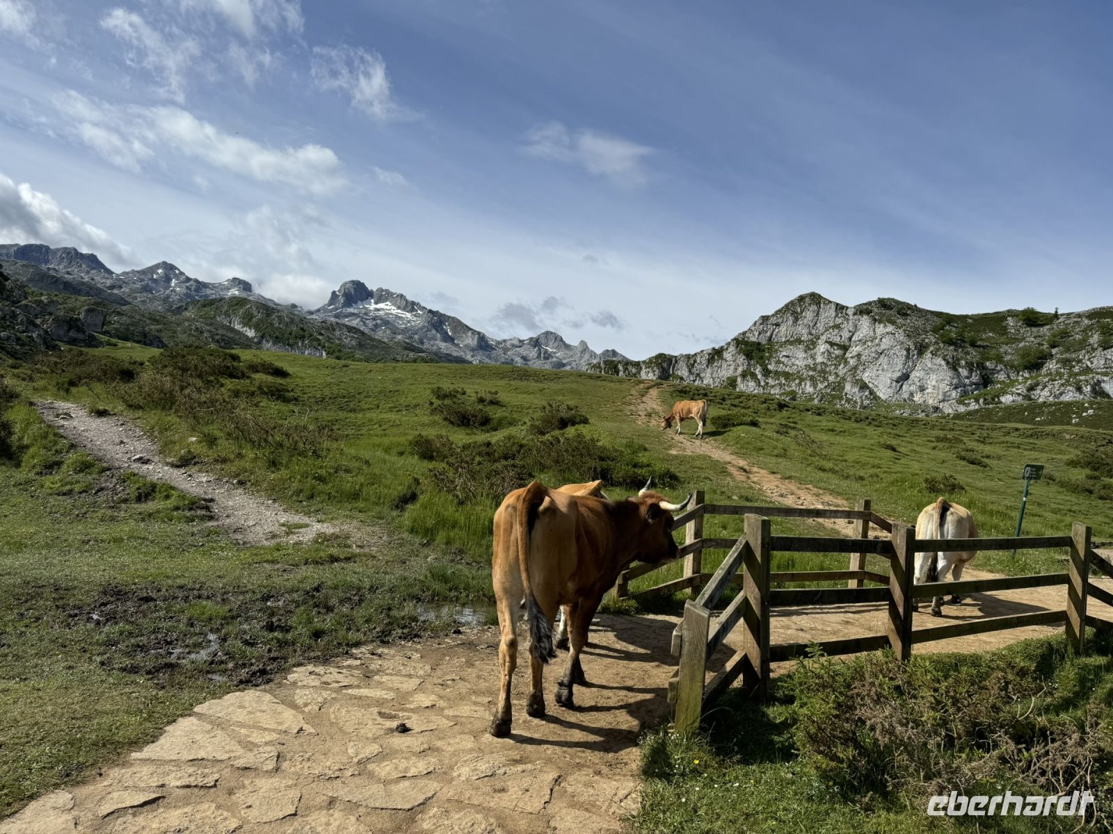 Mit einem Kleinbus fuhren wir hoch in die Berge zu den Covadonga-Seen. Die Kühe begrüßten uns und gemeinsam stiegen wir die Treppen hinauf und begannen unseren Rundgang.