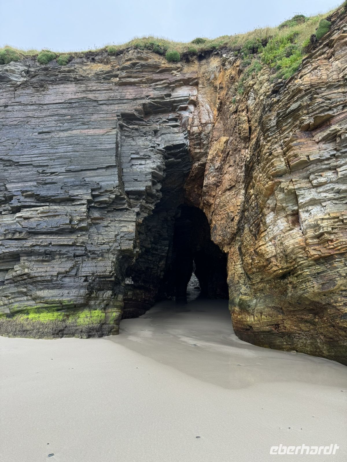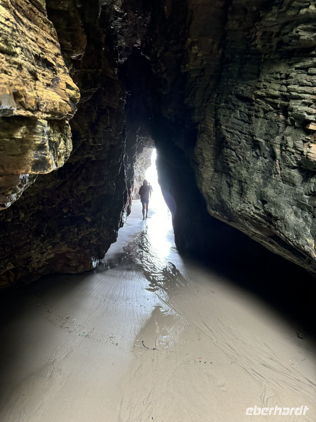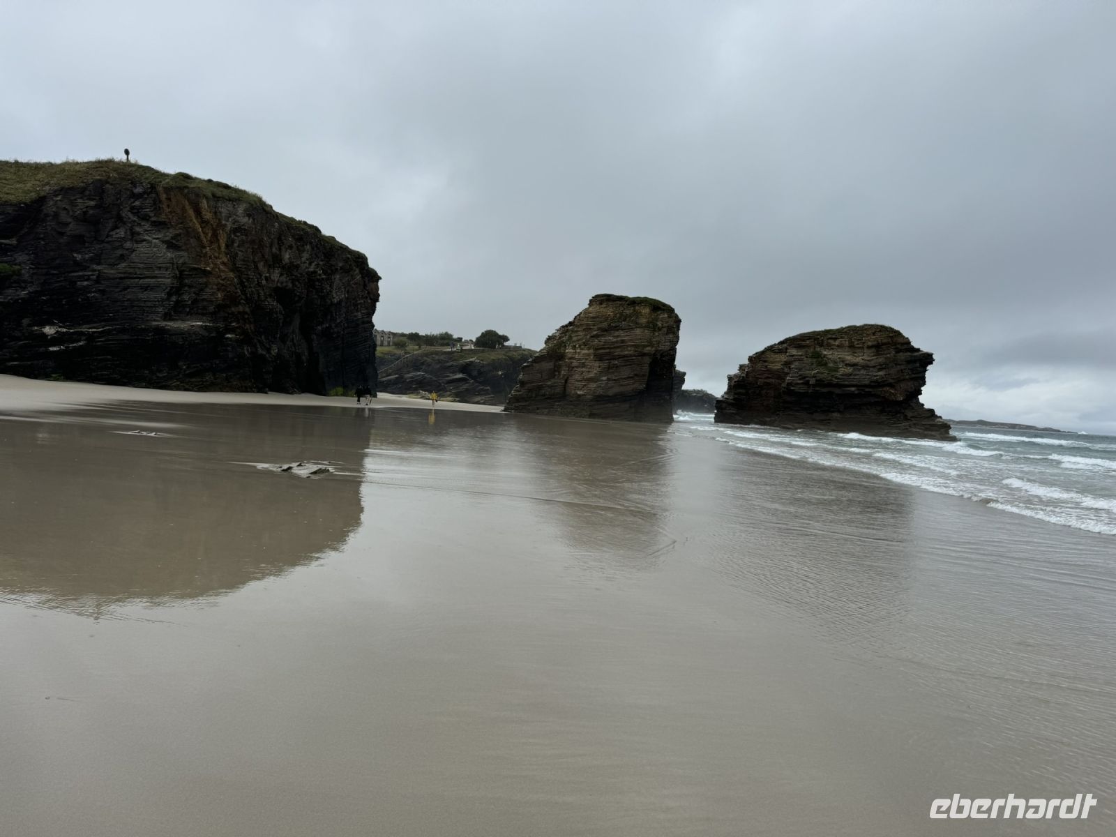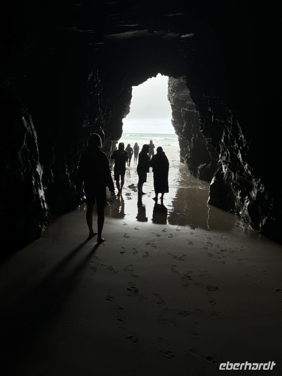 In Ribadeo angekommen besuchten wir zuerst den berühmten Kathedralenstrand! Obwohl wir bei Ebbe ankamen, war das Wasser wegen des Regens und der Wellen immer noch etwas zu hoch. Wir sind trotzdem an den Strand gegangen und etwas nass geworden, aber das gehört zu einem Abenteuer dazu. Außerdem hatten wir am Strand sehr viel Spaß.