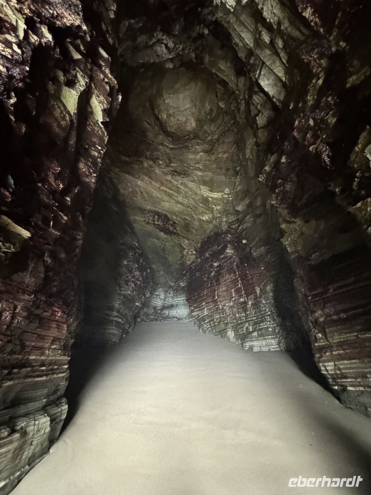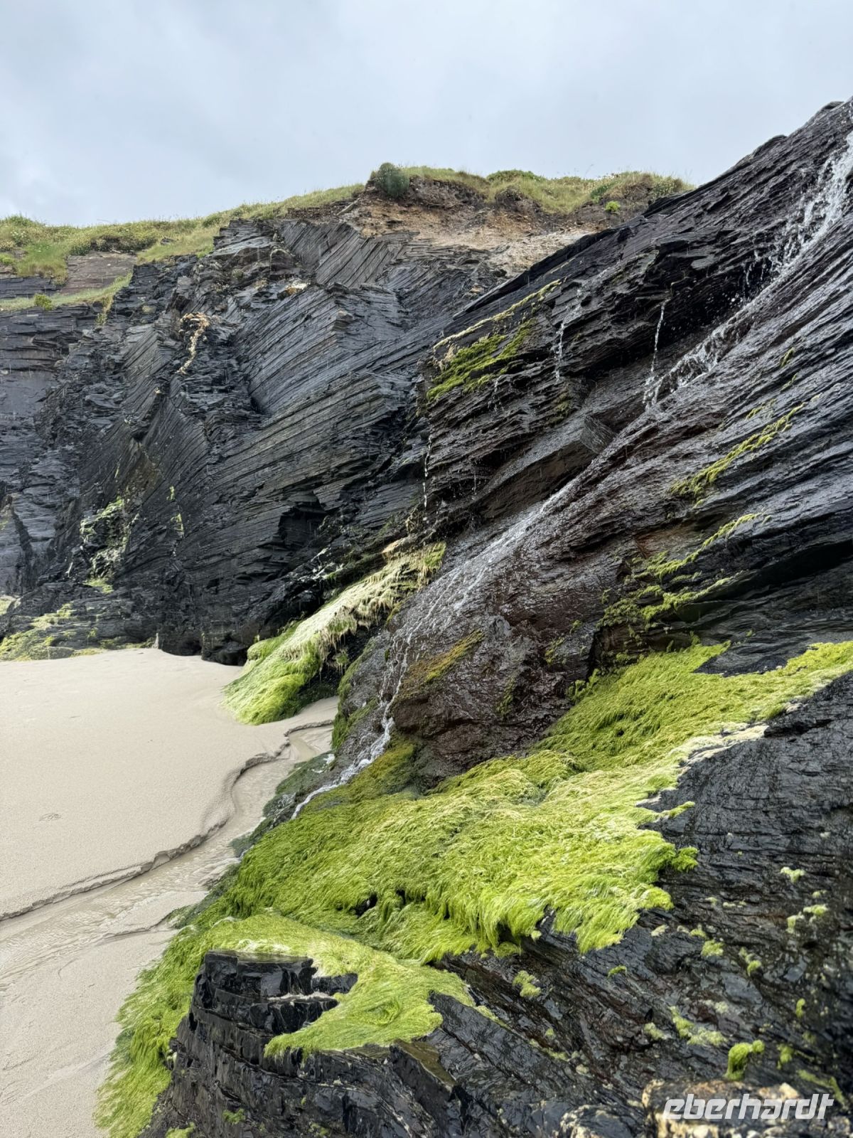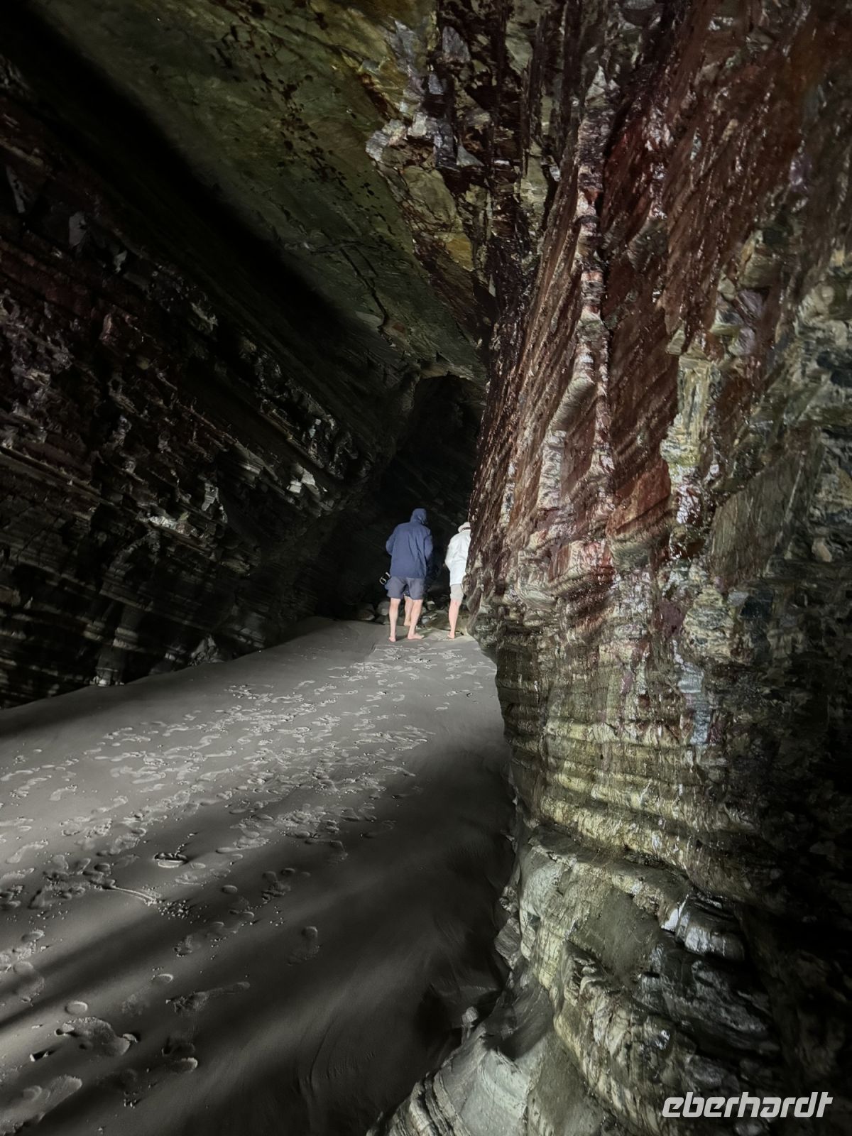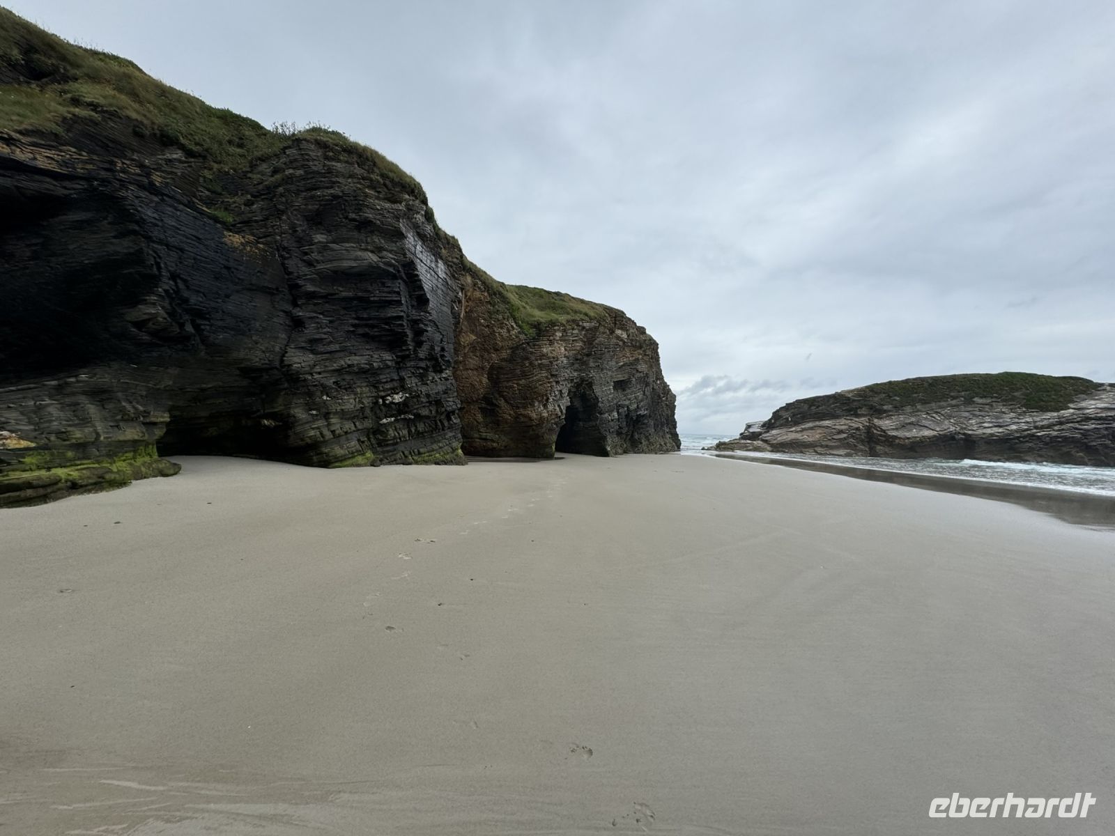 In Ribadeo angekommen besuchten wir zuerst den berühmten Kathedralenstrand! Obwohl wir bei Ebbe ankamen, war das Wasser wegen des Regens und der Wellen immer noch etwas zu hoch. Wir sind trotzdem an den Strand gegangen und etwas nass geworden, aber das gehört zu einem Abenteuer dazu. Außerdem hatten wir am Strand sehr viel Spaß.
