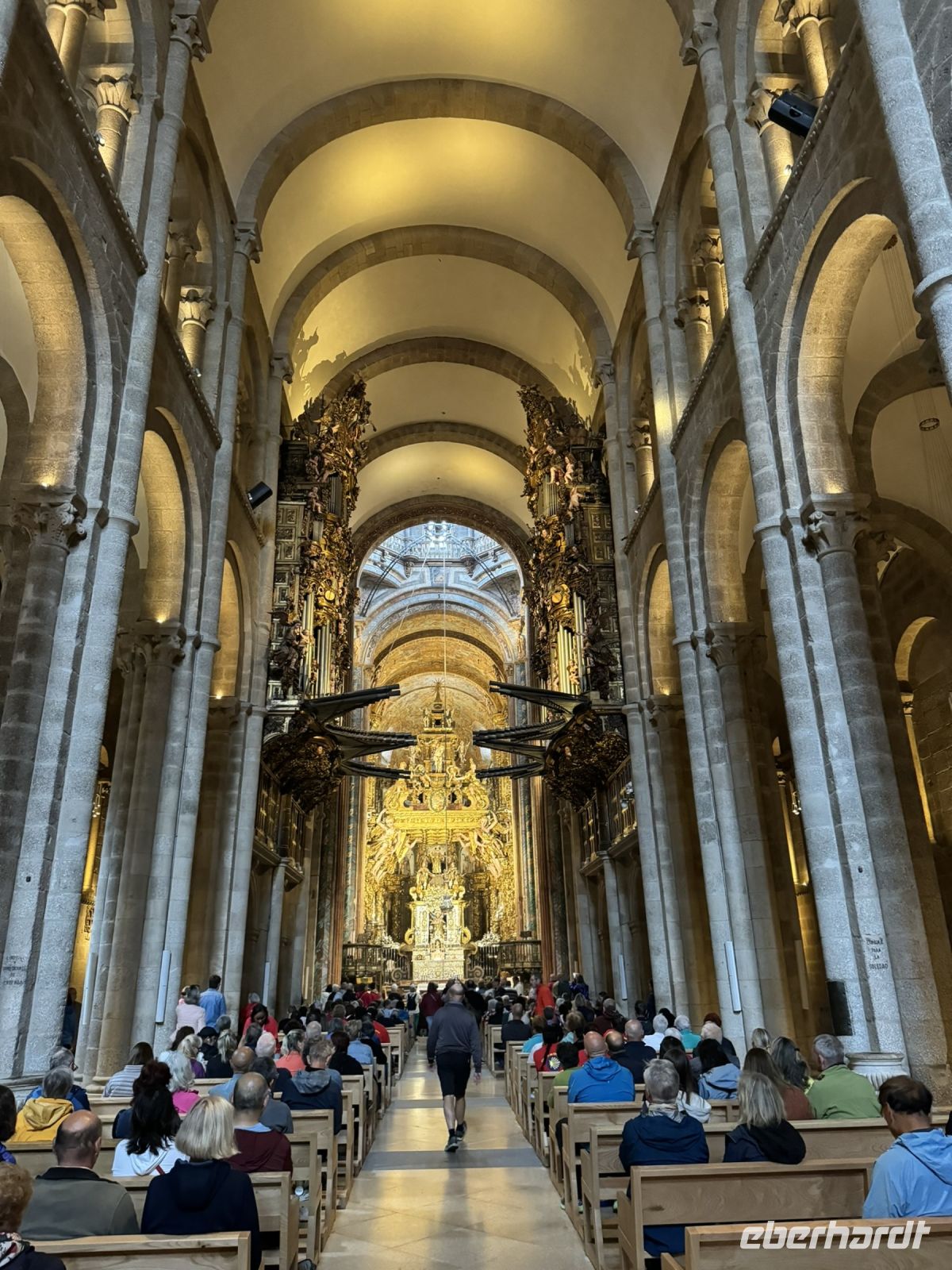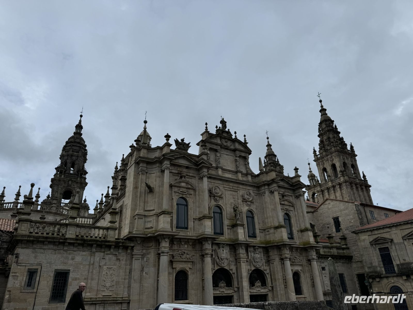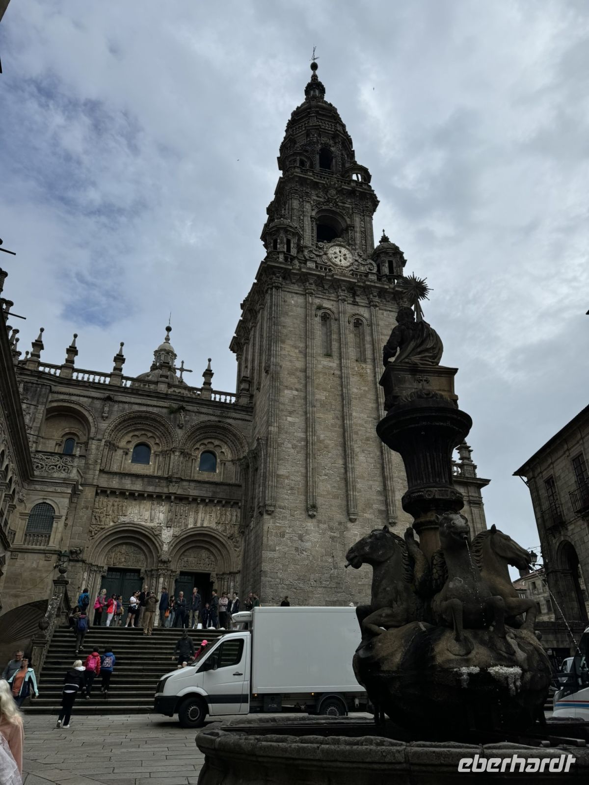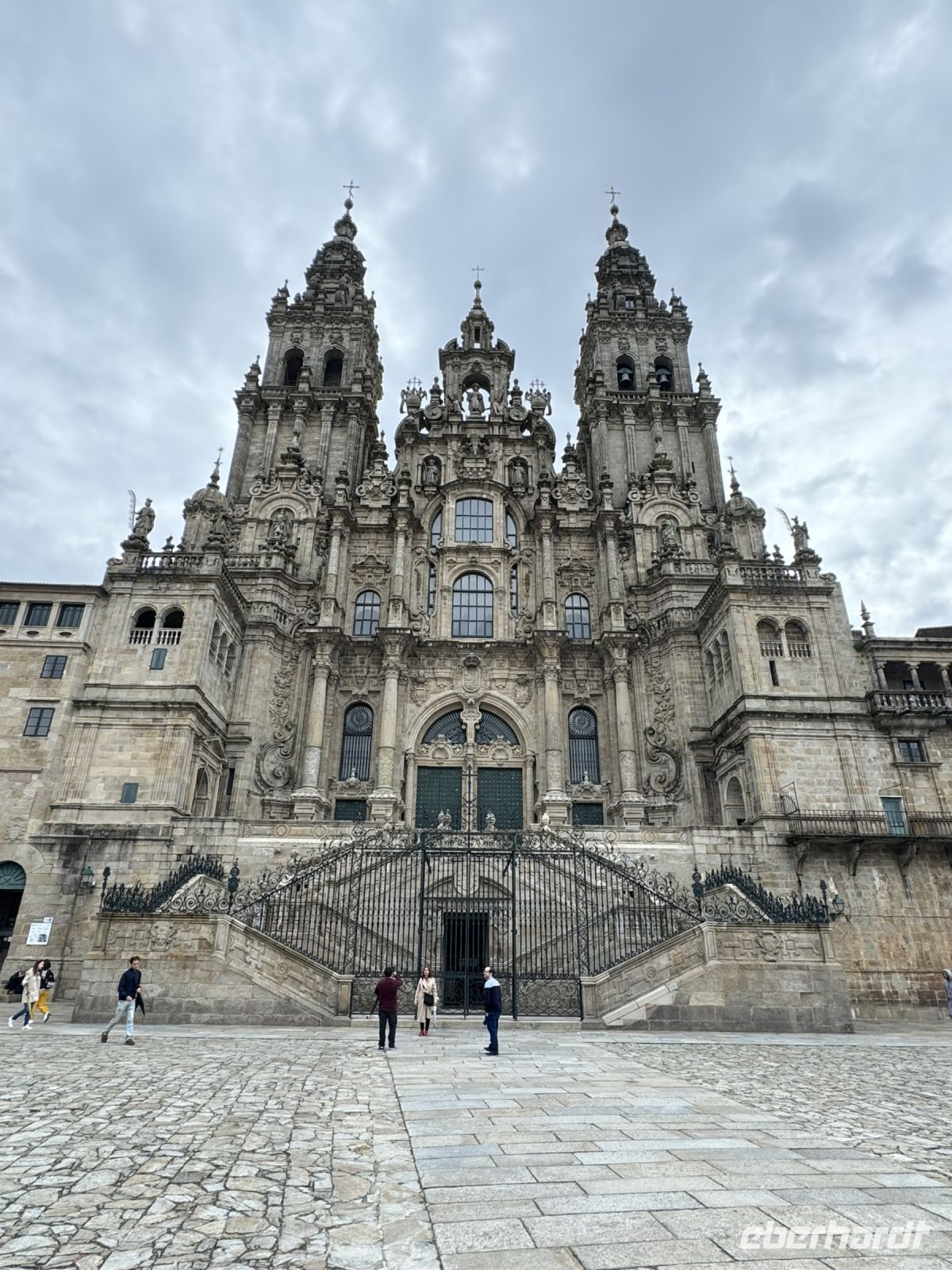 Vom Hotel oder vom Monte Gozo sind wir schnell in die Stadt Santiago gegangen, da der Apostel bereits auf uns wartete! Wie es das Ritual der Pilger ist, sind wir direkt zum Plaza del Obradoiro gegangen und haben die imposante Fassade der Kathedrale bewundert. Hier trafen wir uns mit anderen Pilgern und gingen direkt in die Kathedrale. Wir besuchten das Grab und erlebten einen Gottesdienst mit der Musik der Orgeln und dem Rauch des Botafumeiro!