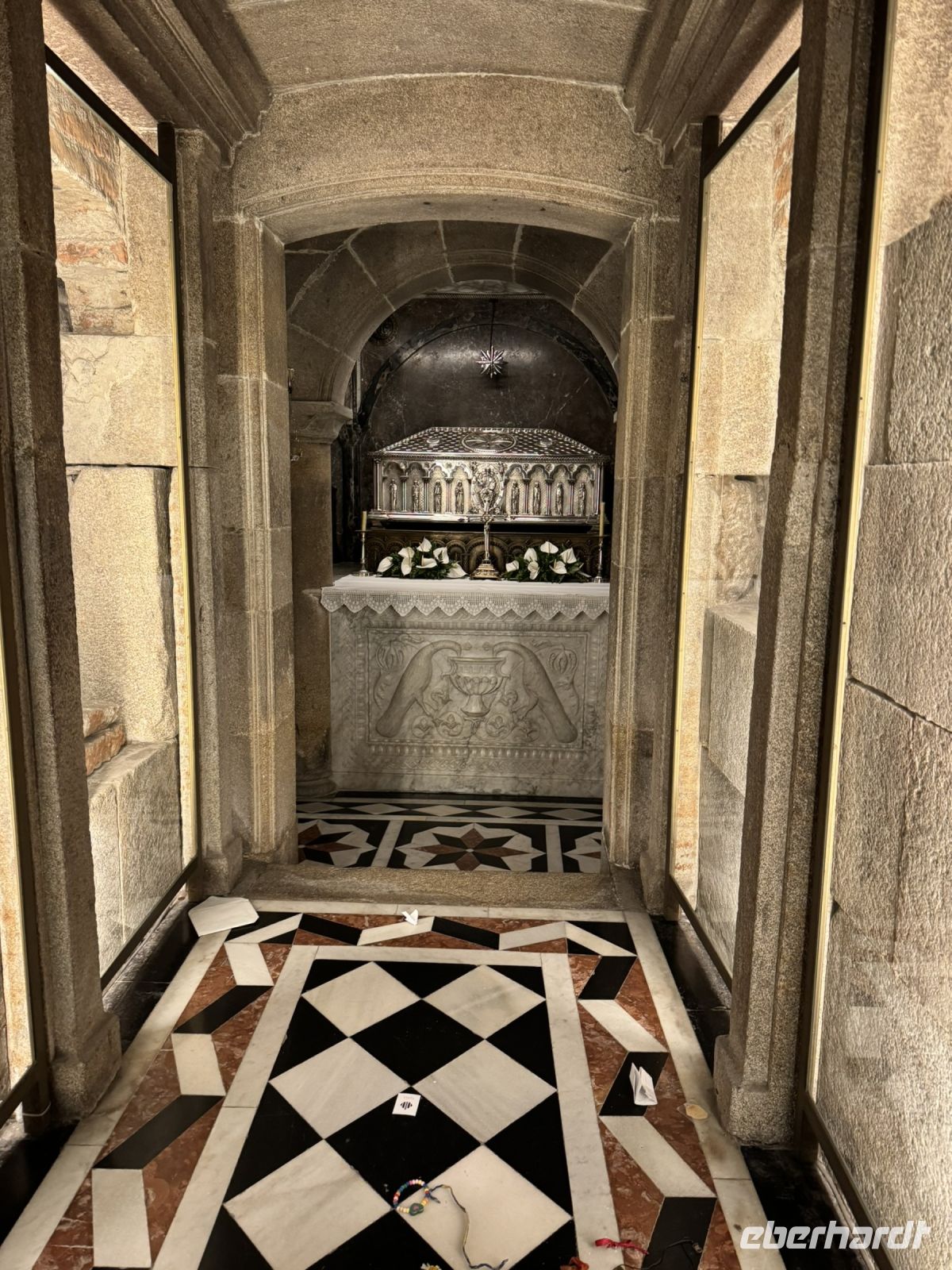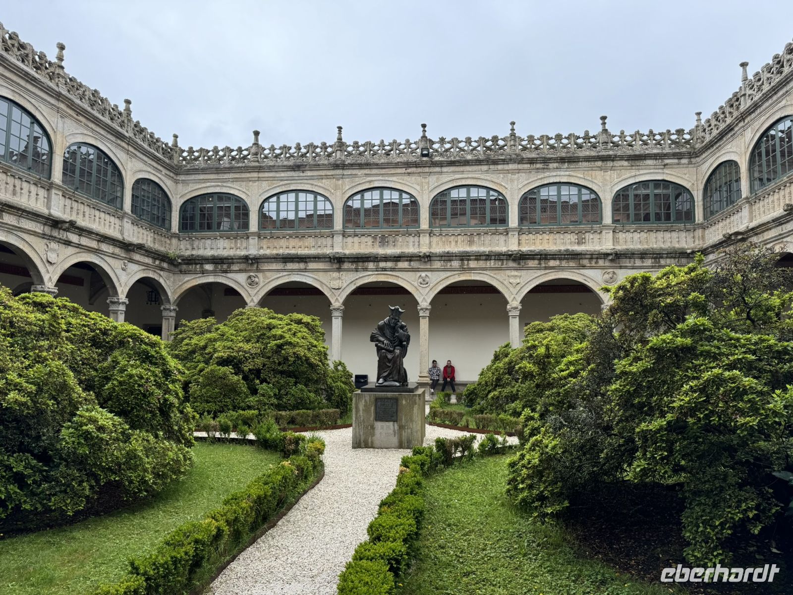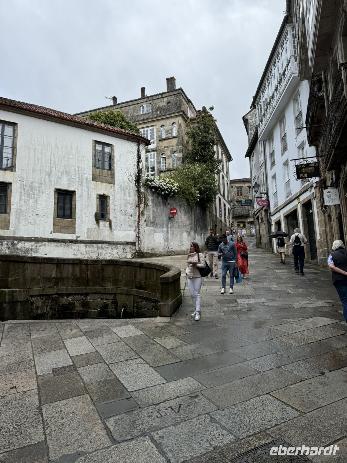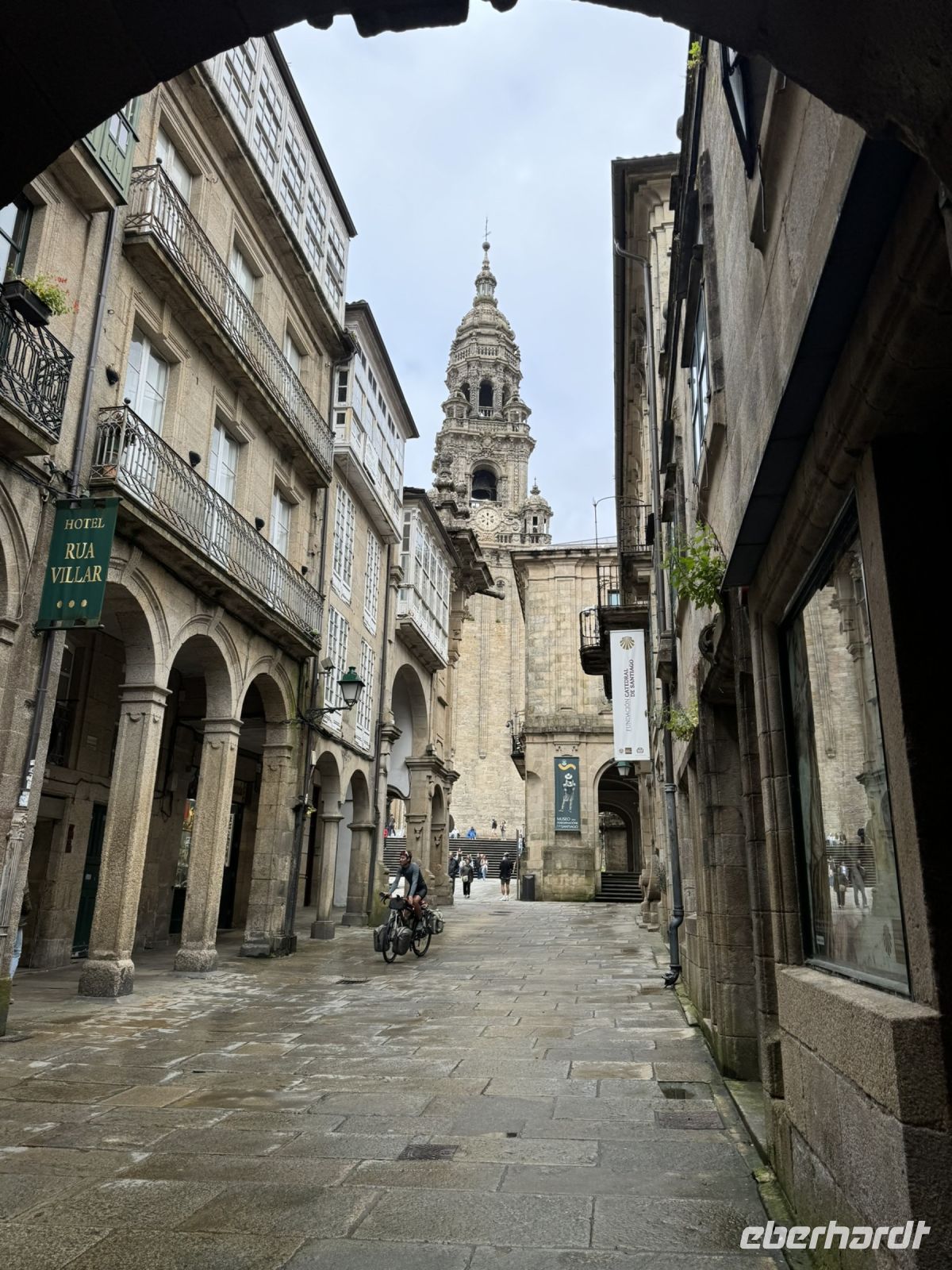 Vom Hotel oder vom Monte Gozo sind wir schnell in die Stadt Santiago gegangen, da der Apostel bereits auf uns wartete! Wie es das Ritual der Pilger ist, sind wir direkt zum Plaza del Obradoiro gegangen und haben die imposante Fassade der Kathedrale bewundert. Hier trafen wir uns mit anderen Pilgern und gingen direkt in die Kathedrale. Wir besuchten das Grab und erlebten einen Gottesdienst mit der Musik der Orgeln und dem Rauch des Botafumeiro!