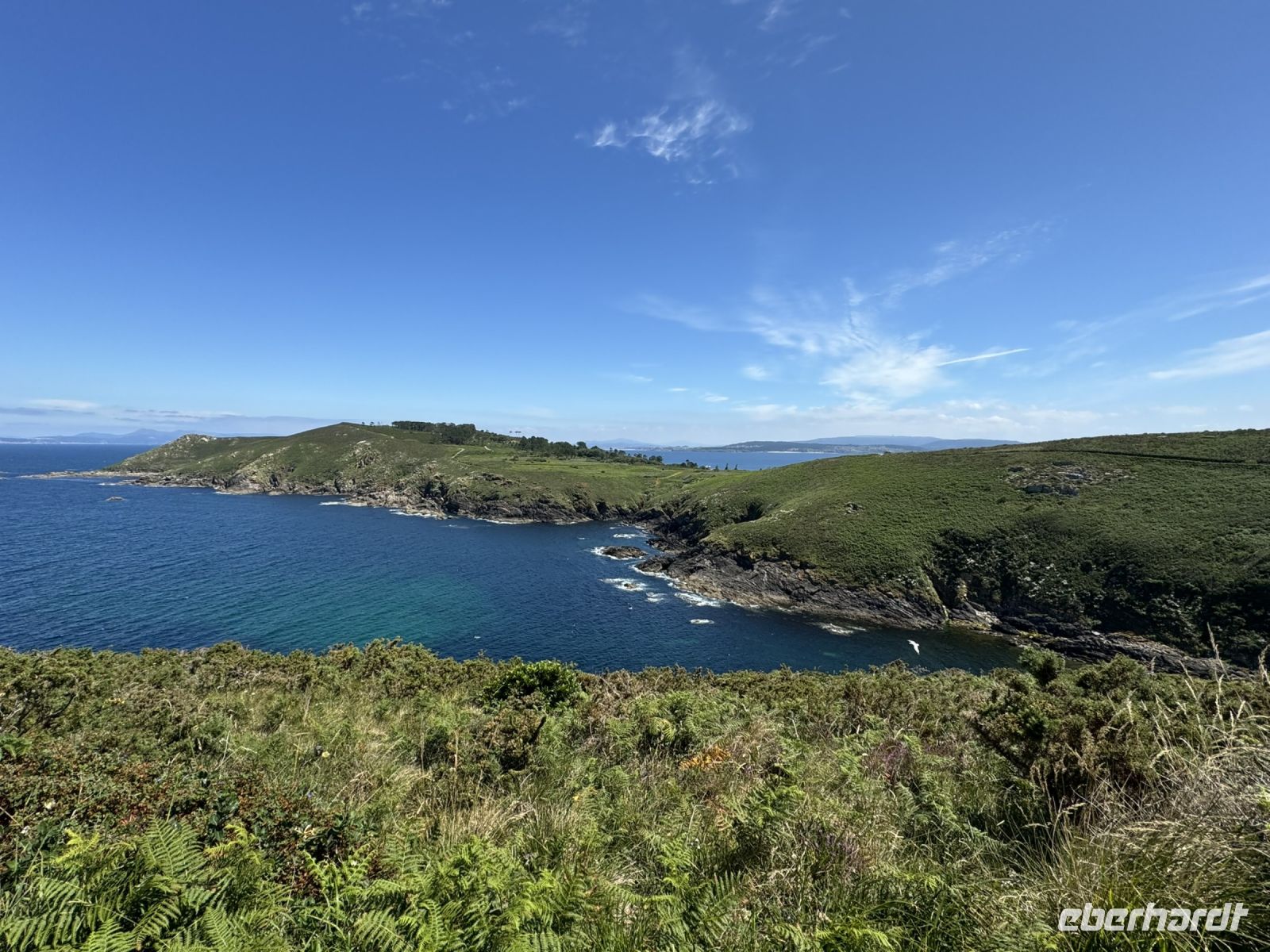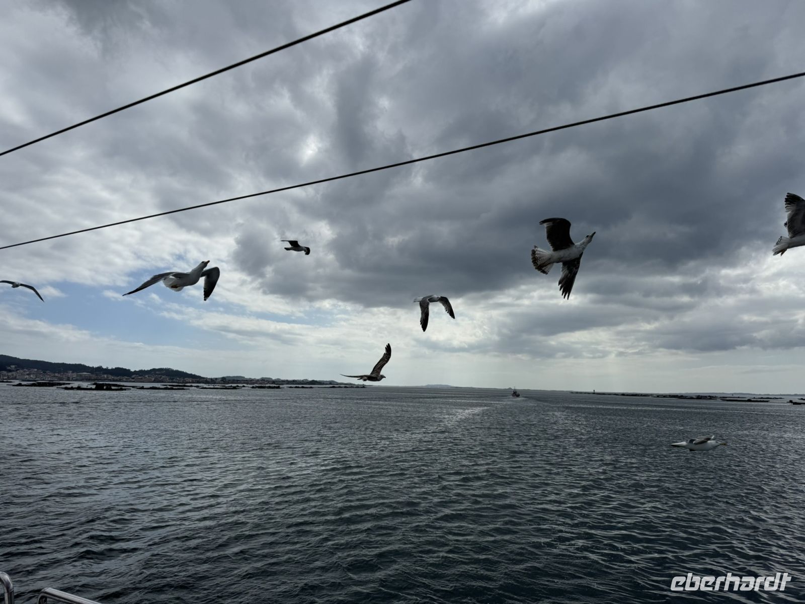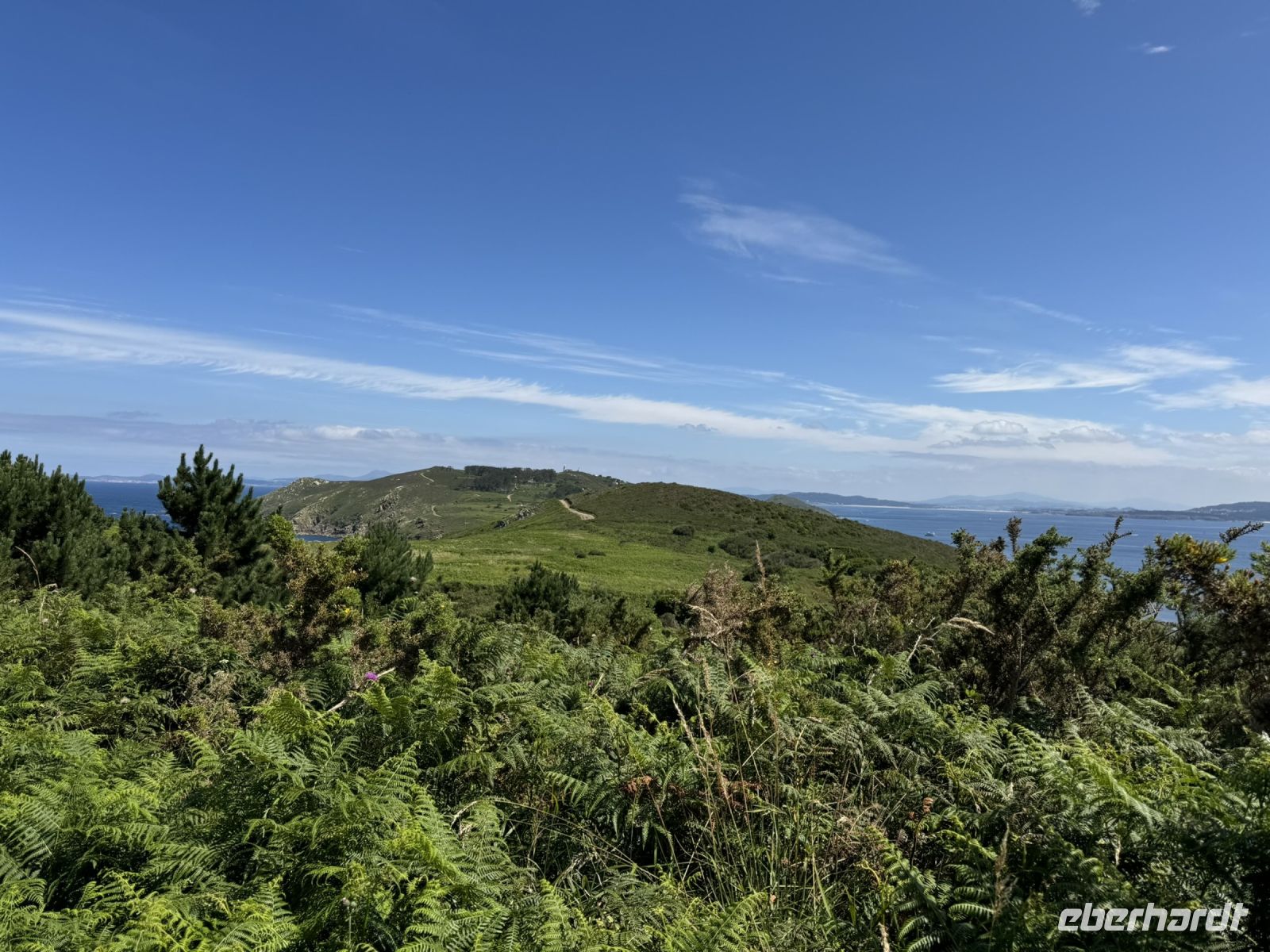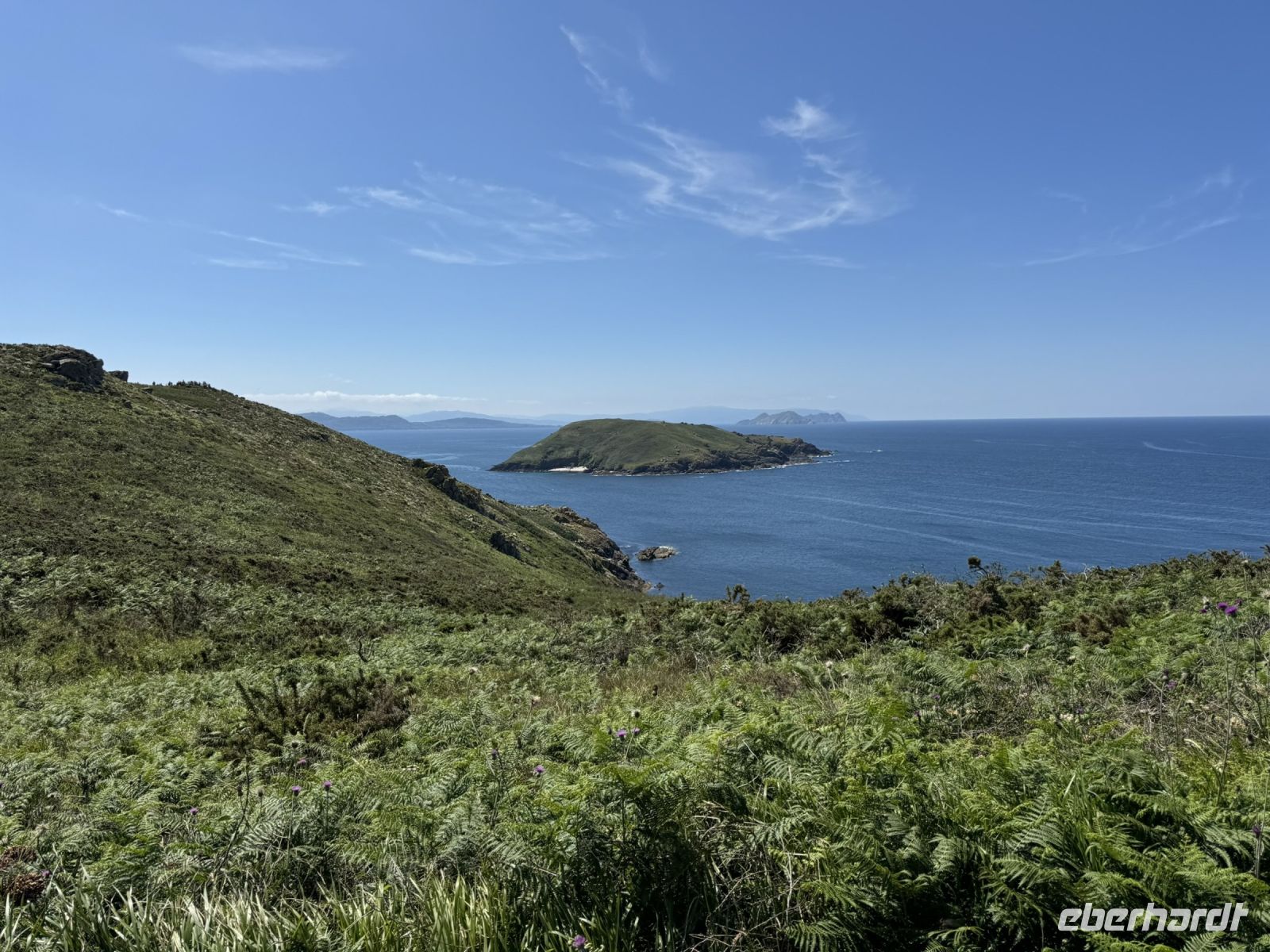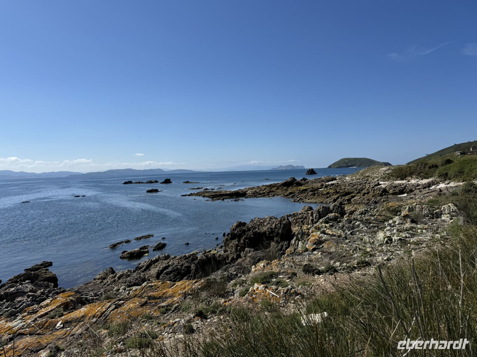 Bei strahlendem Sonnenschein fuhren wir nach Portonovo und stiegen in unser Boot zur Insel Ons, die direkt im Archipel der Atlantischen Inseln liegt. Wir überquerten Teil der Ria von Pontevedra, begleitet vom Gesang der Kinder, die mit uns auf dem Schiff waren, und erreichten langsam die Insel Ons.
