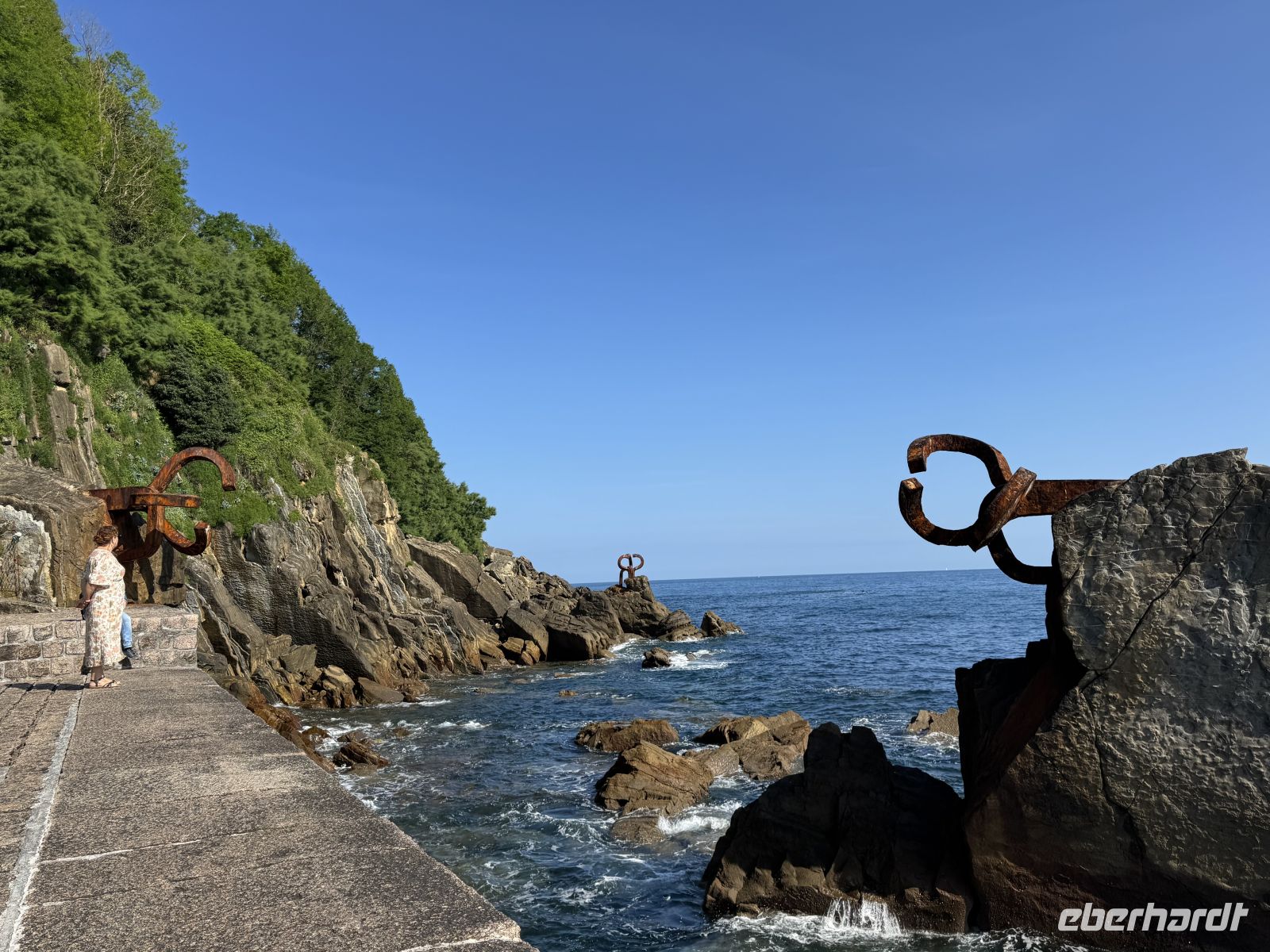 Die schöne Stadt San Sebastián erwartete uns mit einem sonnigen Tag und dem Monument „Der Kamm des Windes“. Dort haben wir unser Trainingsprogramm der Reise mit einem Spaziergang entlang des Strandes La Concha begonnen. Unterwegs entdeckten wir den Palast Miramar und konnten das Wasser des Kantabrischen Meeres an unseren Füßen spüren.