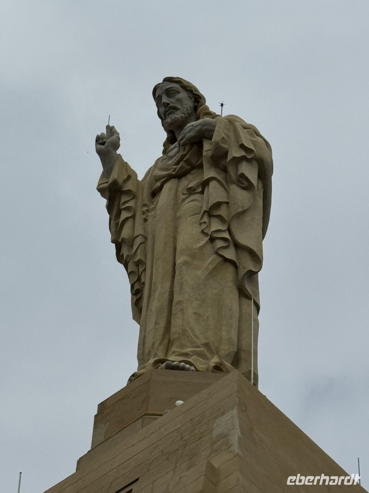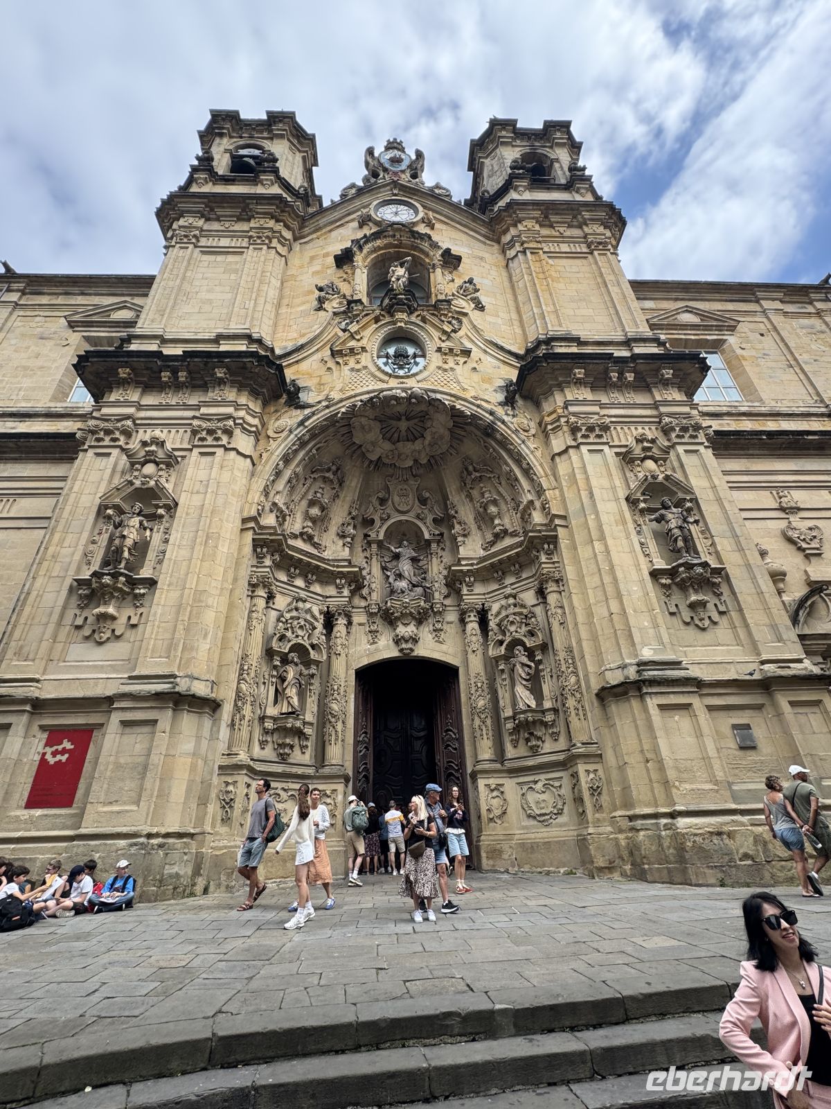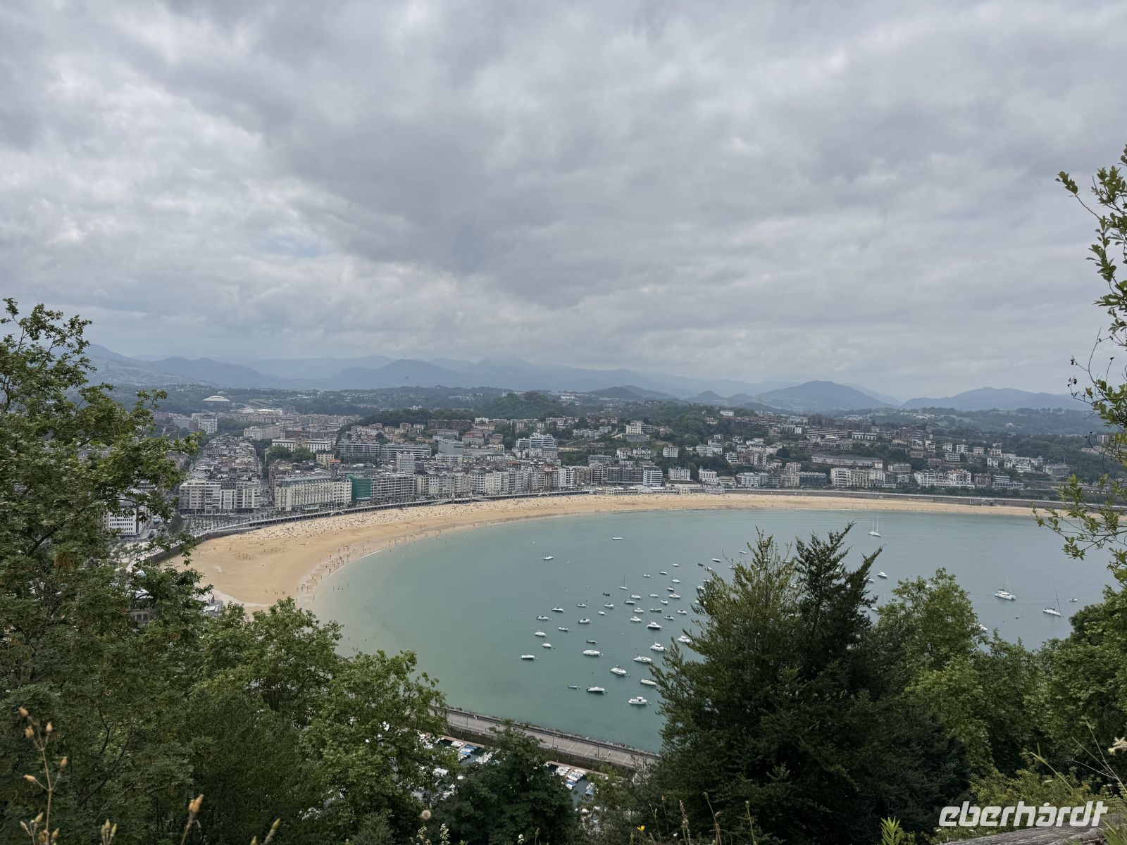 Am Rathaus begann die zweite Route des Tages – von der Altstadt bis zum höchsten Punkt des Monte Urgull. Auf dem Weg sahen wir die Fassade der Basilika und grüne Vegetation. Oben auf dem Gipfel überquerten wir die Mauer der Burg La Mota, fotografierten die Christusstatue des Heiligen Herzens und gingen wieder zurück.