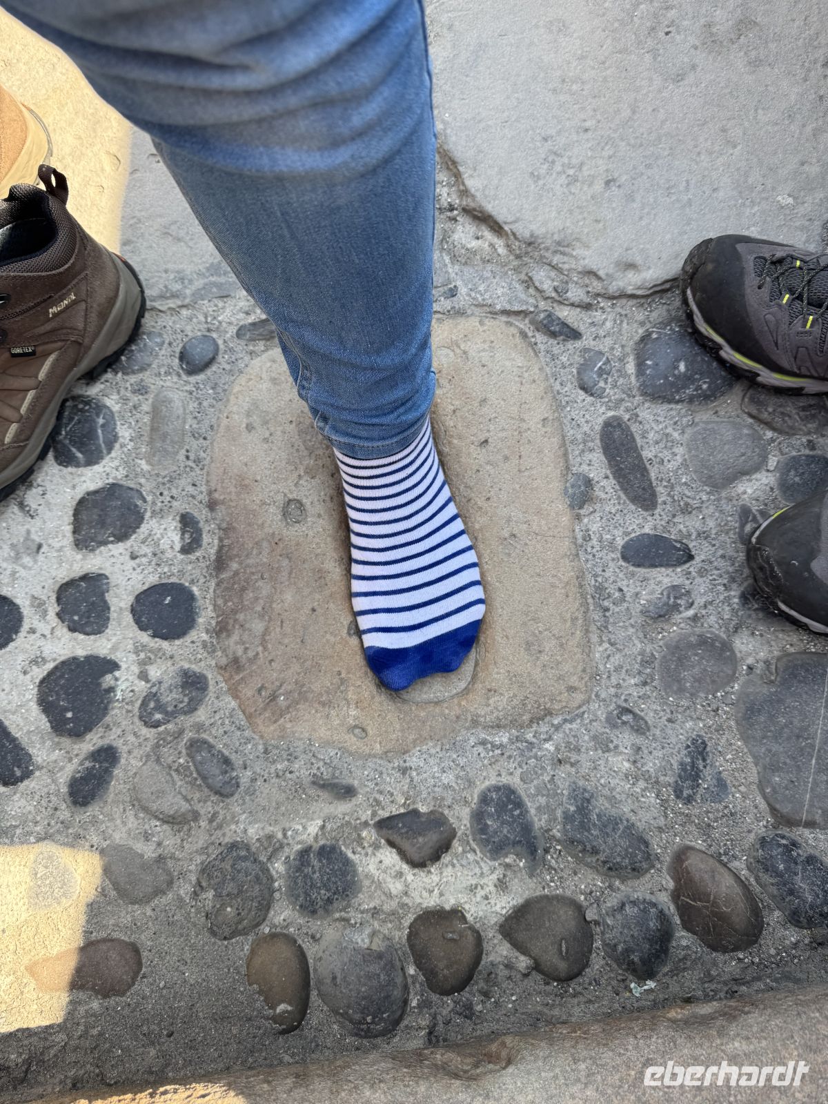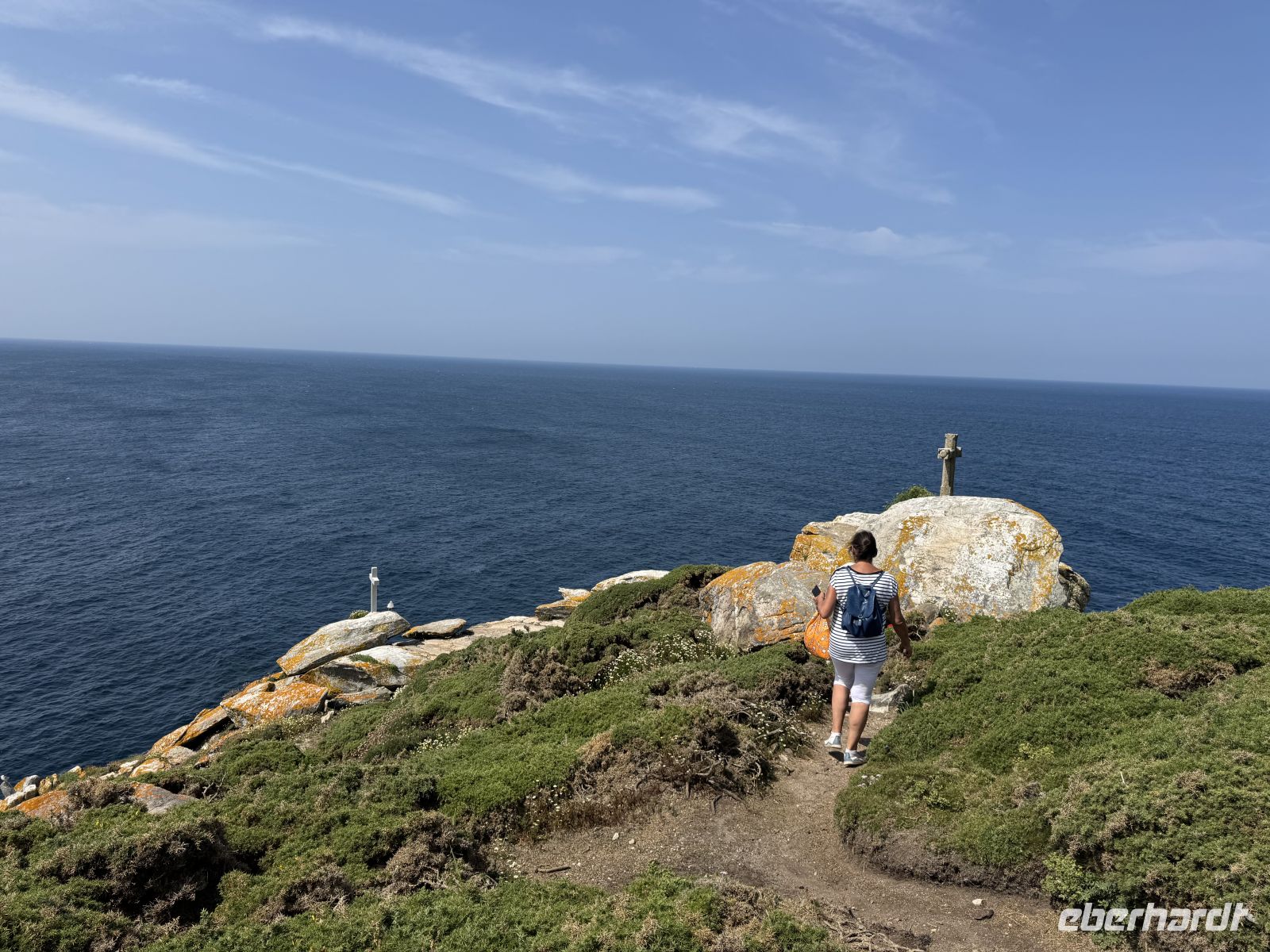 In ruhiger Atmosphäre fuhren wir ans „Ende der alten Welt“: das Kap Finisterre, wie es die Römer nannten. Wir trafen Pilger, die den Kilometer 0 suchten. Wir stiegen dort aus und gingen zum Kap, wo früher viele Pilger ihre Schuhe verbrannten. Vor dem Leuchtturm genossen wir einen Kaffee mit Blick auf den Atlantik.