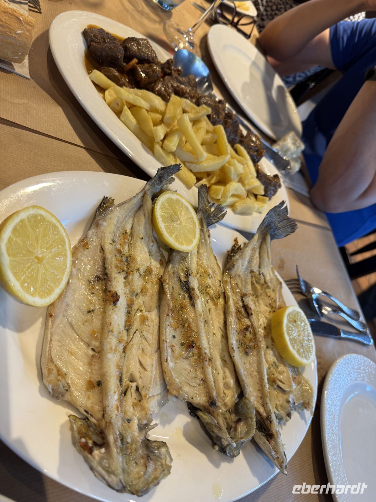 iesmuscheln und wieder einen guten Albariño-Wein.