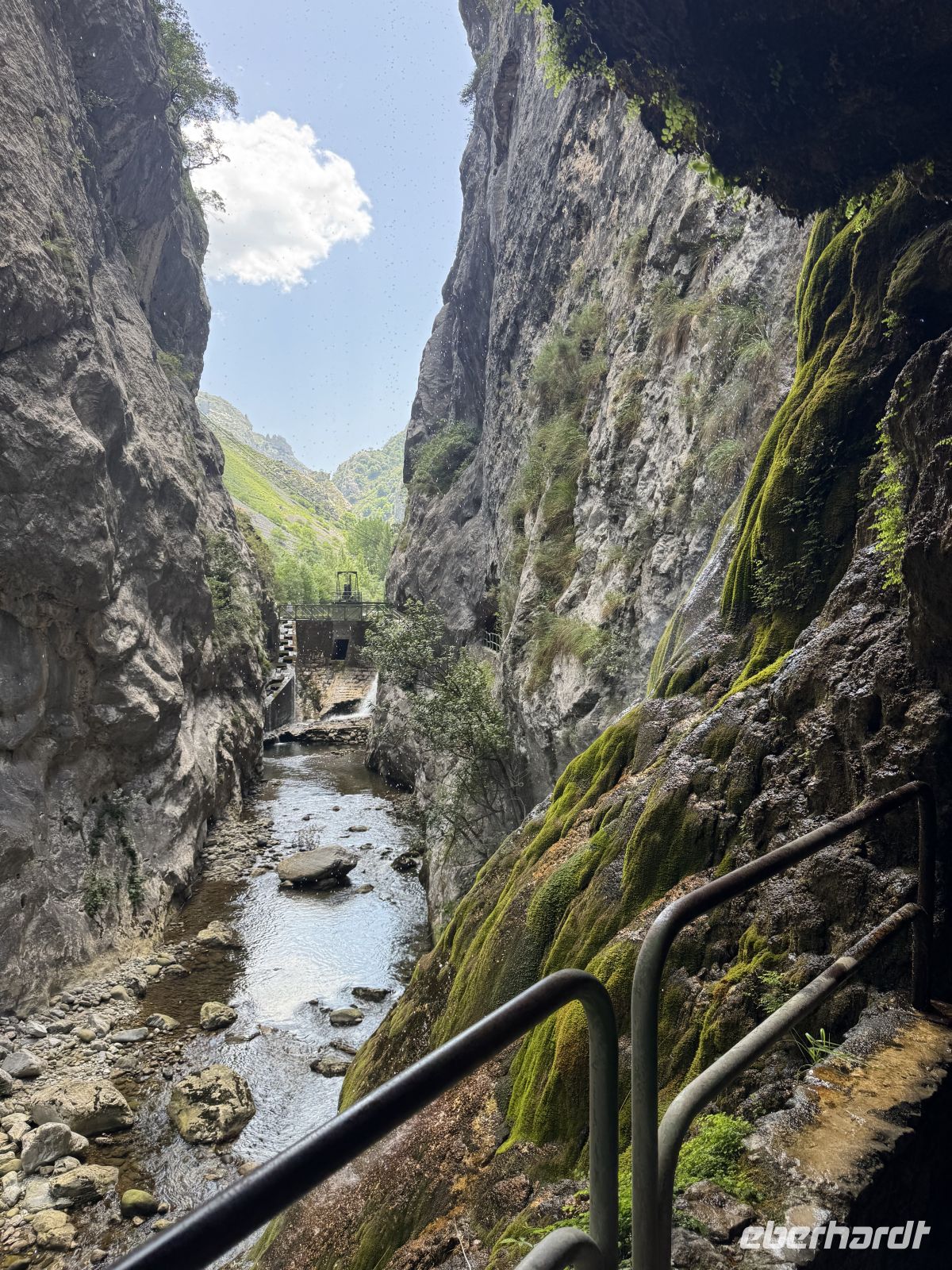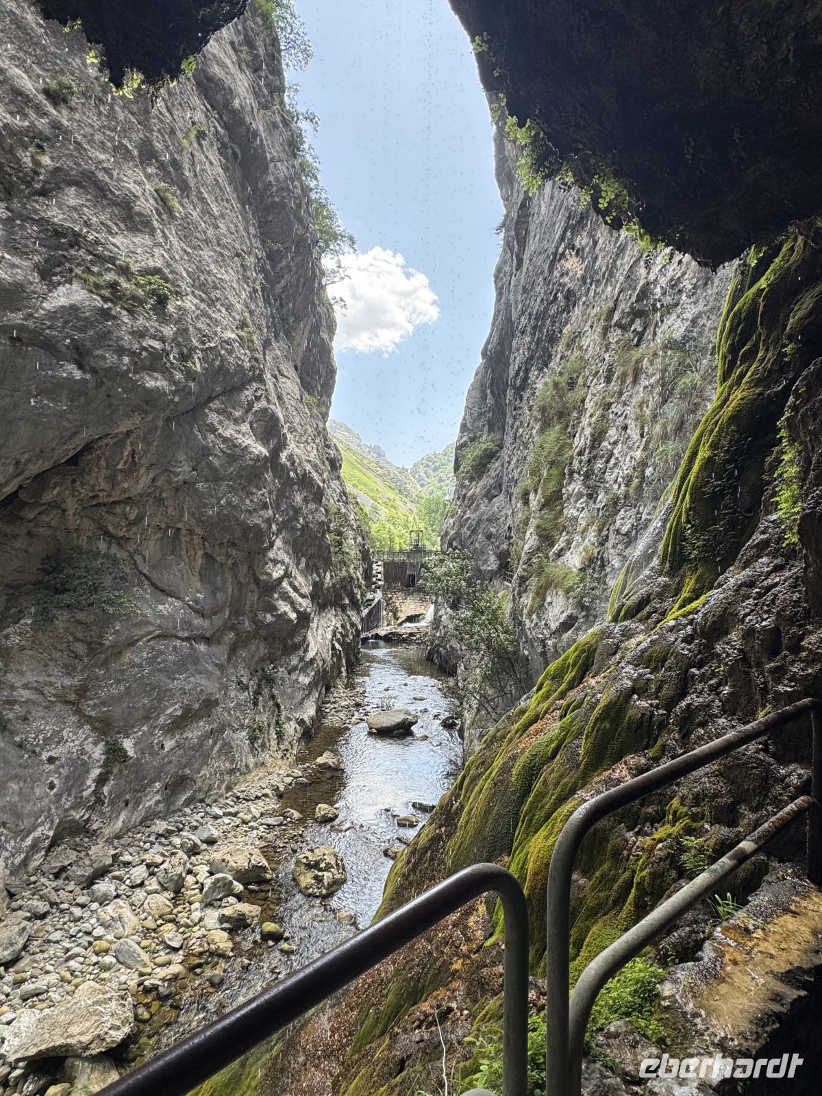 Mit der Zeit wurde es heiß, was die Wanderung etwas anstrengender machte – zum Glück fanden wir unterwegs ein paar kleine Wasserfälle. Einige Ziegen begrüßten uns und das Panorama begeisterte uns. Die letzten Meter waren besonders spannend mit Brücken, Tunneln und dem Wasserkraftwerk von Caín.