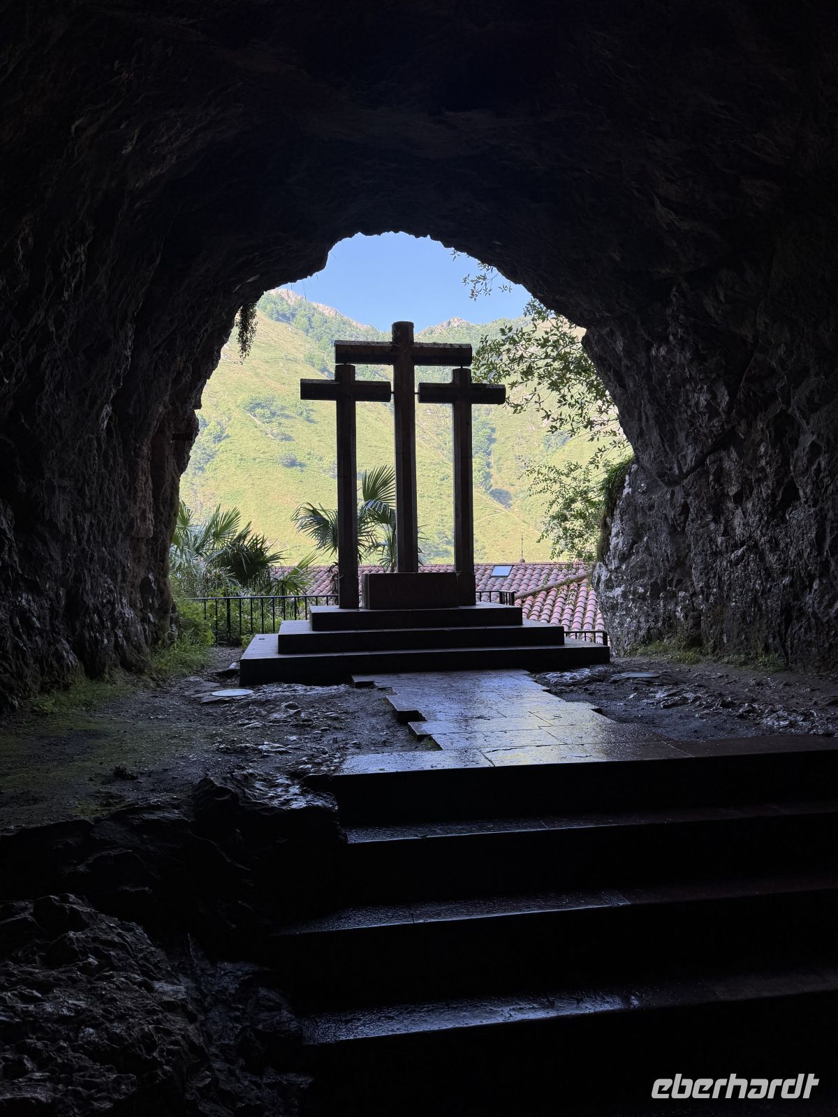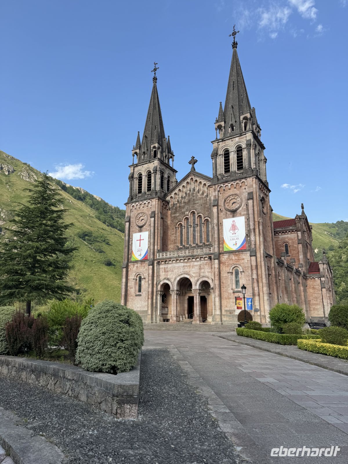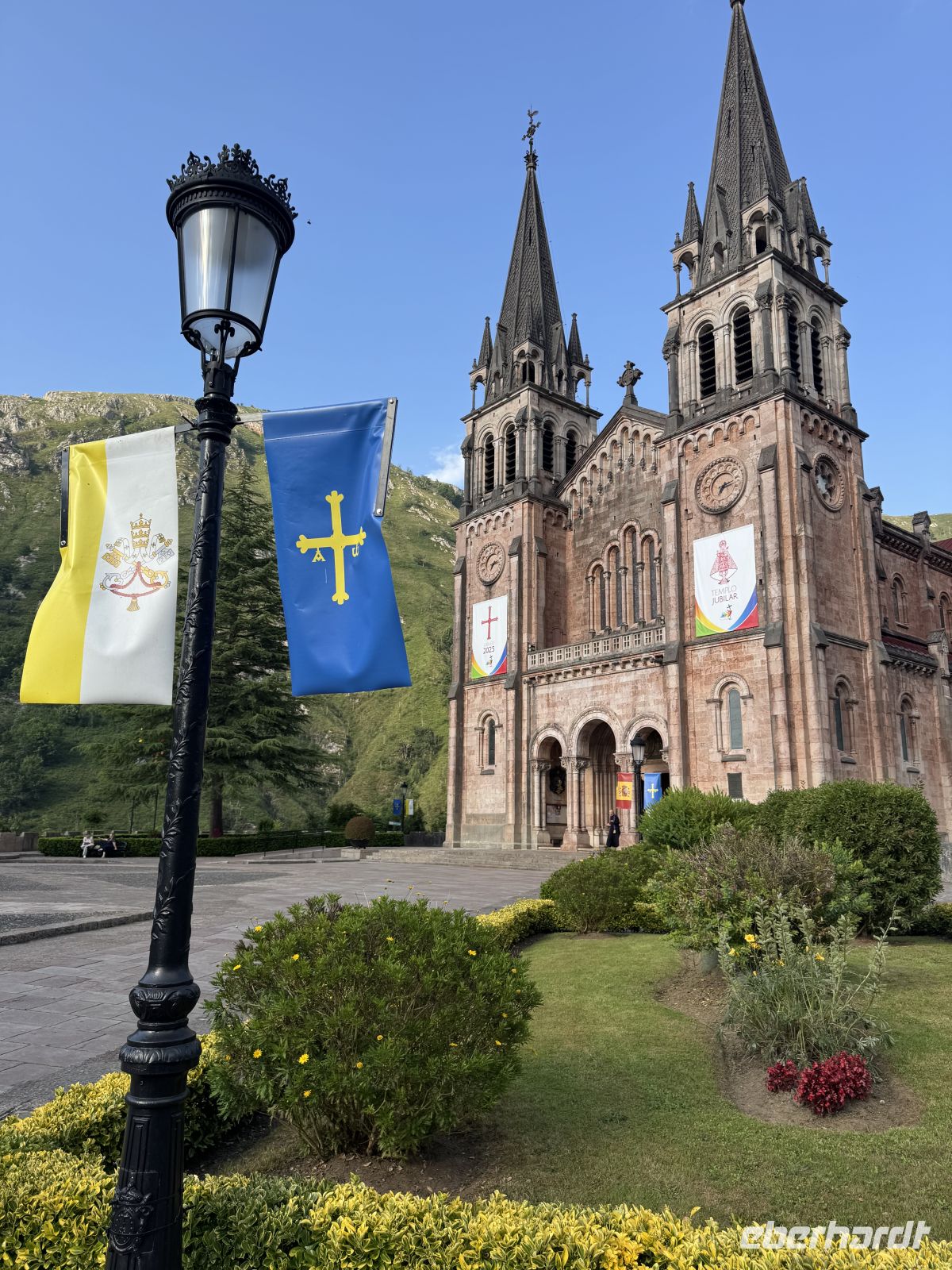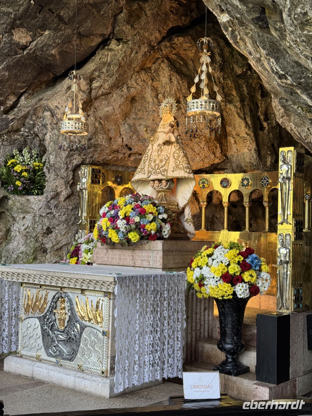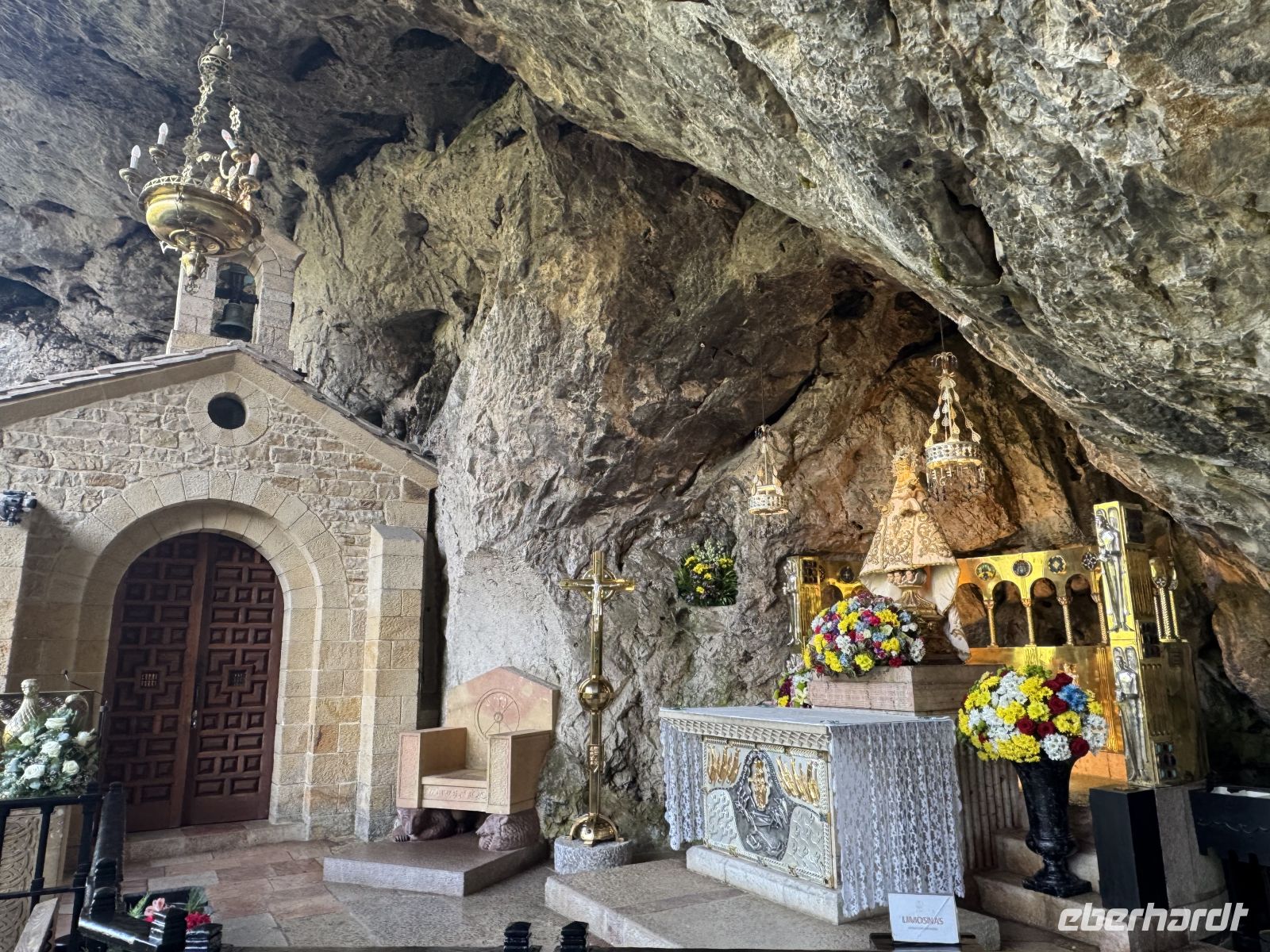 Zurück in Covadonga besuchten wir die heilige Höhle der Jungfrau von Covadonga, die Basilika und das Denkmal für Don Pelayo.