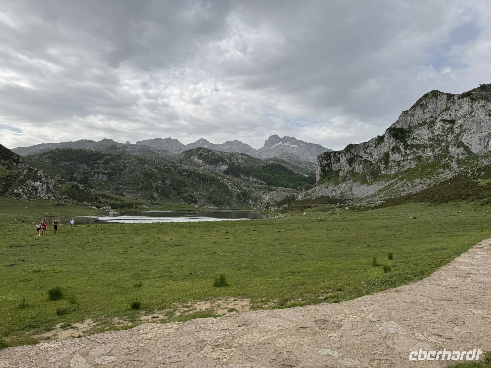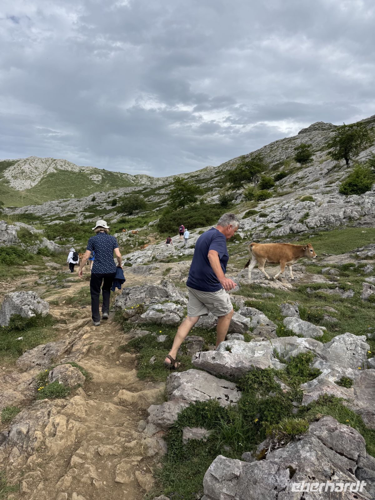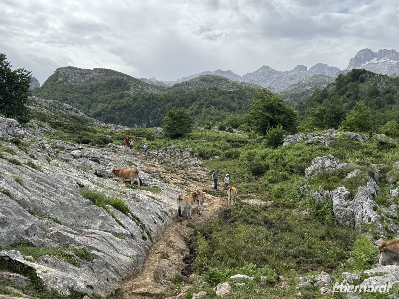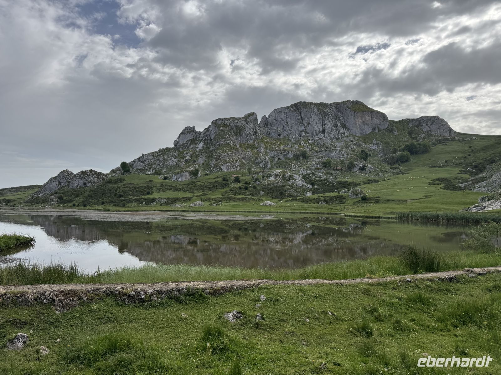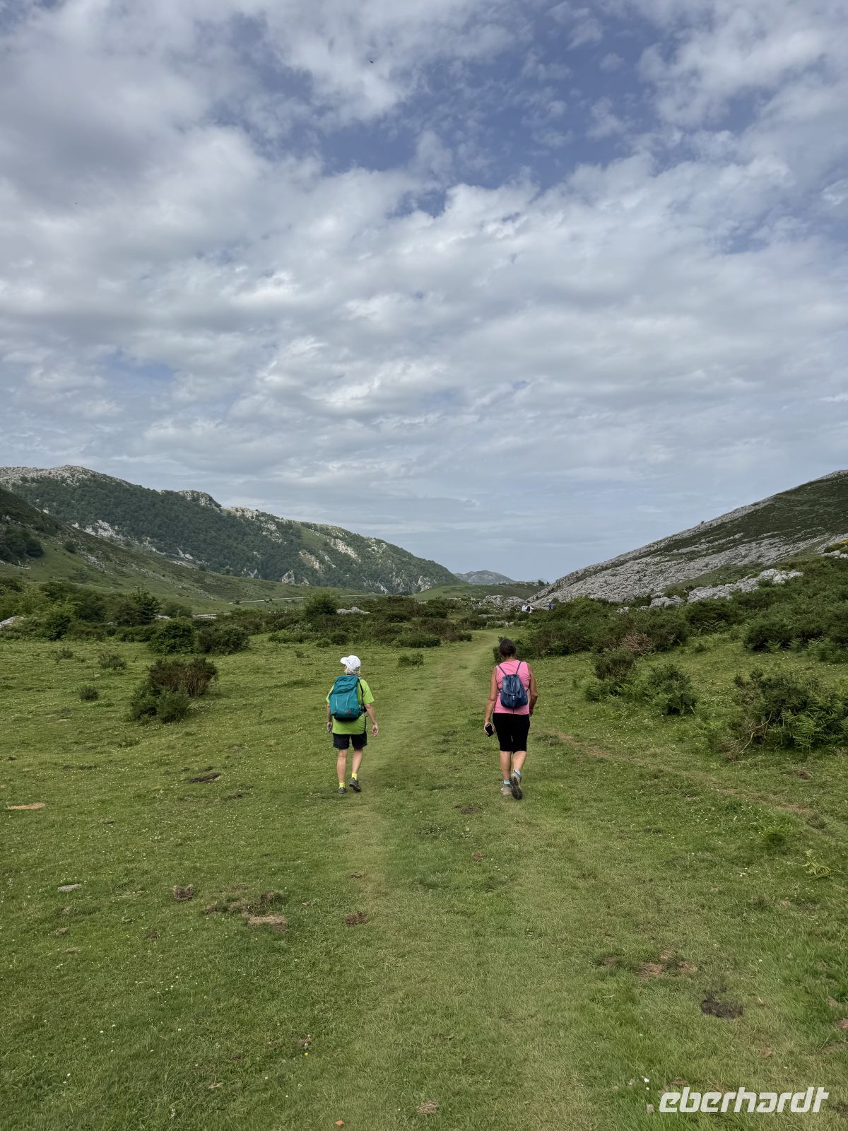 Unsere Route führte durch ein altes Bergbaugebiet, wo früher 500 Bergleute Mangan, Eisen und Quecksilber abbauten. Über grüne Wiesen erreichten wir den Ercina-See – einen der drei ehemaligen Gletscherseen von Covadonga. Ganz ruhig wanderten wir zwischen Steinen und Kühen weiter bis zum Enol-See, dem Ende unserer Route.