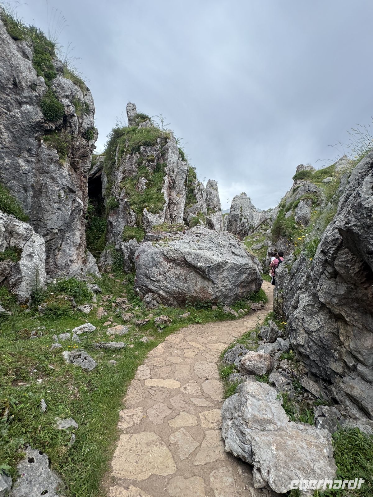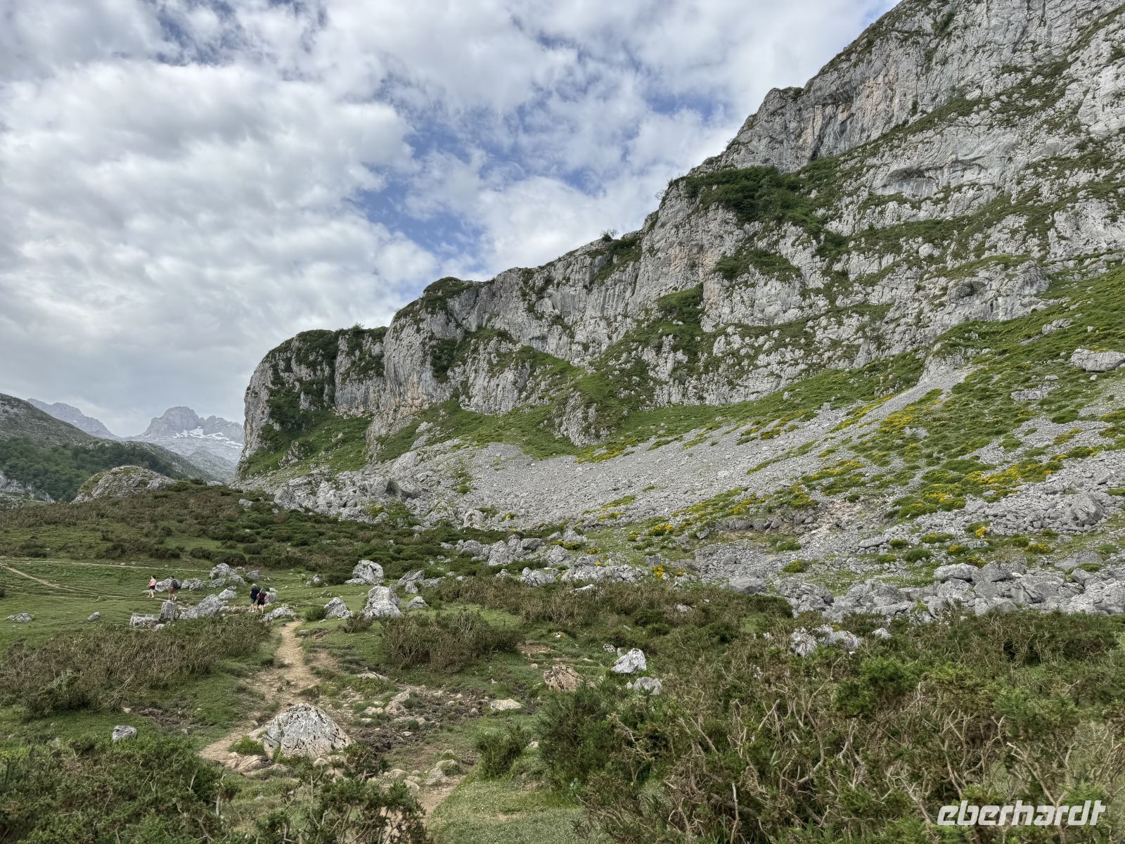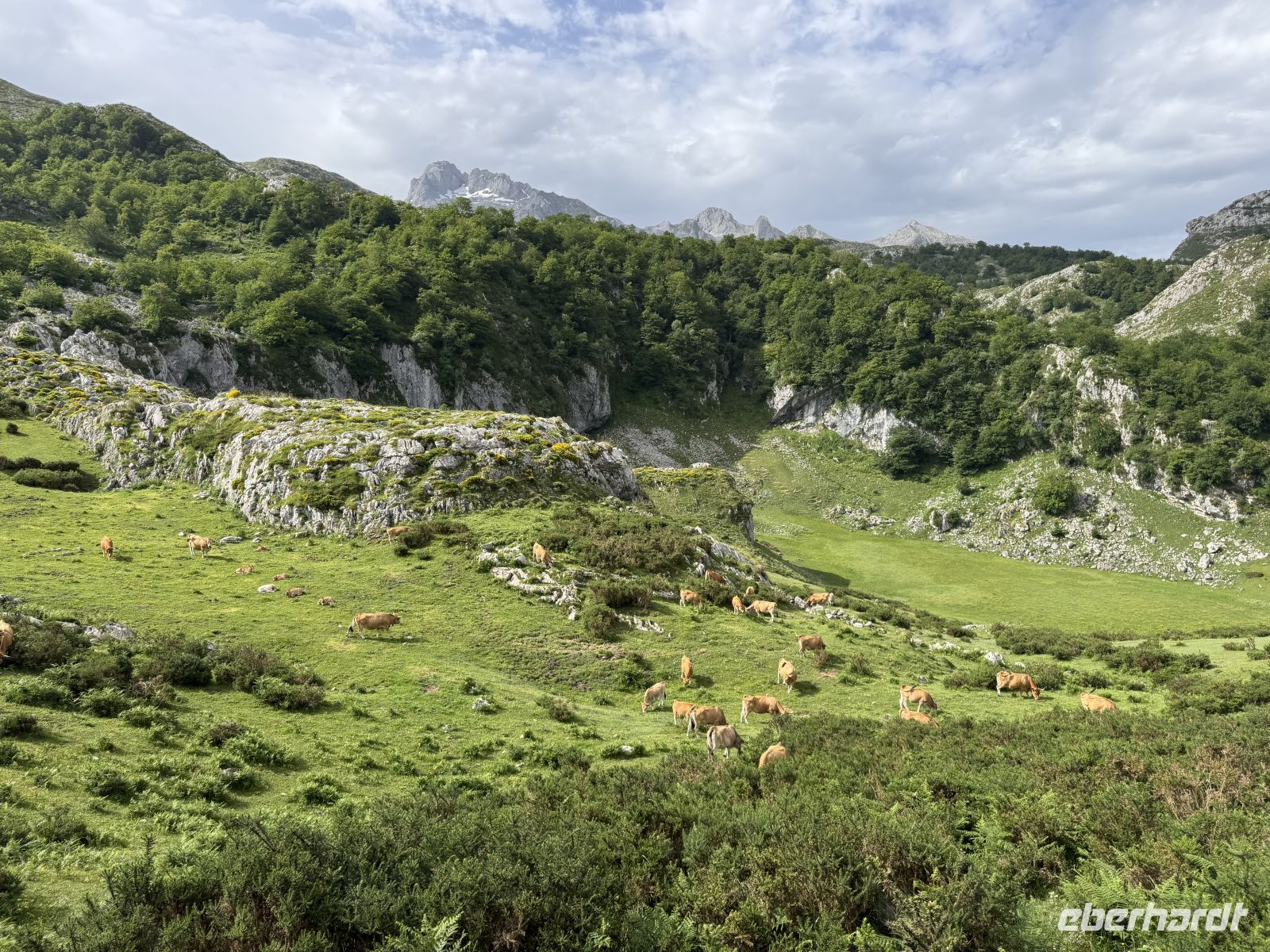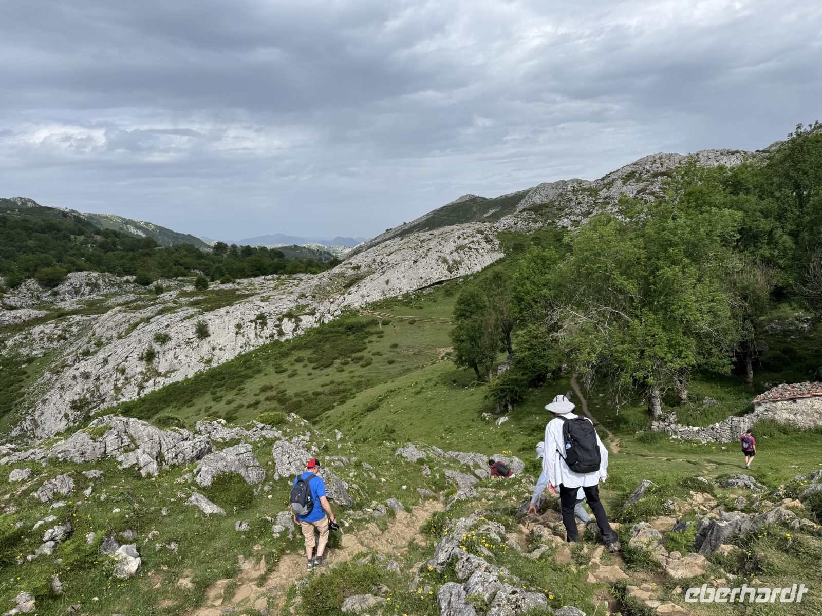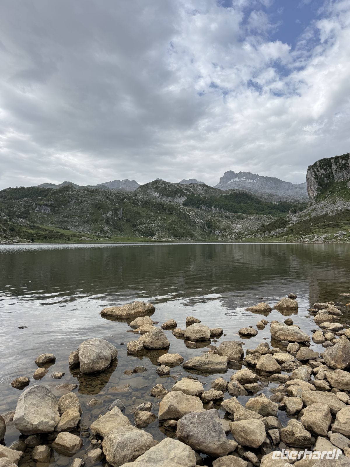Unsere Route führte durch ein altes Bergbaugebiet, wo früher 500 Bergleute Mangan, Eisen und Quecksilber abbauten. Über grüne Wiesen erreichten wir den Ercina-See – einen der drei ehemaligen Gletscherseen von Covadonga. Ganz ruhig wanderten wir zwischen Steinen und Kühen weiter bis zum Enol-See, dem Ende unserer Route.