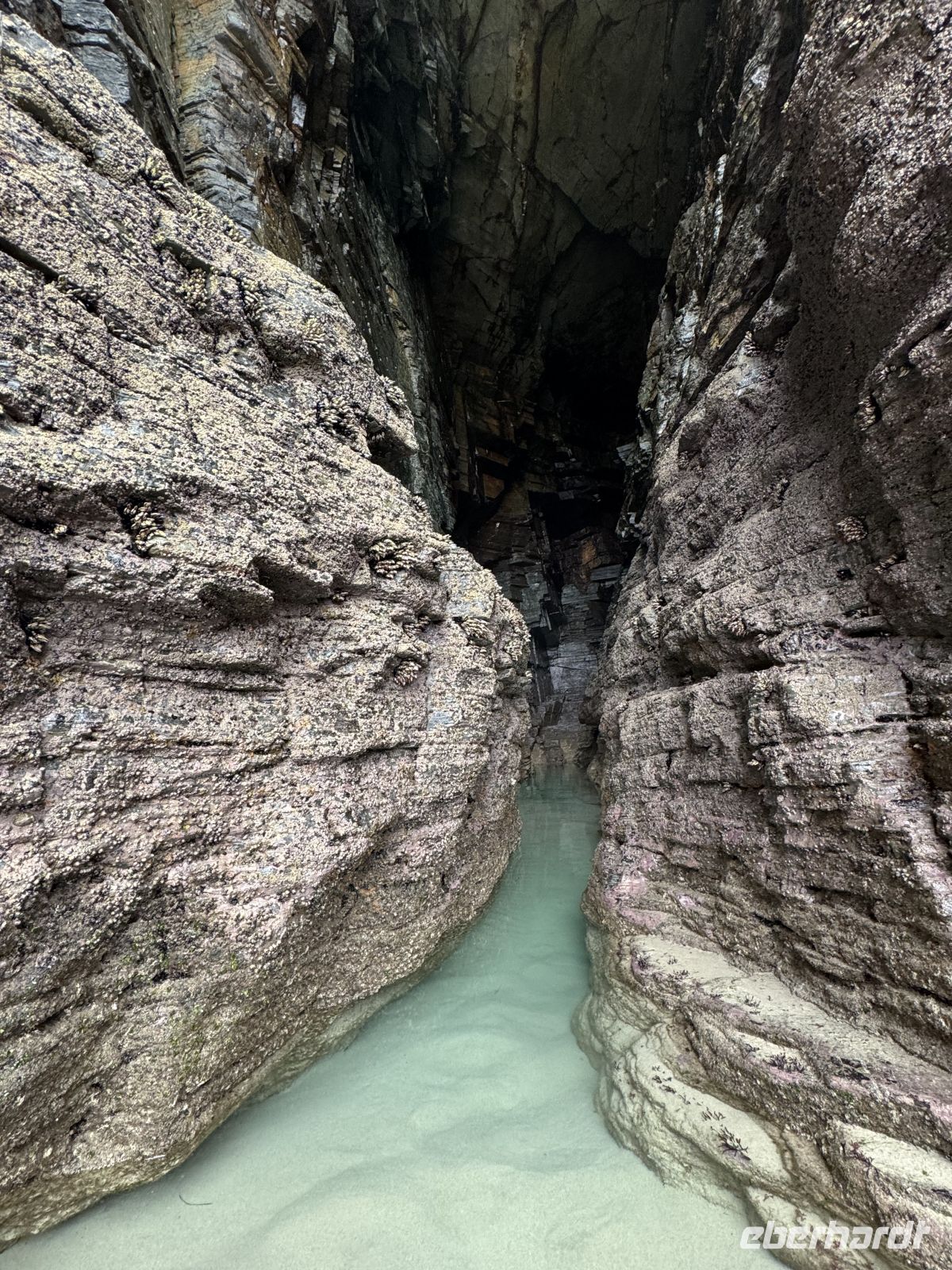Dort fuhren wir direkt zur Küste und besuchten den Kathedralenstrand – ein Wunder der Natur, und wir hatten Glück mit der Ebbe.