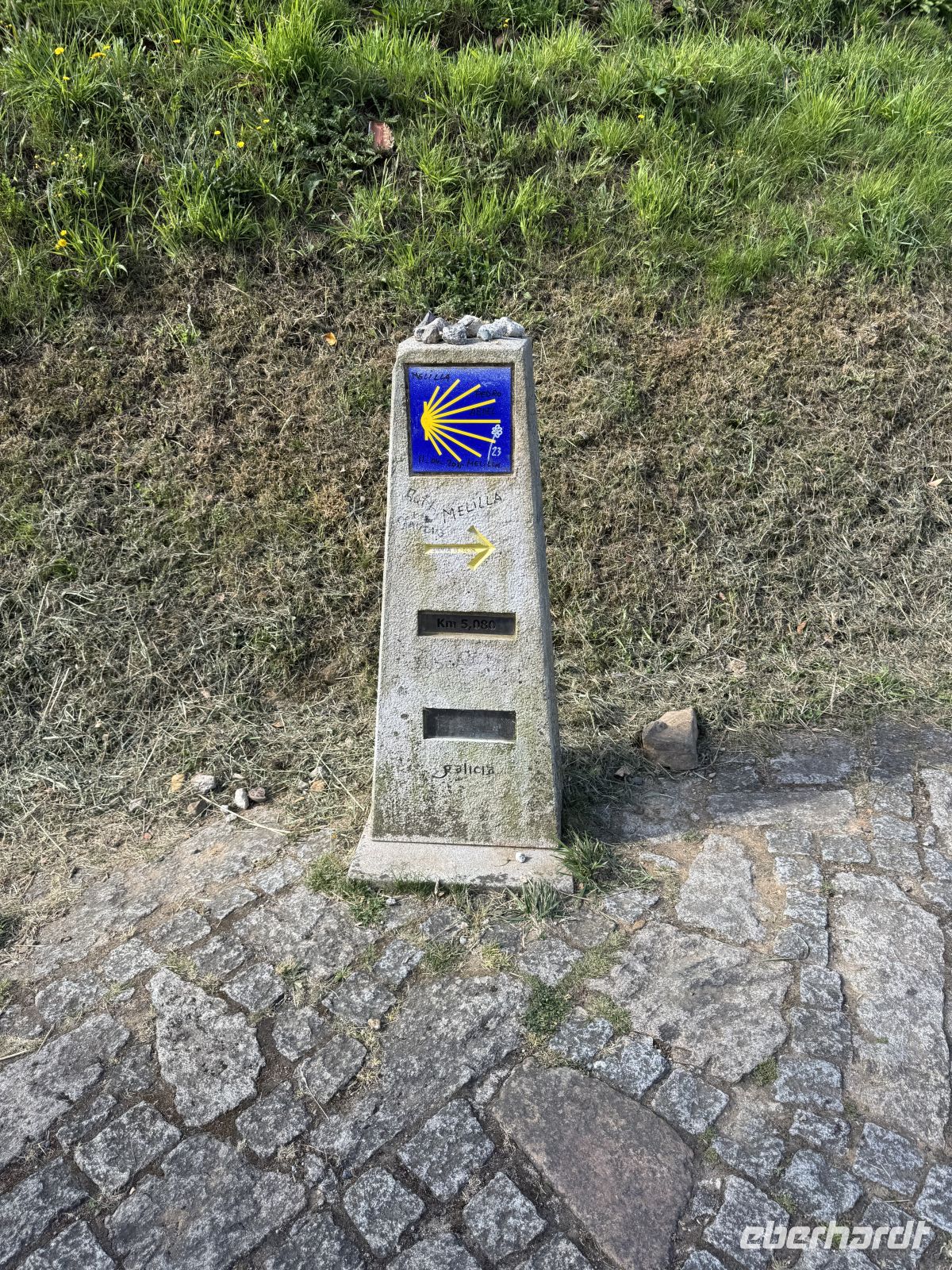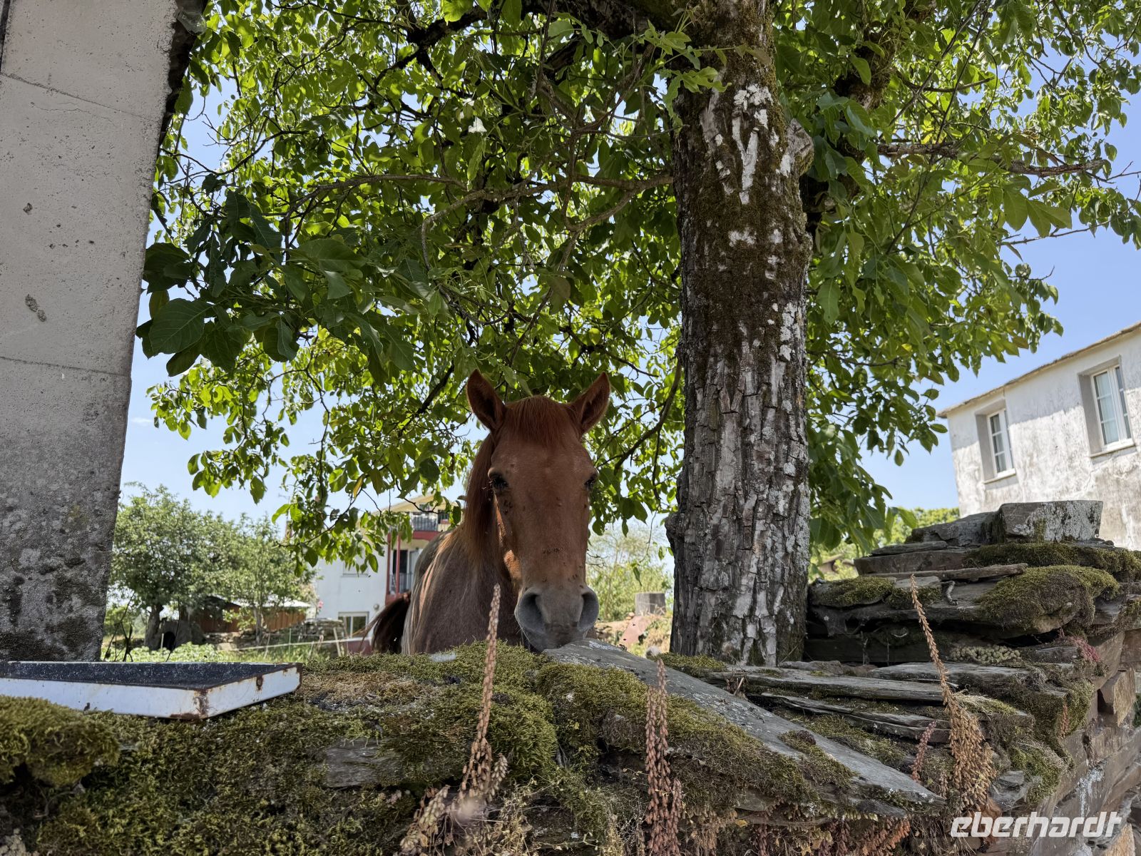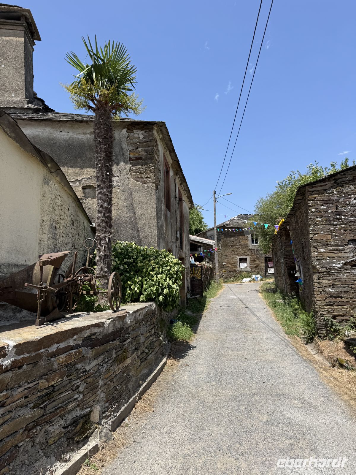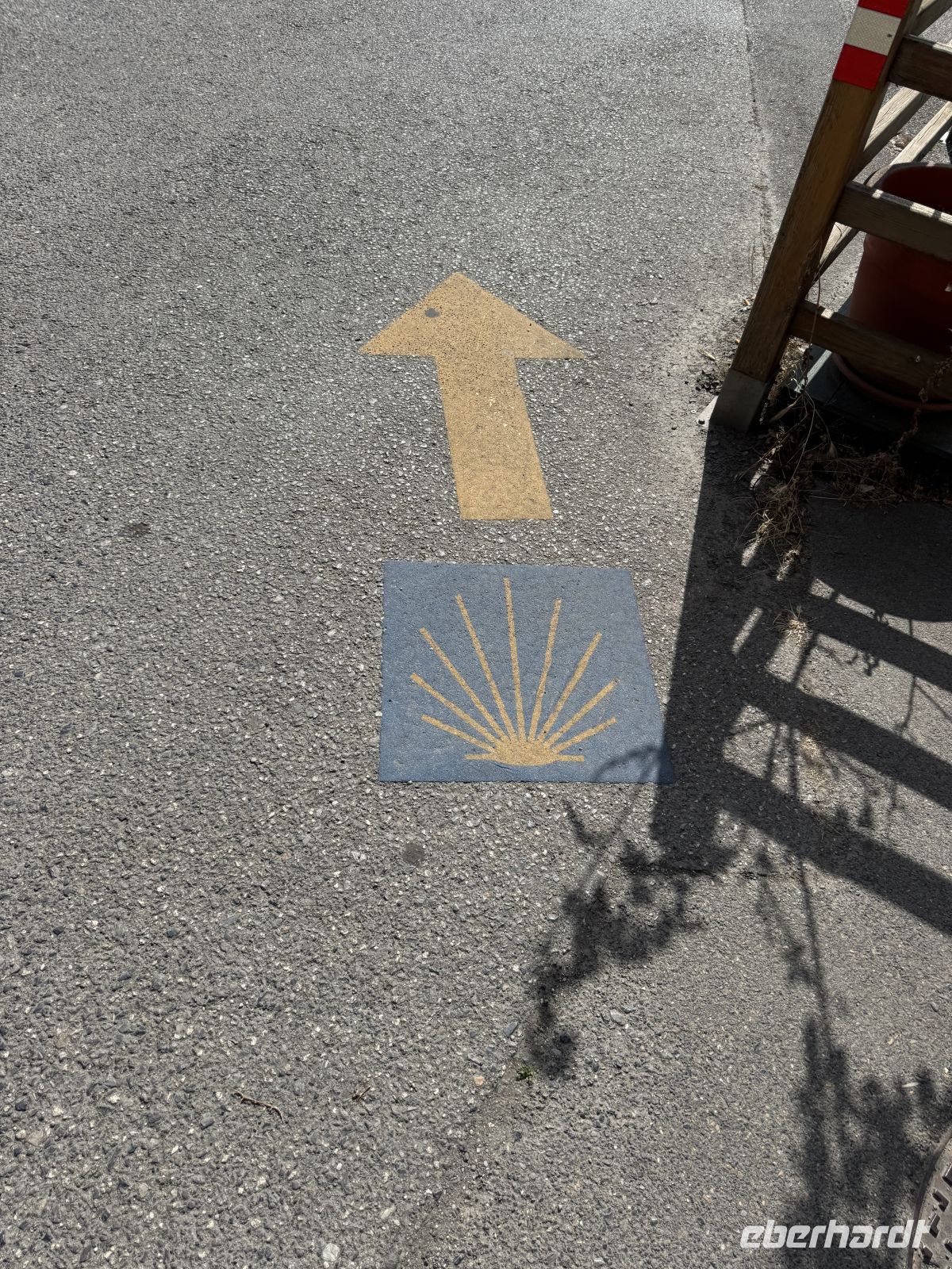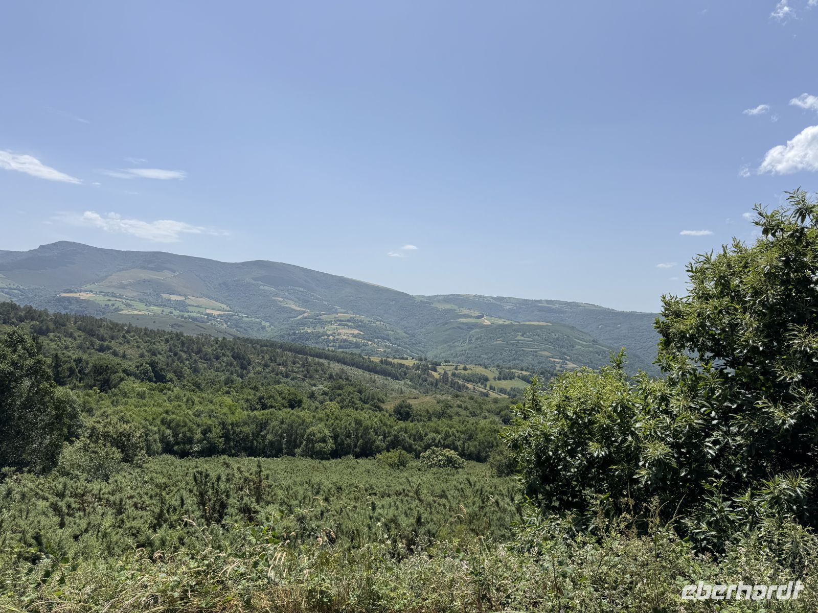 Wir starteten bei warmen Temperaturen und etwas spät – die Pilger beginnen ja normalerweise sehr früh. Die ersten 7 km führten uns über kleine Dörfer und durch Wälder bis auf 900 m Höhe. Dann ging es bergab durch weitere Dörfer, in denen wir wieder ein bisschen Zivilisation fanden.