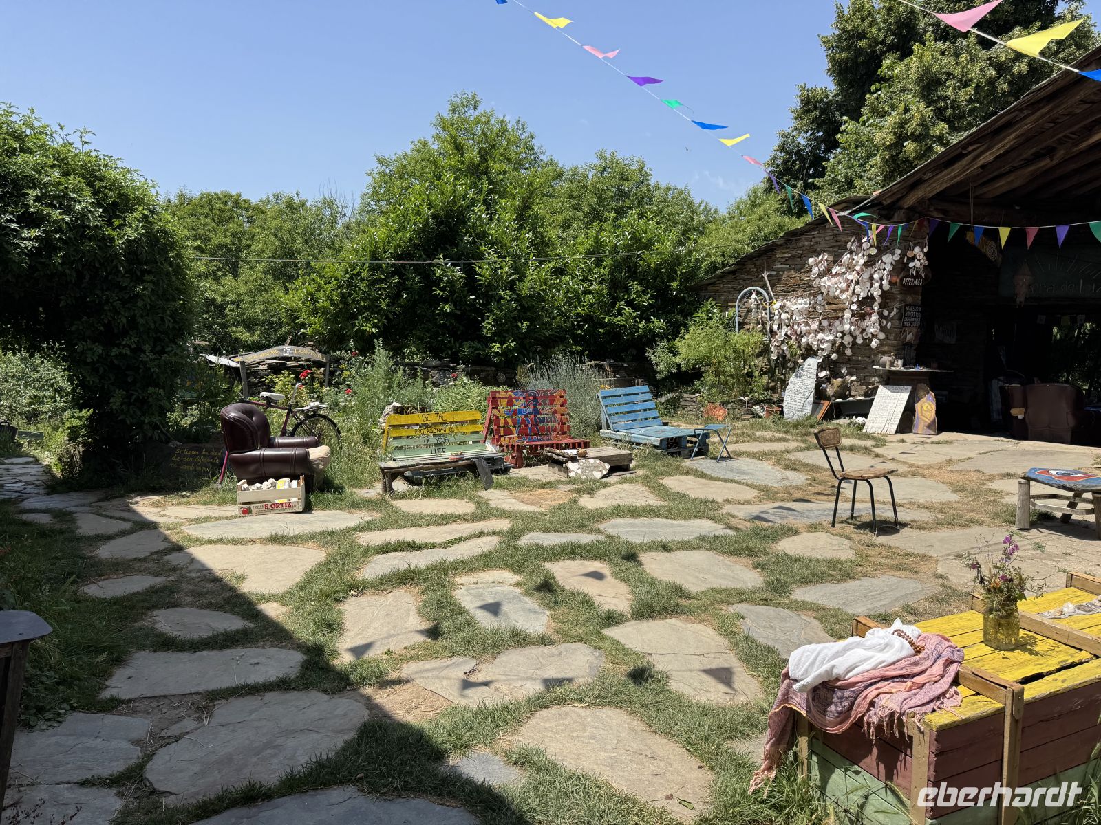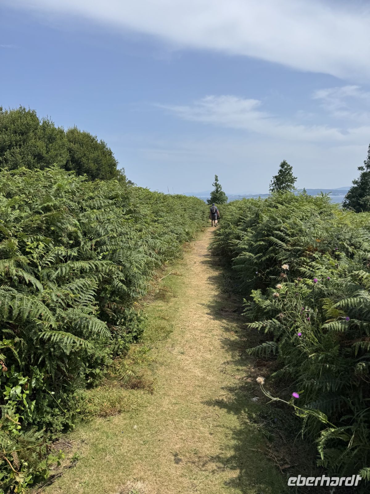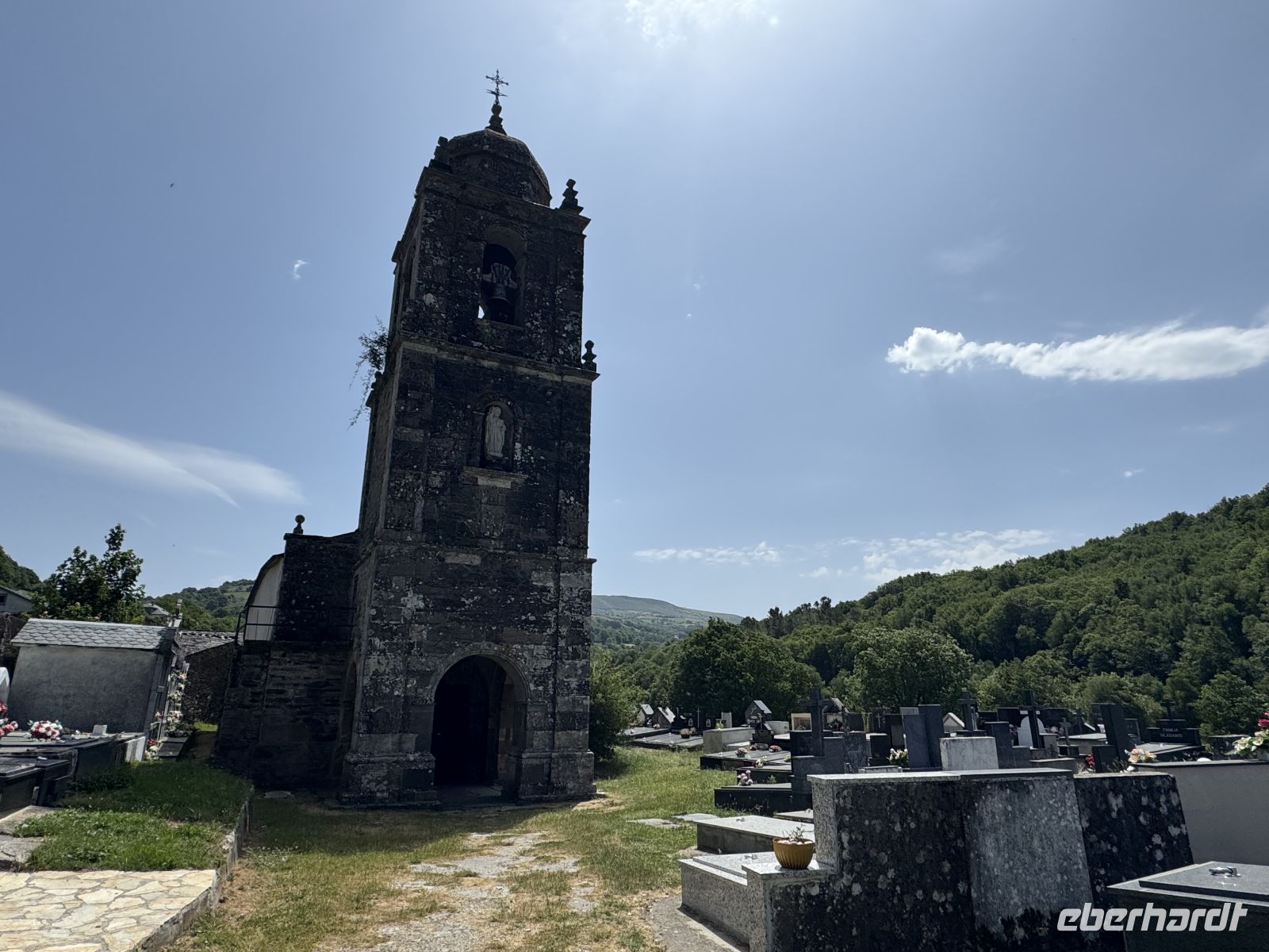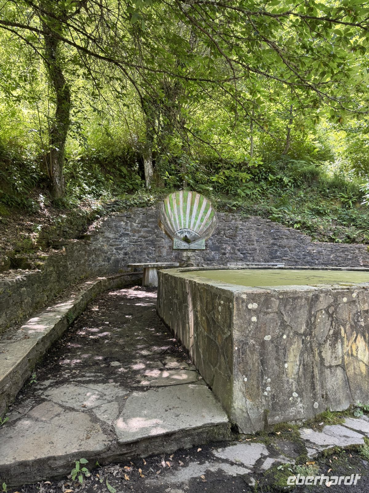 Wir starteten bei warmen Temperaturen und etwas spät – die Pilger beginnen ja normalerweise sehr früh. Die ersten 7 km führten uns über kleine Dörfer und durch Wälder bis auf 900 m Höhe. Dann ging es bergab durch weitere Dörfer, in denen wir wieder ein bisschen Zivilisation fanden.