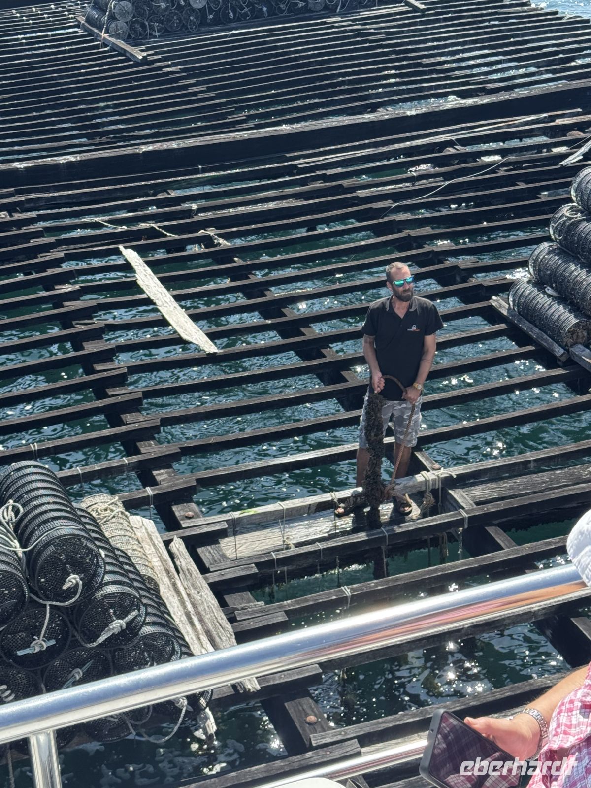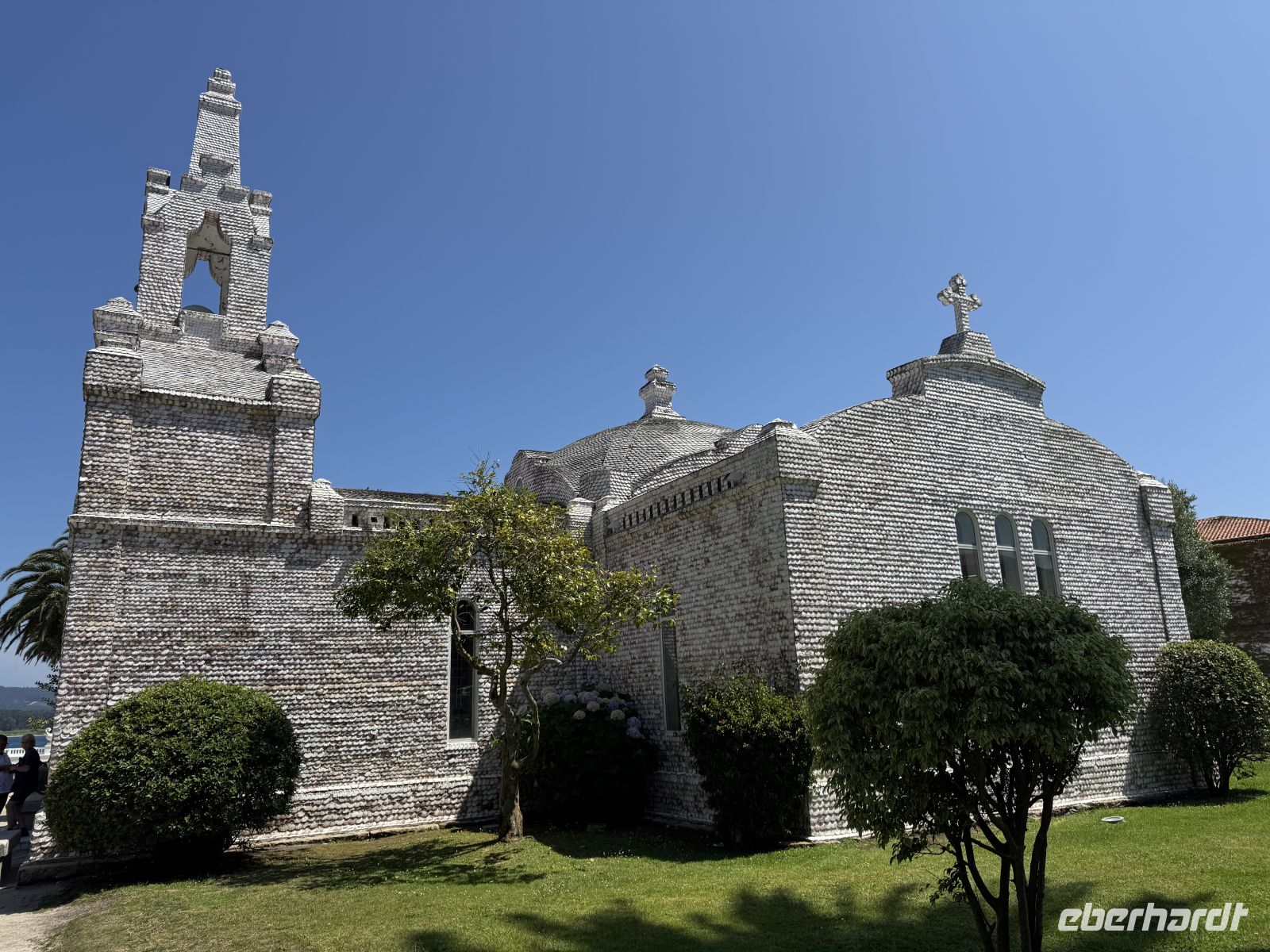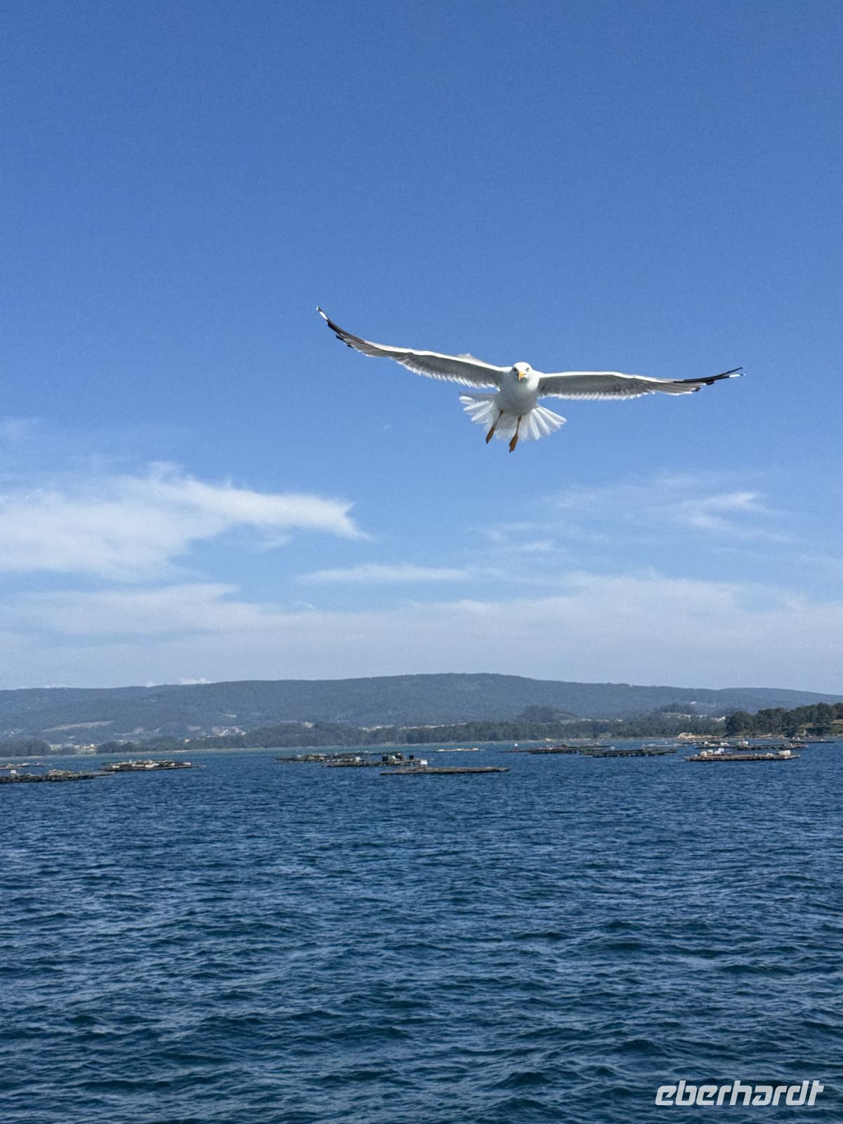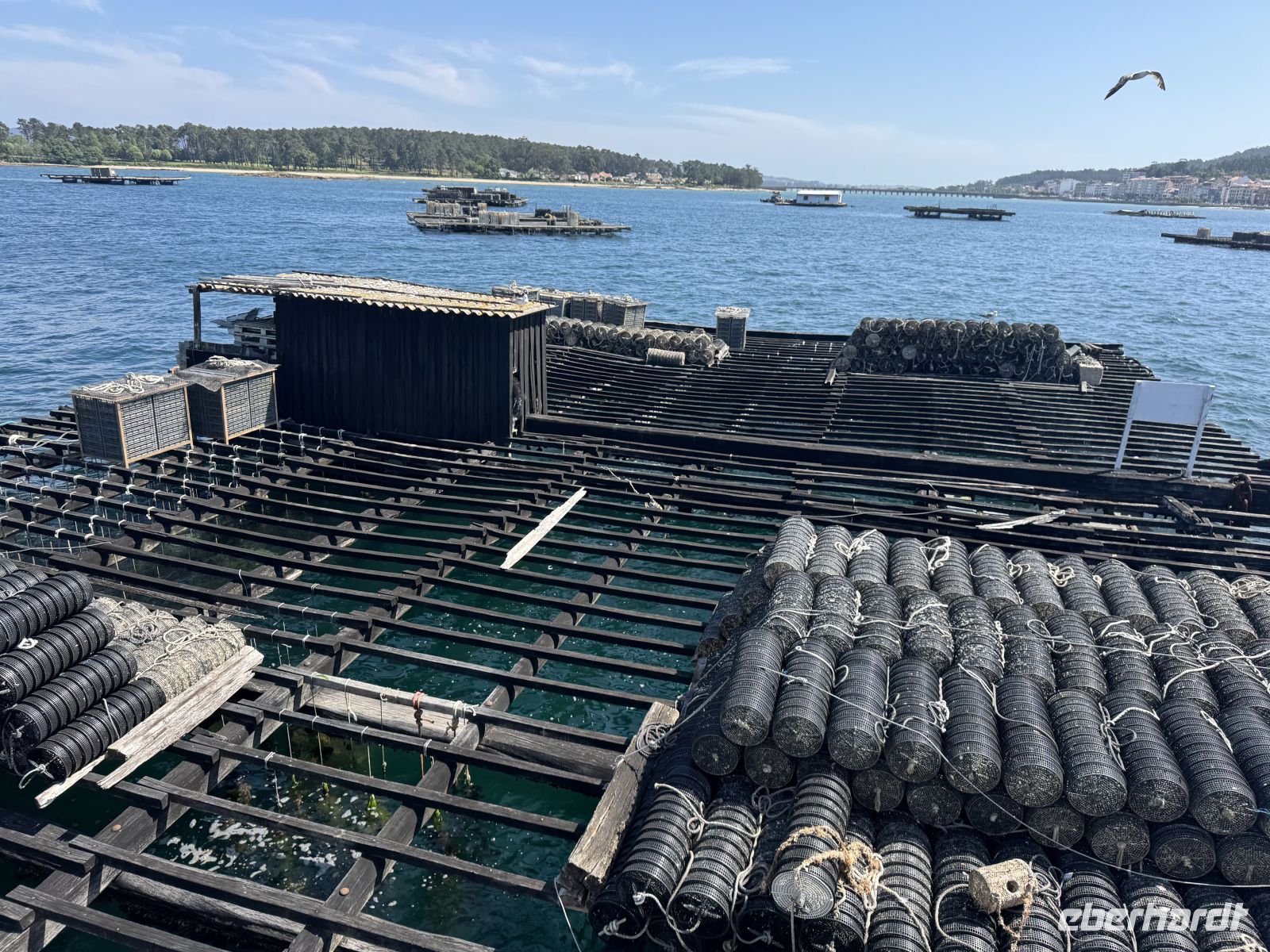 Später fuhren wir nach O Grove und besuchten die Muschelkapelle in Toja. Danach machten wir eine Bootsfahrt durch die Flussmündung und lernten, wie die Muschelzucht funktioniert. Natürlich gab es frische M
