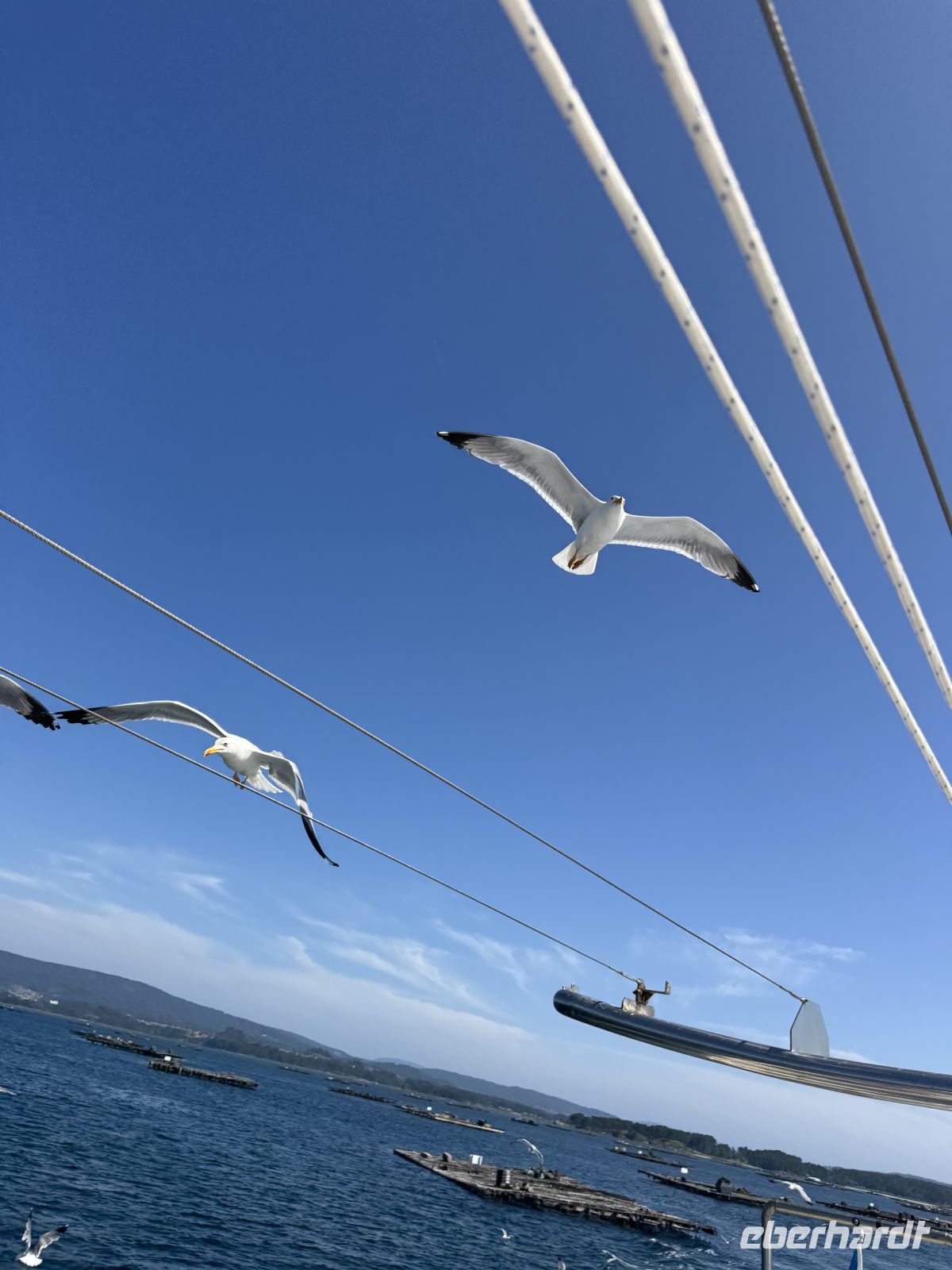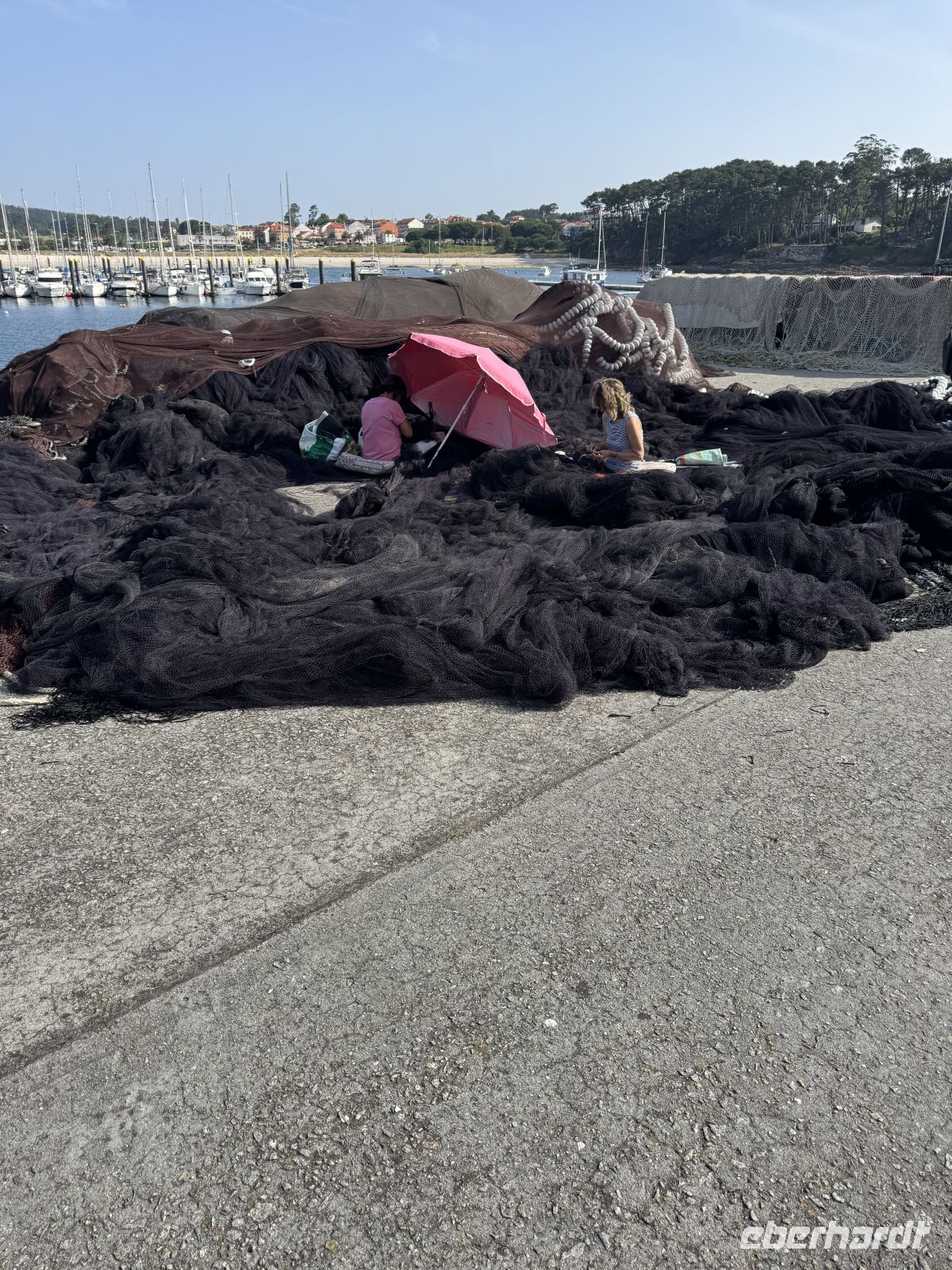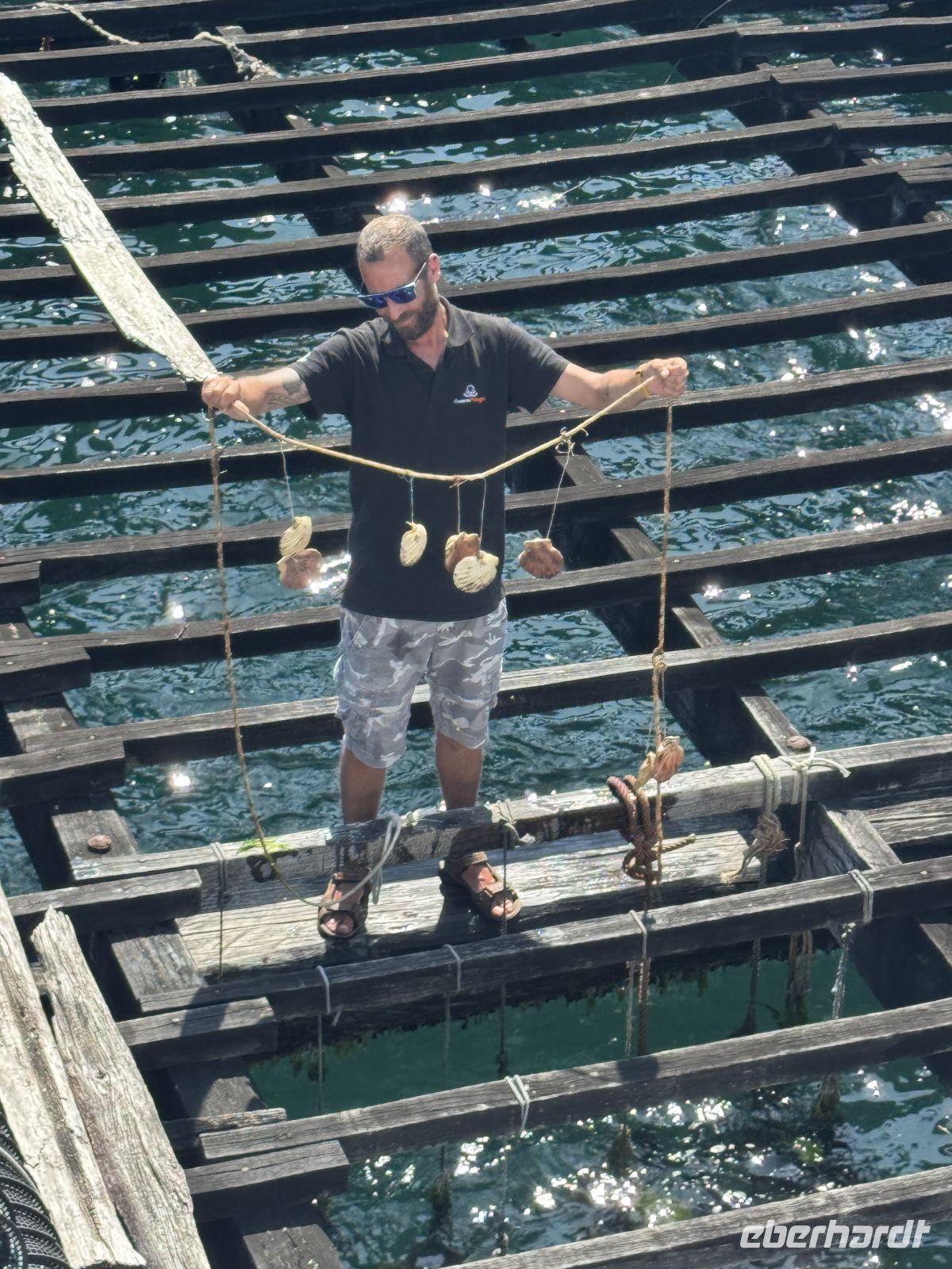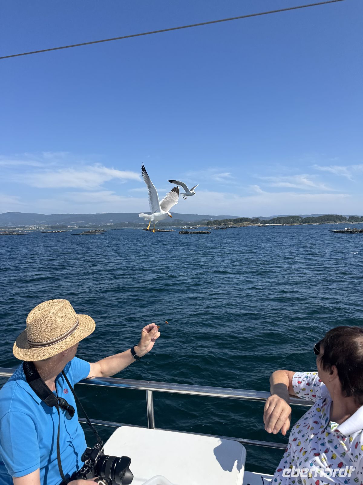Später fuhren wir nach O Grove und besuchten die Muschelkapelle in Toja. Danach machten wir eine Bootsfahrt durch die Flussmündung und lernten, wie die Muschelzucht funktioniert. Natürlich gab es frische M