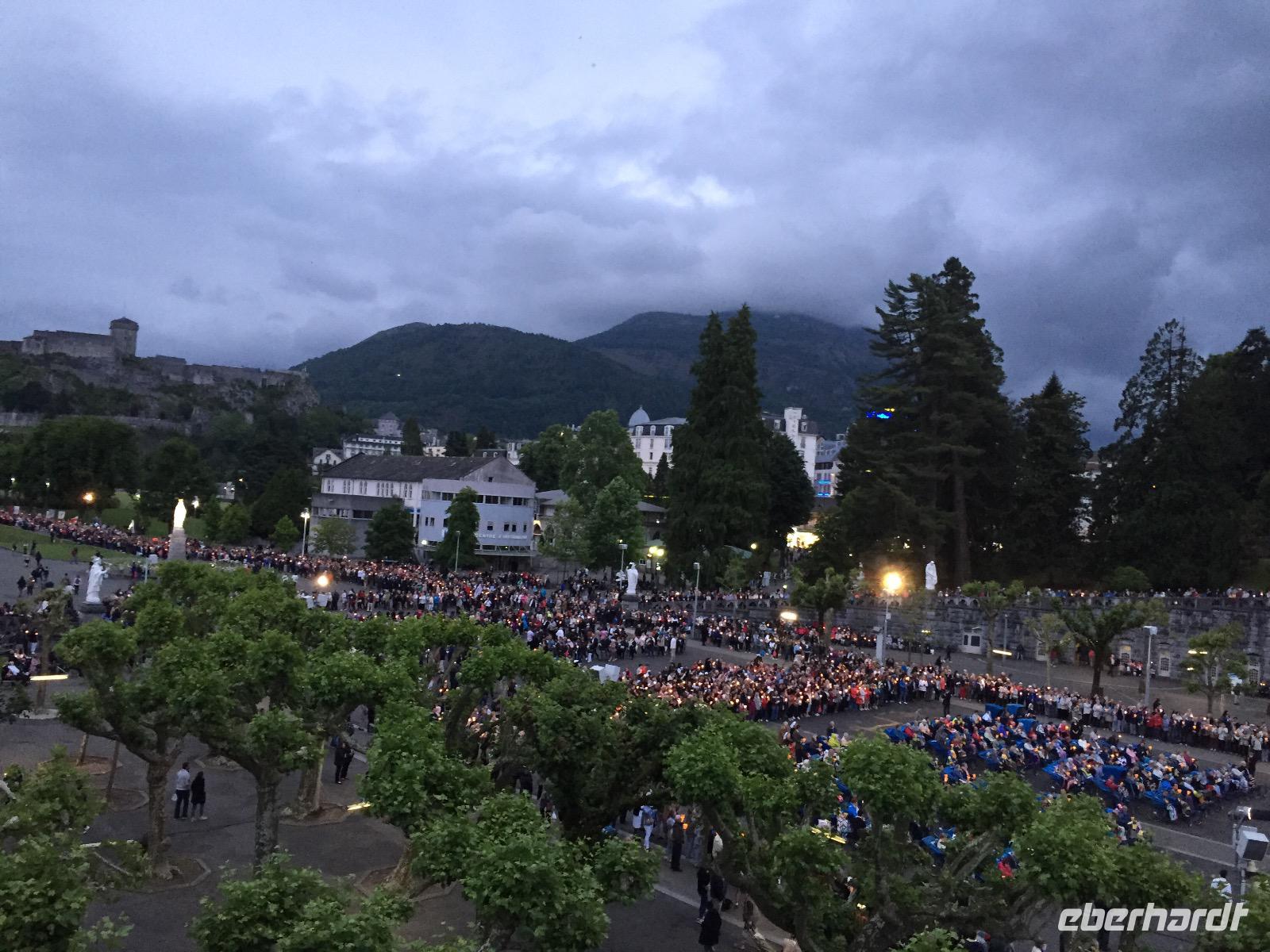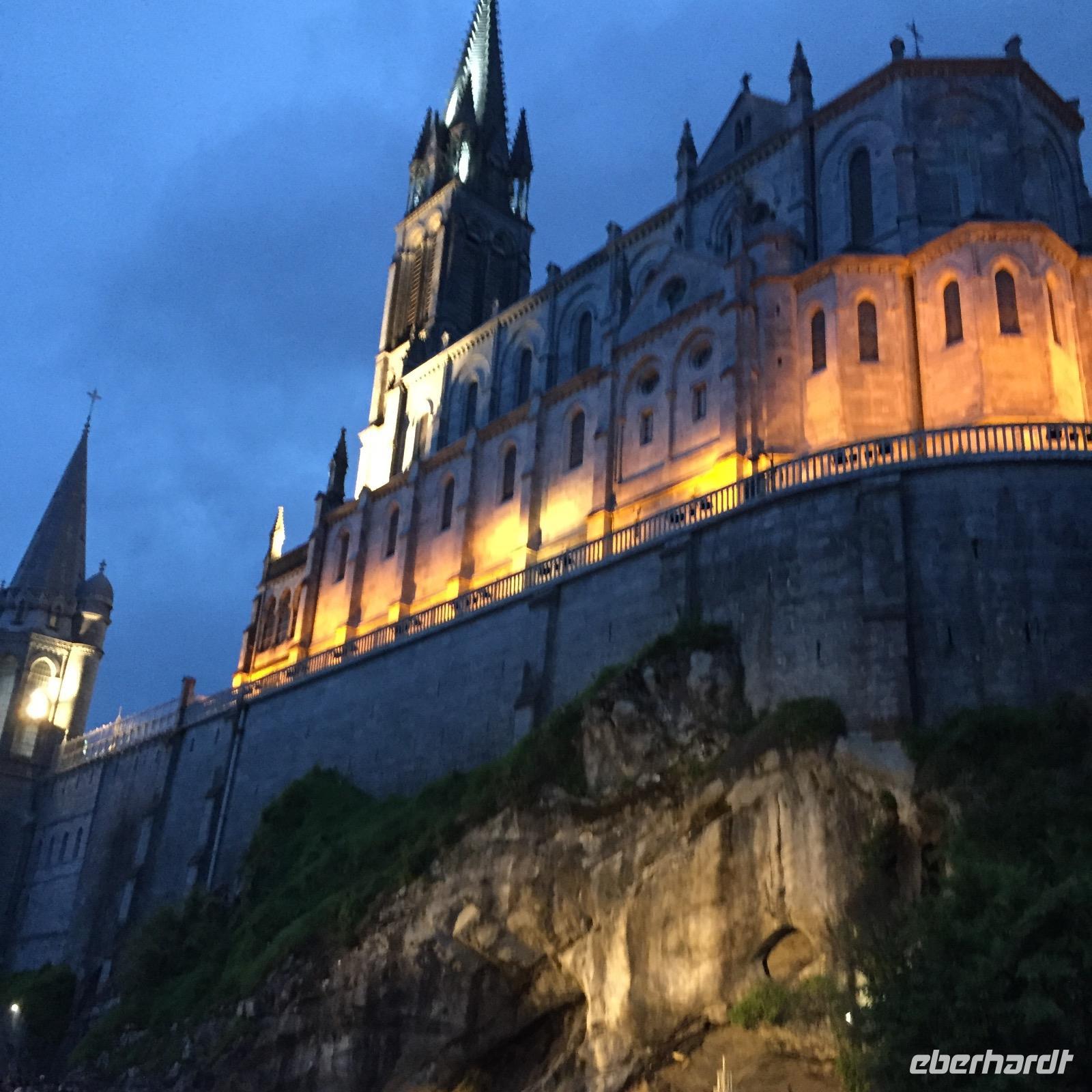 Das letzte Ziel des Tages wartete bereits: Lourdes. Seit im Jahr 1858 dem 14-jährigen Mädchen Bernadette Soubirous in der Grotte von Massabielle mehrmals die Mutter Gottes erschienen ist, entwickelte sich dieser Ort, zum grössten christlichen Wallfahrtsort. Es kam zu ersten unerklärlichen Heilungen und 1862 wurde die Glaubwürdigkeit kirchlich anerkannt. Seitdem pilgern Menschen zu dem kleinen Ort im Süden Frankreichs, derzeit jedes Jahr rund 6 Millionen, in der Hoffnung, auf Heilung oder Erlösung. Nach dem Abendessen unternahmen wir noch einen Rundgang zum "Santuario de Lourdes", einem Gebäudekomplex im heiligen Bezirk, welcher zwei bzw. drei Kirchen miteinander auf fantastische architektonische Weise vereint. Die obere, im neogotischen Stil gebaute "Maria Empfängnis Basilika" liegt westlich der Rosenkranz-Basilika, einer Basilika minor im neobyzantinischem Stil. Ihr Hauptschiff ist von 15 kleinen Kapellen umgeben und jede dieser Kapellen symbolisiert ein Mysterium des Rosenkranzgebetes. Und darunter befindet sich die Krypta. Vor diesen Basiliken treffen sich jeden Tag tausende Menschen, um an der Lichterprozession teilzunehmen. Als wir hier waren - zu Pfingsten, dem Feiertag des Herabkommens des Heiligen Geistes auf die Apostel - verfolgten noch mehr Menschen als sonst die internationale Messe, rings um uns herum ein Sprachengewirr aus der ganzen Welt. Den Weg ins Hotel trat ein jeder allein oder in einer kleinen Gruppe an, jeder in Gedanken versunken, aufgewühlt, distanziert, beeindruckt ... Lourdes polarisiert, aber bleibt in Erinnerung.