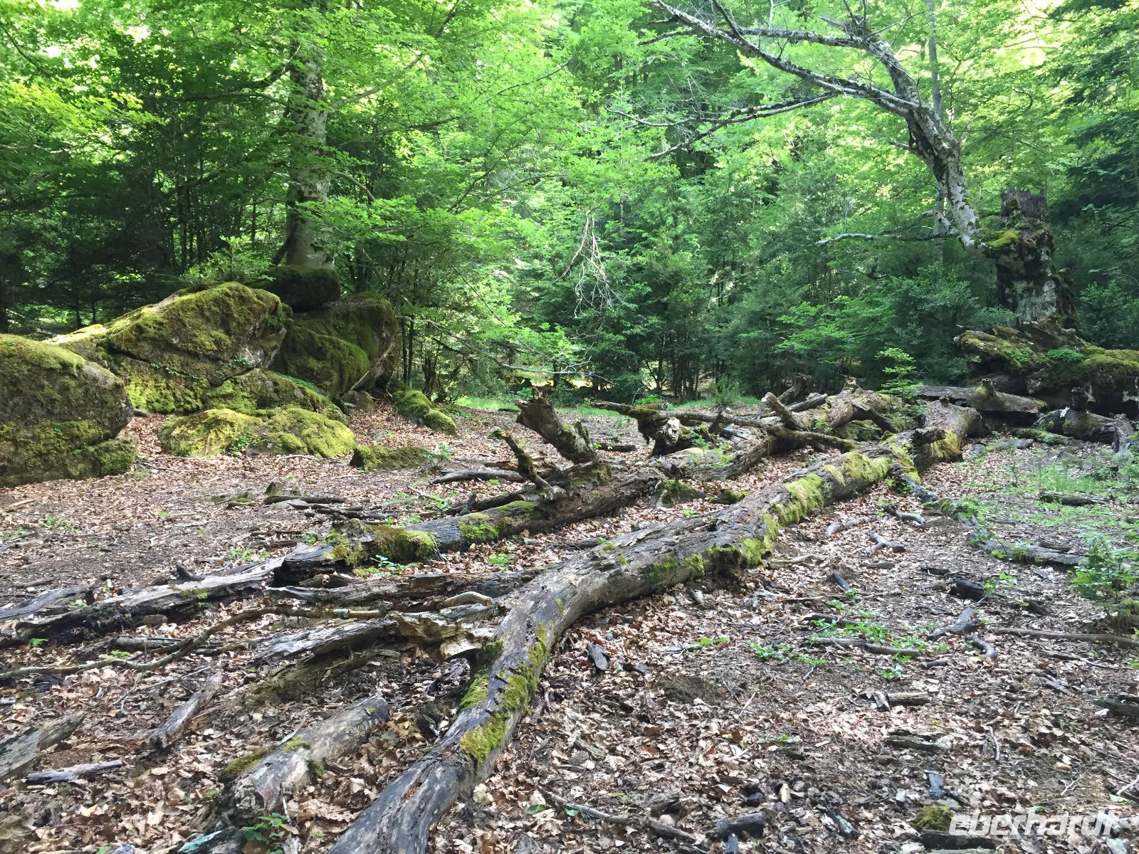 Bereits hier war absehbar, dass das Wetter vielleicht nicht bis zum Nachmittag aushalten würde, obwohl die morgendliche Absprache mit der örtlichen Zentrale und der Blick auf das Wetter-Radar, Gewitter nicht schon für den Vormittag voraussagten. Doch Nebel stieg auf, erste Tropfen fielen, es donnerte heftig. Noch einige hundert Meter weiter, ein prüfender Blick zum Himmel, aber dann entschieden wir uns doch zum Umdrehen. Sicherheit geht vor.