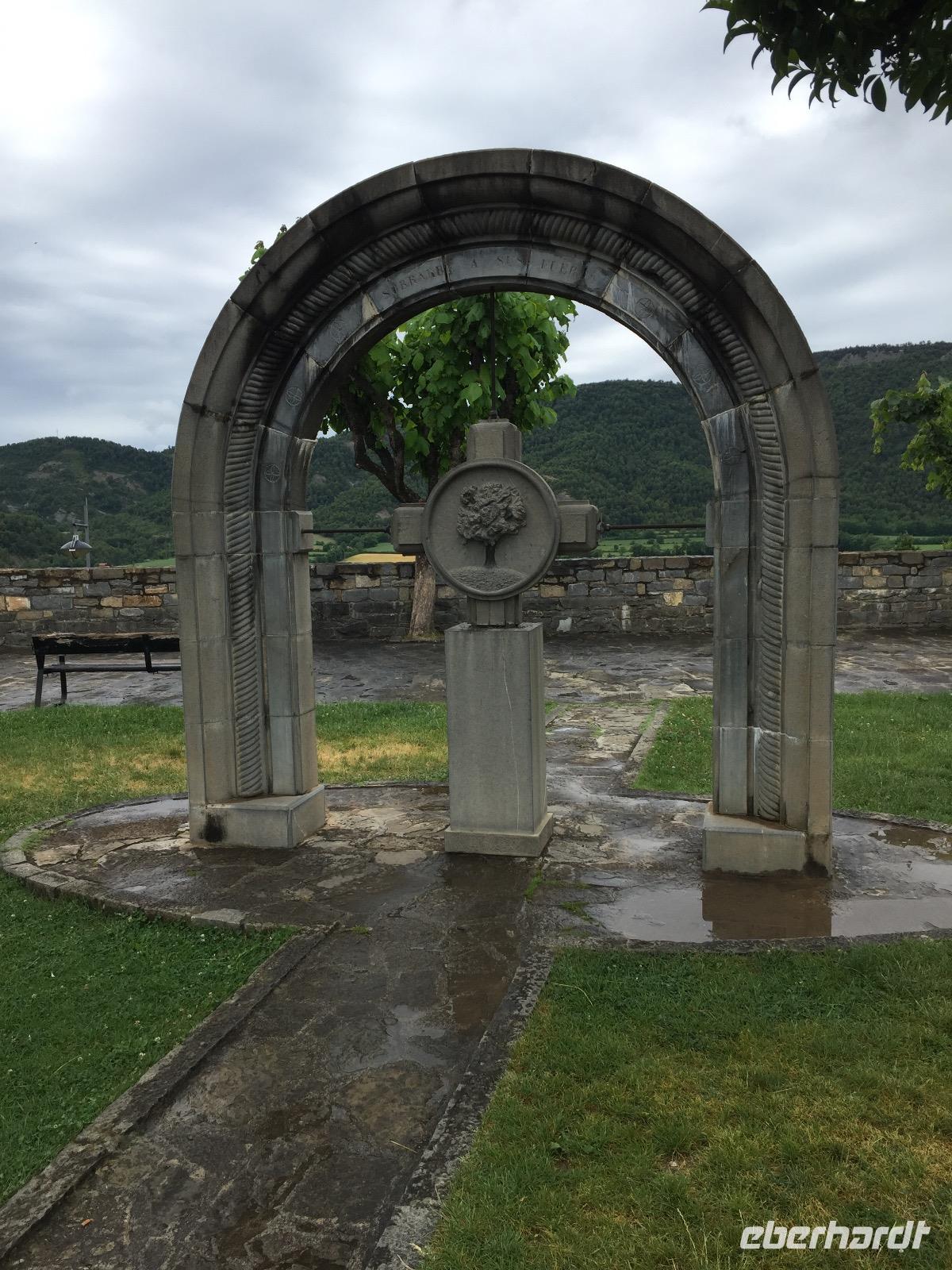 Bei strömendem Regen packten wir unsere Koffer in den Bus, verliessen Lourdes und hofften still, dass der Wettergott für den Nachmittag ein Einsehen haben würde. Zur Überquerung der französisch-spanischen Grenze nutzten wir den schon im Mittelalter von den Jakobspilgern begangenen 1.794 m hohen Pass "Col du Pourtalet, wo wir mit strahlendem Sonnenschein begrüsst wurden.