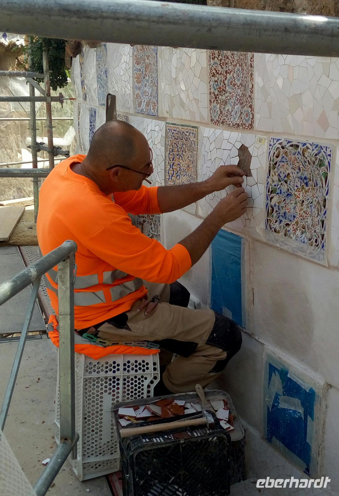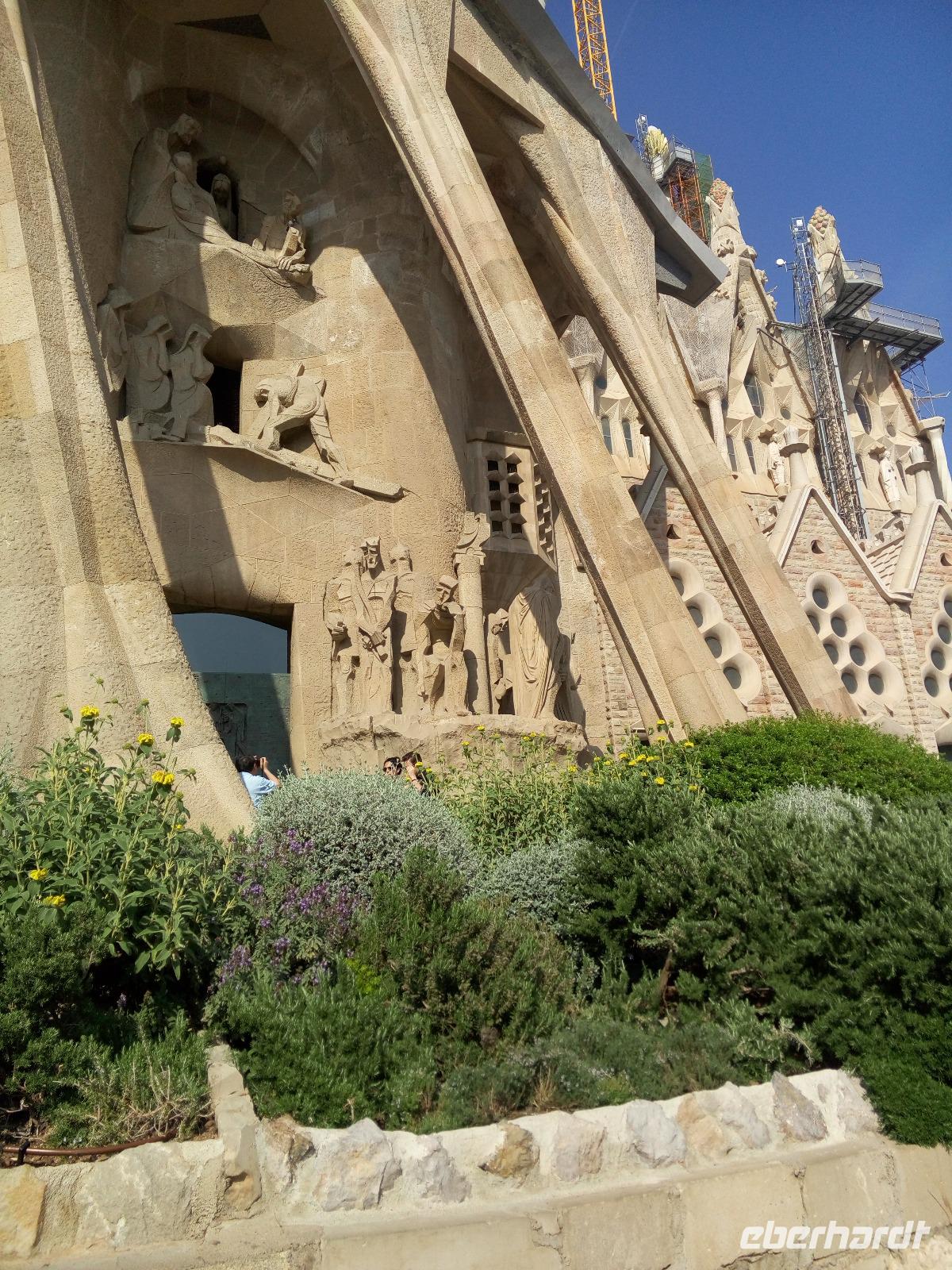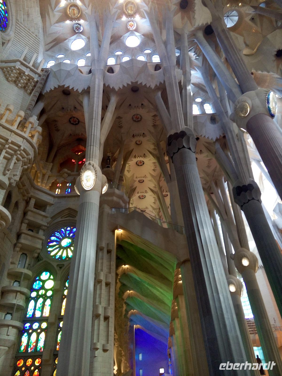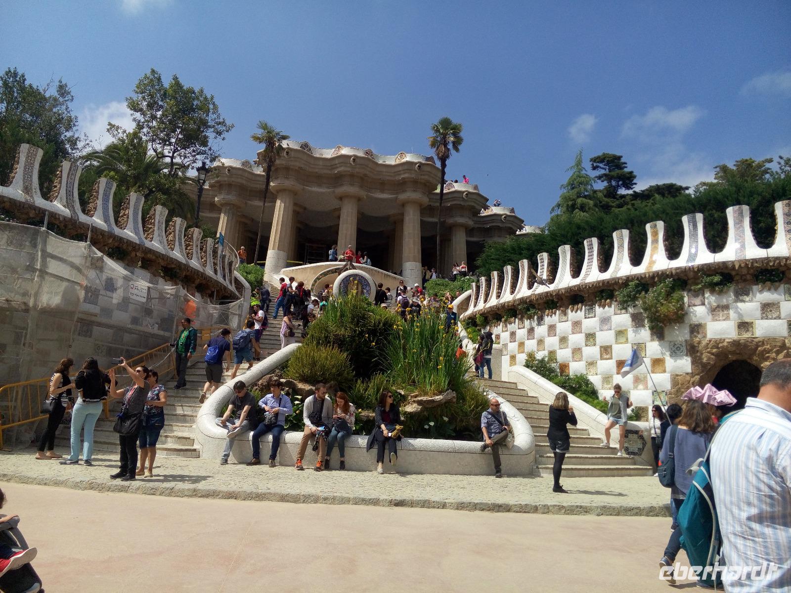 Einige von den Gästen sind allein spazieren genagen und andere mit mir die Rambla entlang bis zum Hafen. Ein kurzer Stopp im Café Maremagnum hat unsere Kräfte gestärkt, bevor wir uns mit usnerem örtlichen Reiseleiter Lorenzo trafen. Nach seiner Begrüßung stiegen wir in den Bus ein und machten uns auf die Spuren von Antonio Gaudi. Unser erster Halt war bei dem Park Guell. Dieser Park wurde als Siedlung auf dem Berg angelegt. Gaudi wollte, dass er die Leute an die englischen Gärten erinnert und sogar der Name wird auf englische Art und Weise geschrieben. Unser zweiter Stopp war Hospital de Sant Pau. Diese Punkt war nicht im Programm vorgesehen, aber Lorenzo hat es uns möglich gemacht. Hospital de Sant Pau gehört auch zu den Jugendstilgebäuden von Barcelona. Bis 2008 wurde es noch als Hospital benutzt, jetzt ist es ein Museum. Es befindet sich in der Nähe von der Sagrada Familia, nur 10 Minuten von dem Tempel entfernt. Die schöne Avenida Gaudi verbindet beide Sehenswürdigkeiten miteinander.