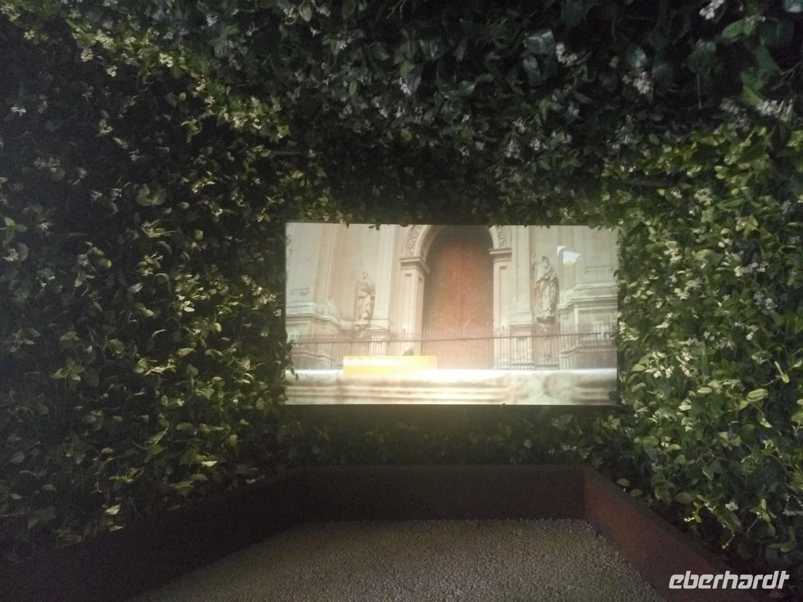 Nach diesem Besuch hat uns der Bus kurz zum Hotel gebracht, wo wir uns erholt haben. Dann ging es weiter zu der Stierkampfarena und unserem Restaurant für diesen Abend, Quinto Quinta. Mit dem Fahrstuhl haben wir die Etage erreicht, wo sich das Restaurant befindet. Auf dem Dach von Arena kann man das 360º Panorama von Barcelona sehen. Da der Abend ziemlich warm war, haben wir uns für den Platz draussen entschieden.