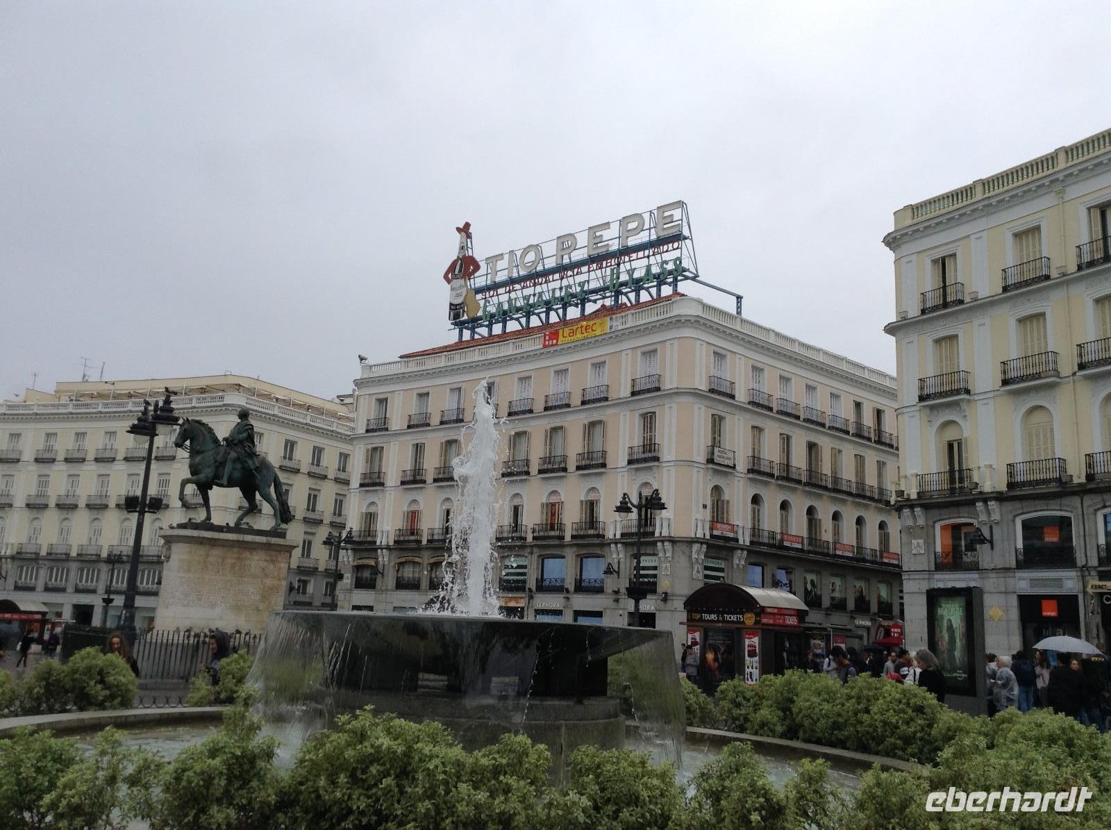 Mit einem Teil der Gruppe hatte ich mich nach dem Frühstück für den Ausflug nach Aranjuez verabredet. Zu Fuß ging es bis Puerta del Sol zum Bahnsteig für den Vorortzug. Wir lösten unsere Tickets und fuhren eine knappe Stunde ins Landesinnere, vorbei an den Stadtteilen der Millionenmetropole.