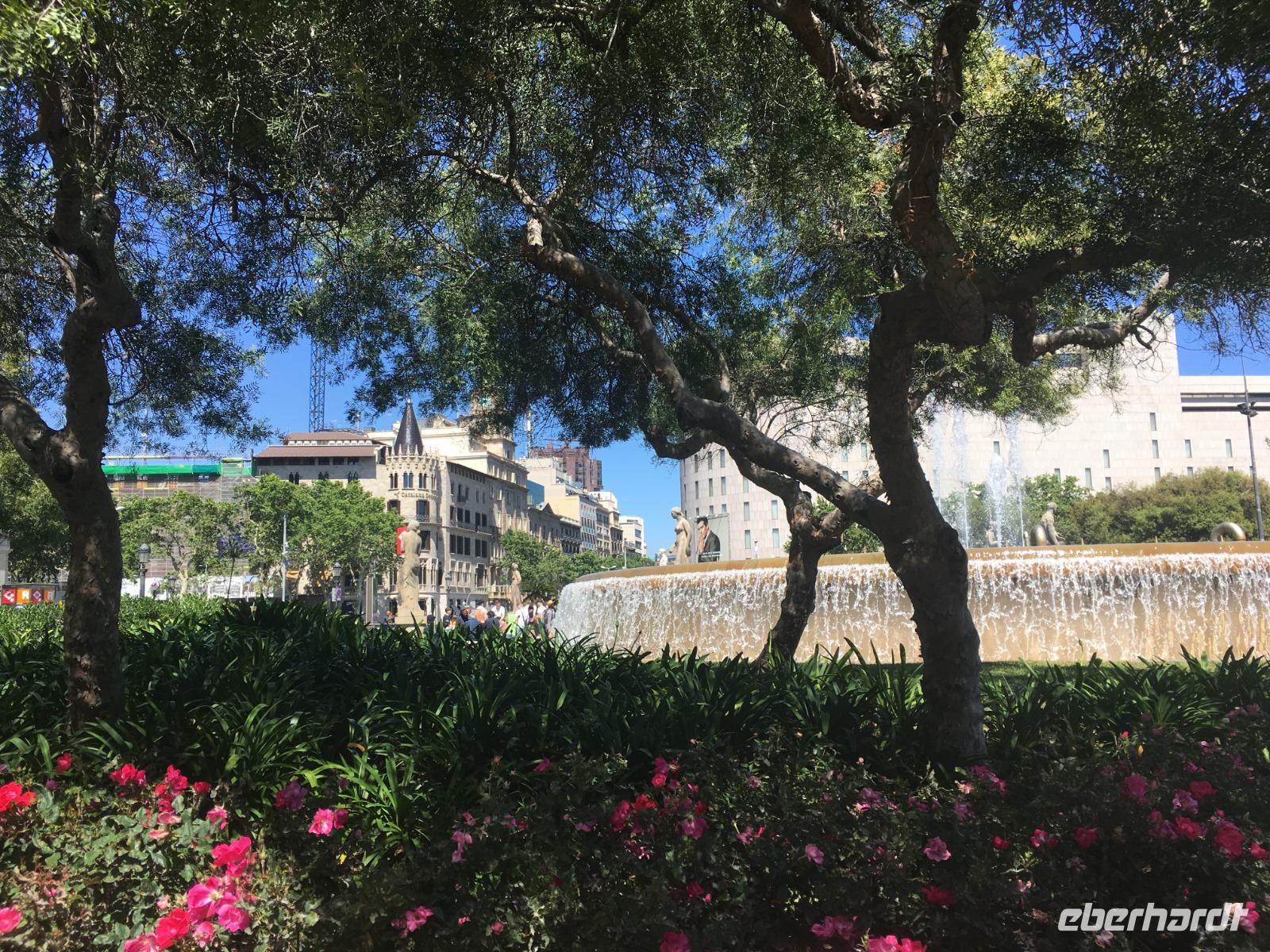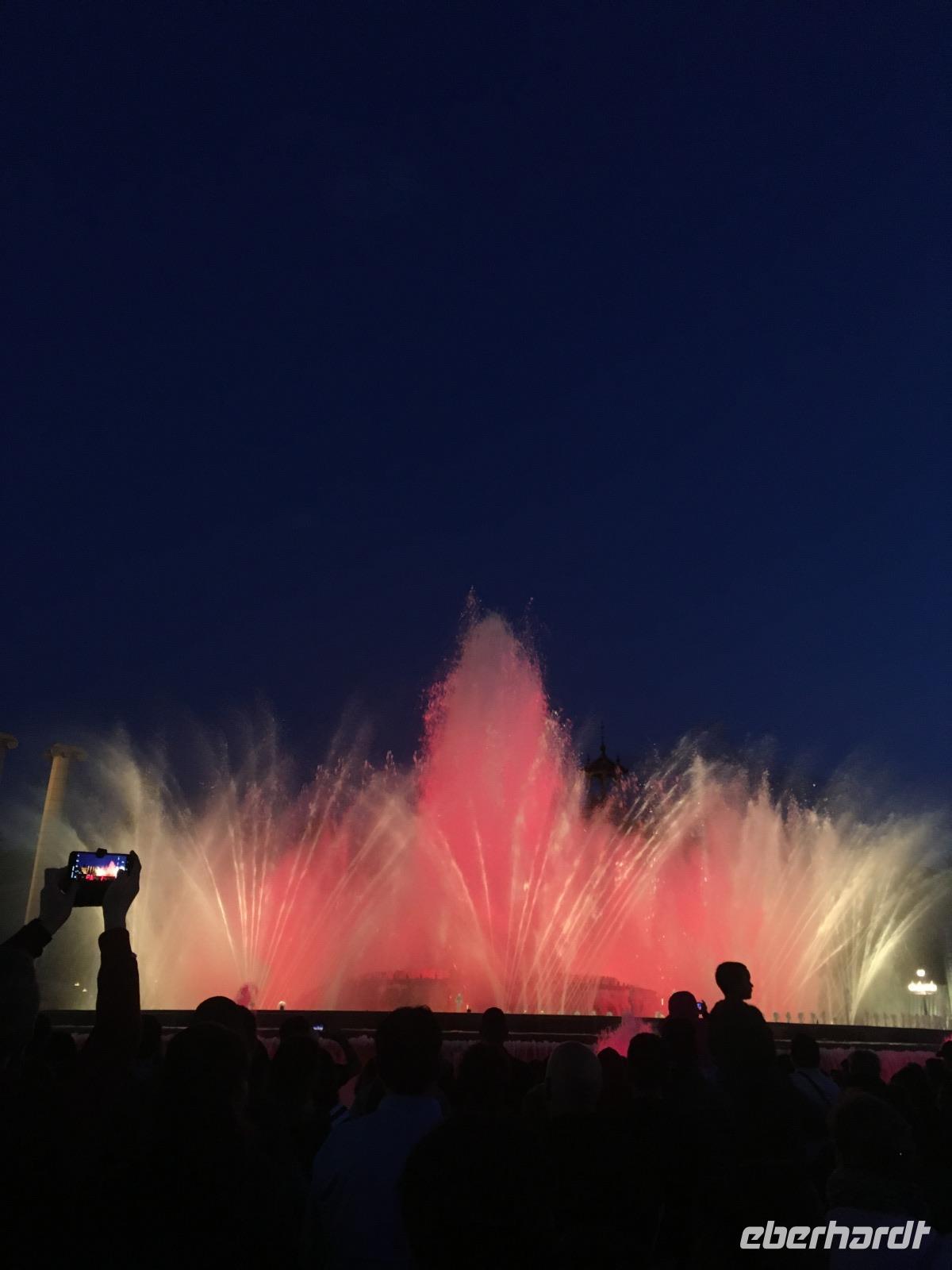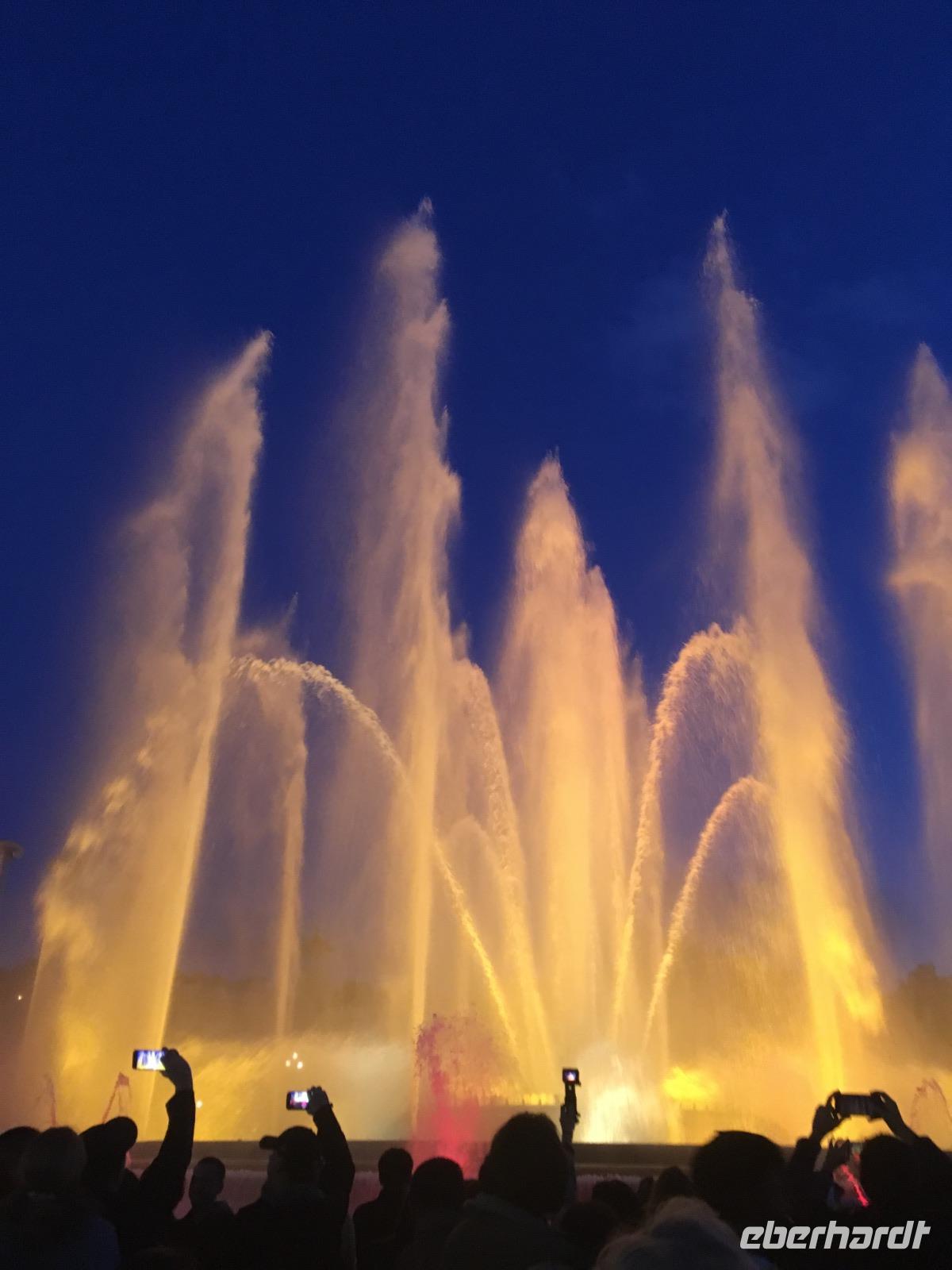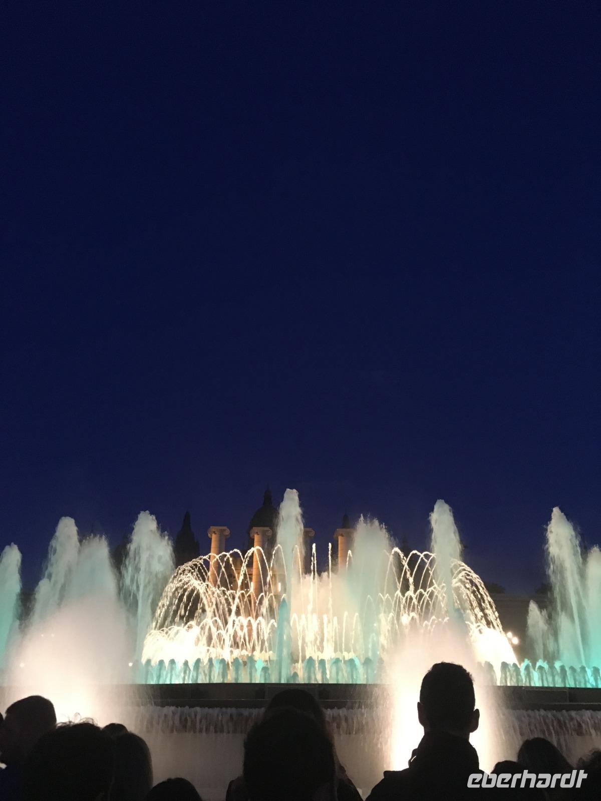Auch wenn sich nun der Tag dem Ende zuneigt, steht ein Höhepunkt noch bevor: die Wasserspiele an der Fuente Mágica (magische Fontäne), die vor dem Nationalpalast eine schöne Kulisse bieten. Das Spektakel wollen sich auch die Einwohner Barcelonas nicht