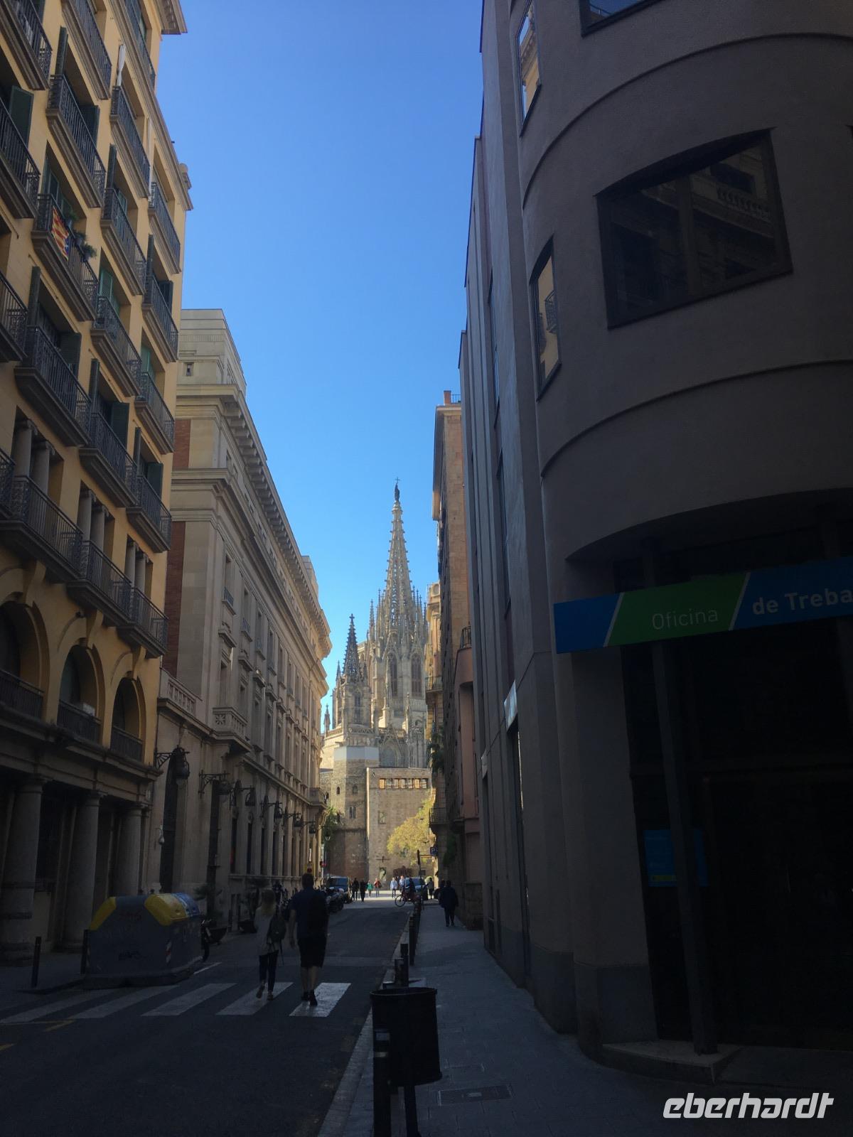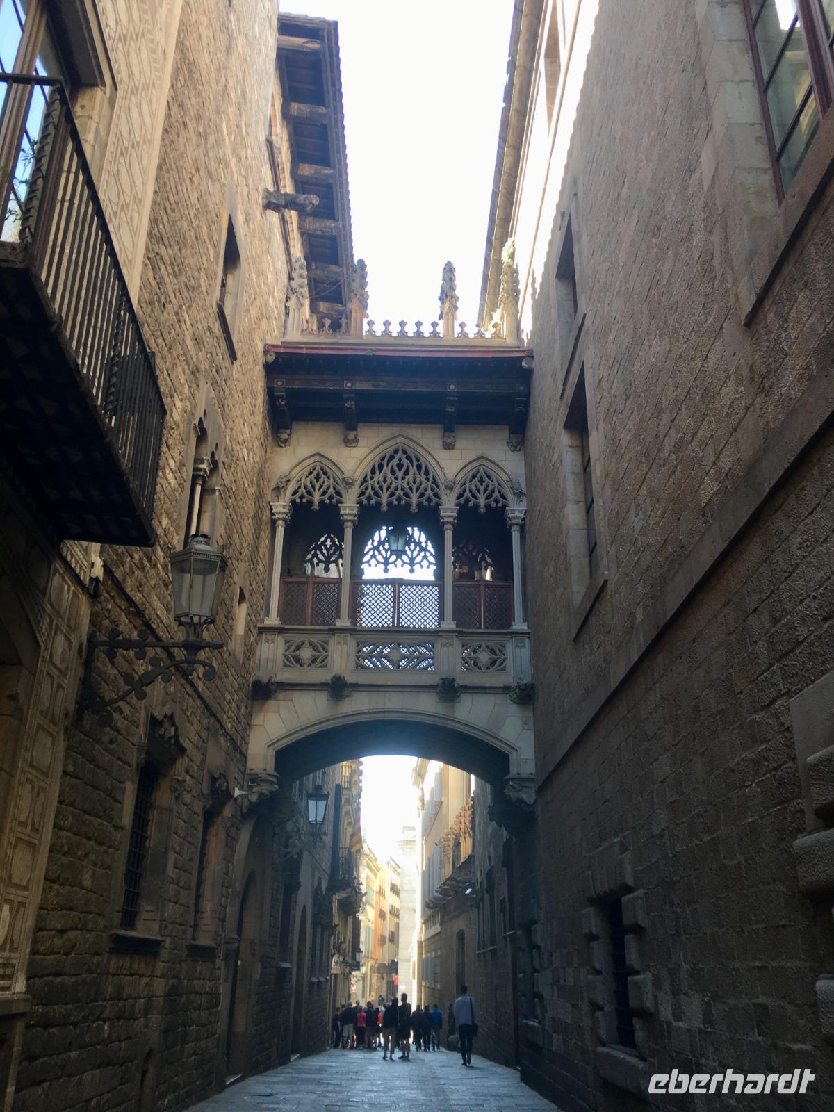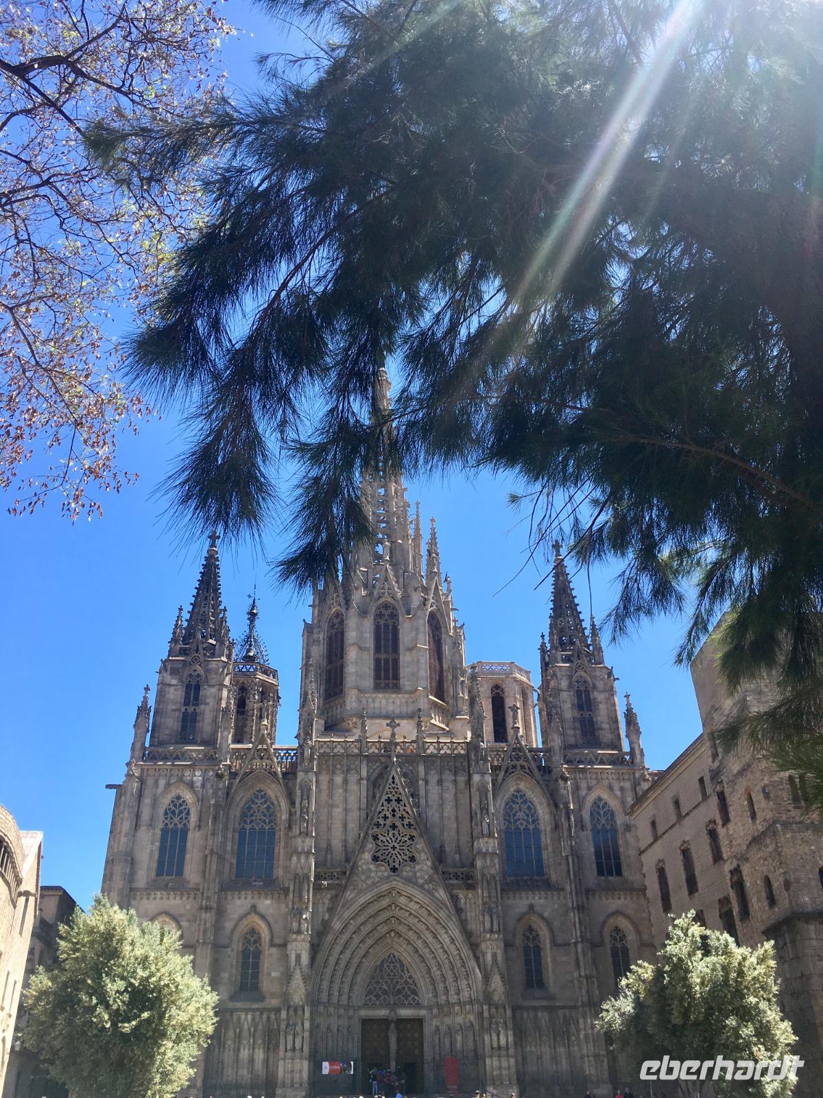 Den Tag nutzen wir außerdem für einen Spaziergang durch das Altstadtviertel Barri Gòtic, das gotische Viertel. Die schmalen mittelalterlichen Gassen bieten einen Kontrast zu der belebten parallel gelegenen Promenade La Rambla und lassen einen verzaubernden Flair verspüren. Auch die Kathedrale liegt inmitten des Altstadtviertels, besonders sticht der Kreuzgang mit seinem Hof hervor, aus dem Palmen in die Höhe ragen und 13 schnatternde Gänsen zu finden sind.