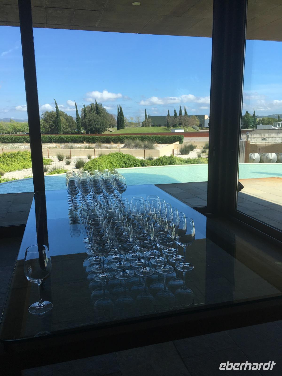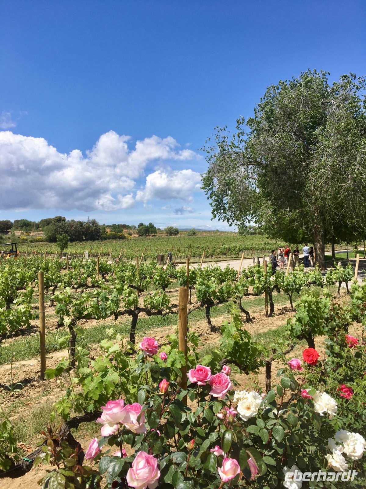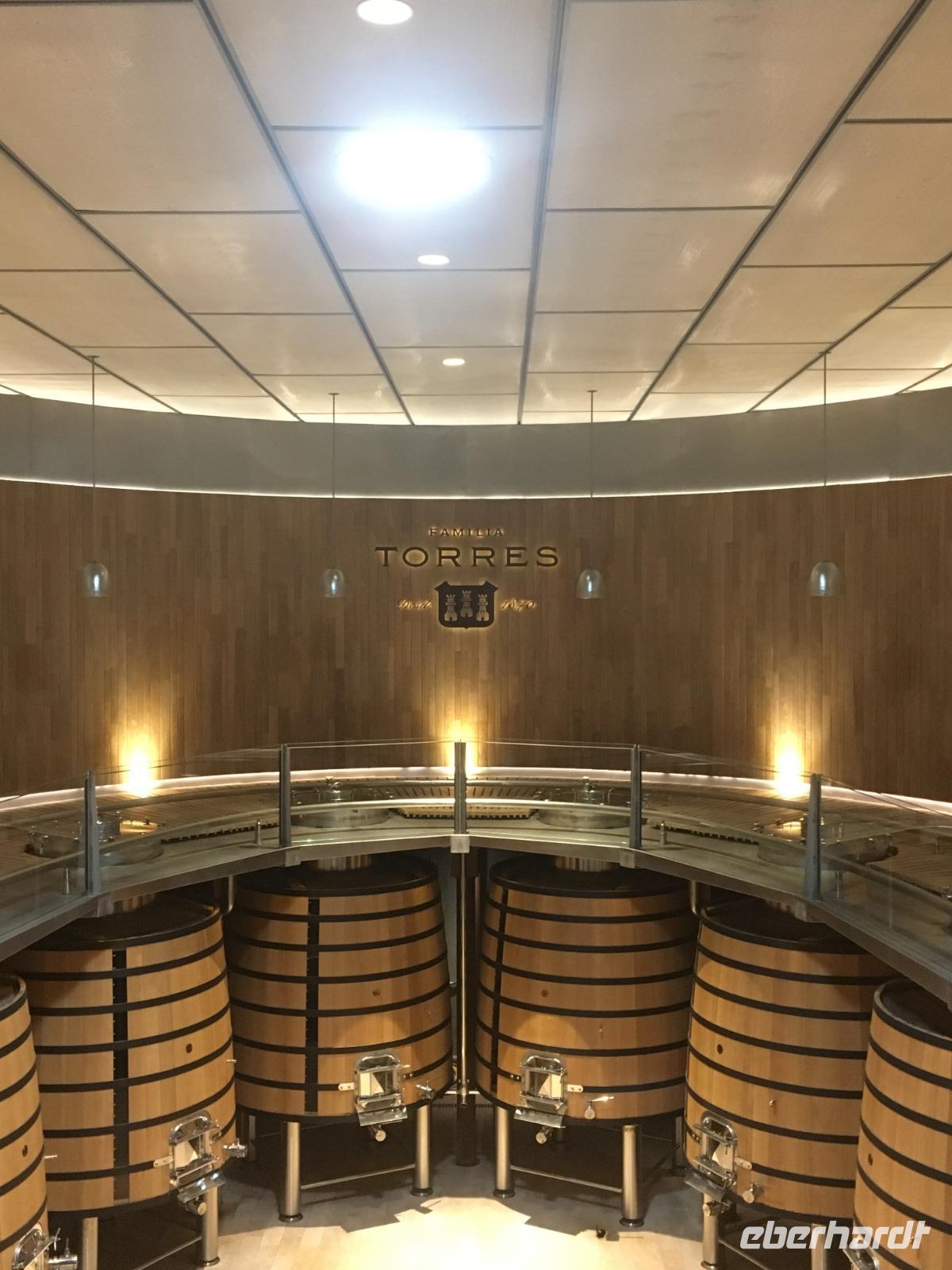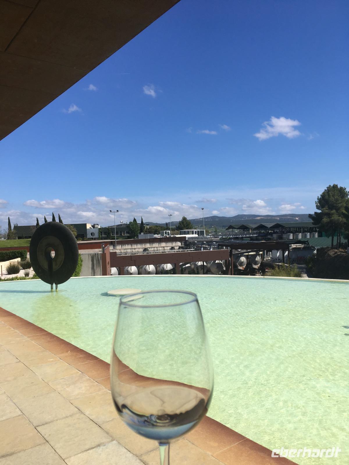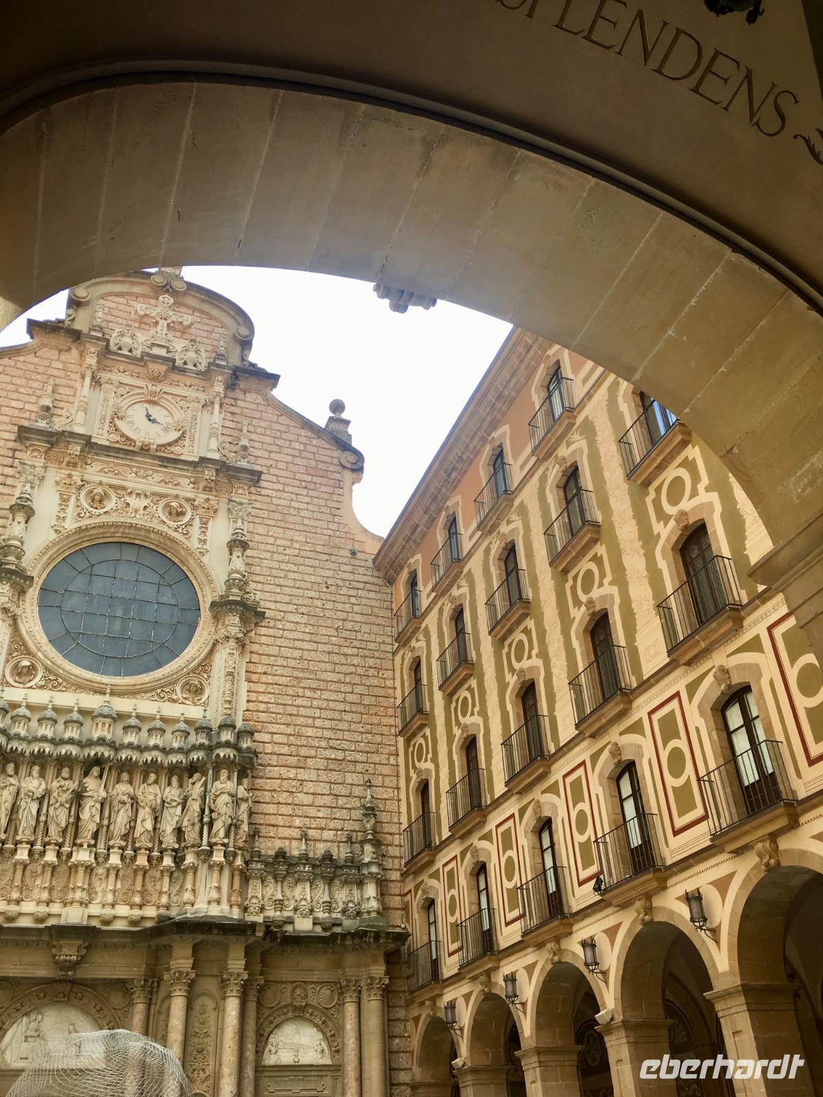 Schon öfter kam die Frage im Laufe der Woche auf, wann denn die Spanier ihren Tag beginnen würden? Die Straßen füllen sich ab neun Uhr morgens, an den Straßencafés trinken die Spanier schnell einen Café corto und begeben sich dann rasch zur Arbeit. Doch unsere Eberhardt-Gruppe pflegt einen anderen Rhythmus. Wir werden nach dem gemütlichen Frühstück im Hotel bereits von unserer Reiseleiterin Susanne erwartet, die uns heute auf unserem Ausflug begleitet. Mit dem Bus fahren wir nordwestlich von Barcelona auf die Autobahn und steuern das Sandsteingebirge Montserrat an, das besonders durch das sich dort befindende Kloster ein schönes Ausflugsziel bietet. Wir spazieren hoch zum Kloster, wo in der Kirche derzeit eine Messe abgehalten wird. Reichlich Menschen füllen die Basílica und wer diese von unserer Gruppe betritt, versucht einen Blick auf die schwarze Madonna zu erhaschen. Wir nutzen die Zeit, um etwa das Museum zu besuchen, im Park spazieren zu gehen oder in Ruhe bei einem Kaffee die Aussicht zu genießen. Gegen Mittag fahren wir weiter zur Bodega Torres. Wir besichtigen die Weinkellerei und kosten einen Rot- und Weißwein mit Blick auf die weitläufigen Weinfelder bei herrlichstem Wetter.