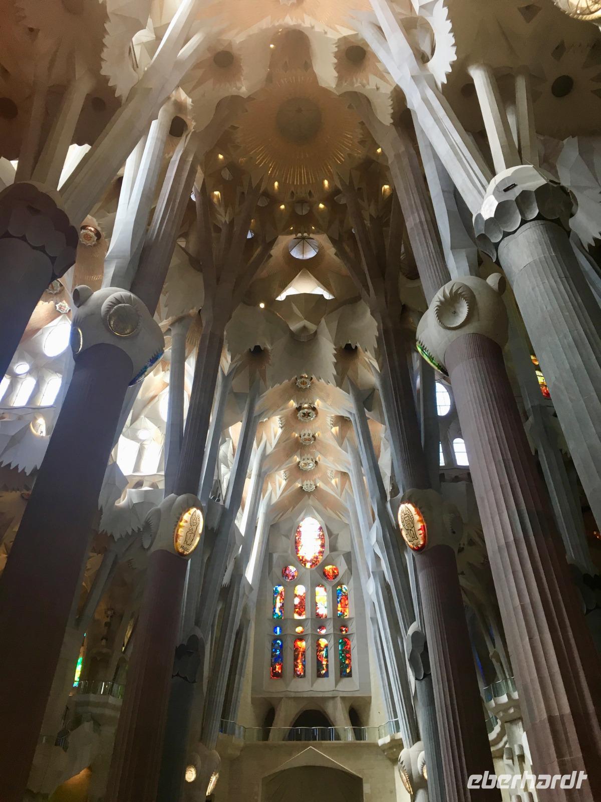 Wir führen unsere Rundfahrt fort und fahren entlang des Hafens und passieren den Parc de la Ciutadella, bis wir an der Sagrada Familia angelangen. Schon von außen fasziniert uns die Architektur im Stil des Modernisme, entworfen von Gaudí. Bis heute ist die Kirche unvollendet, doch die Fertigstellung ist für das Jahr 2026 - zum 100. Todestages Gaudís - angekündigt, erklärt uns Lorenzo. Wir besichtigen die Sagrada Familia und stärken uns danach mit ein paar Tapasvariationen in einer nahe gelegenen typisch spanischen Bar. Anschließend bringt uns der Bus zum Parc Güell, der ebenfalls von Antoni Gaudí erschaffen wurde zu Anbeginn des 20. Jahrhunderts. Wir lassen uns nicht nur von der faszinierenden Aussicht auf die Stadt verzaubern, sondern auch von der Parkanlage und den Mosaik verzierten Bänken. Am Nachmittag verabschiedet sich Lorenzo von uns und wir freuen uns, viele Facetten von Barcelona erlebt zu haben.