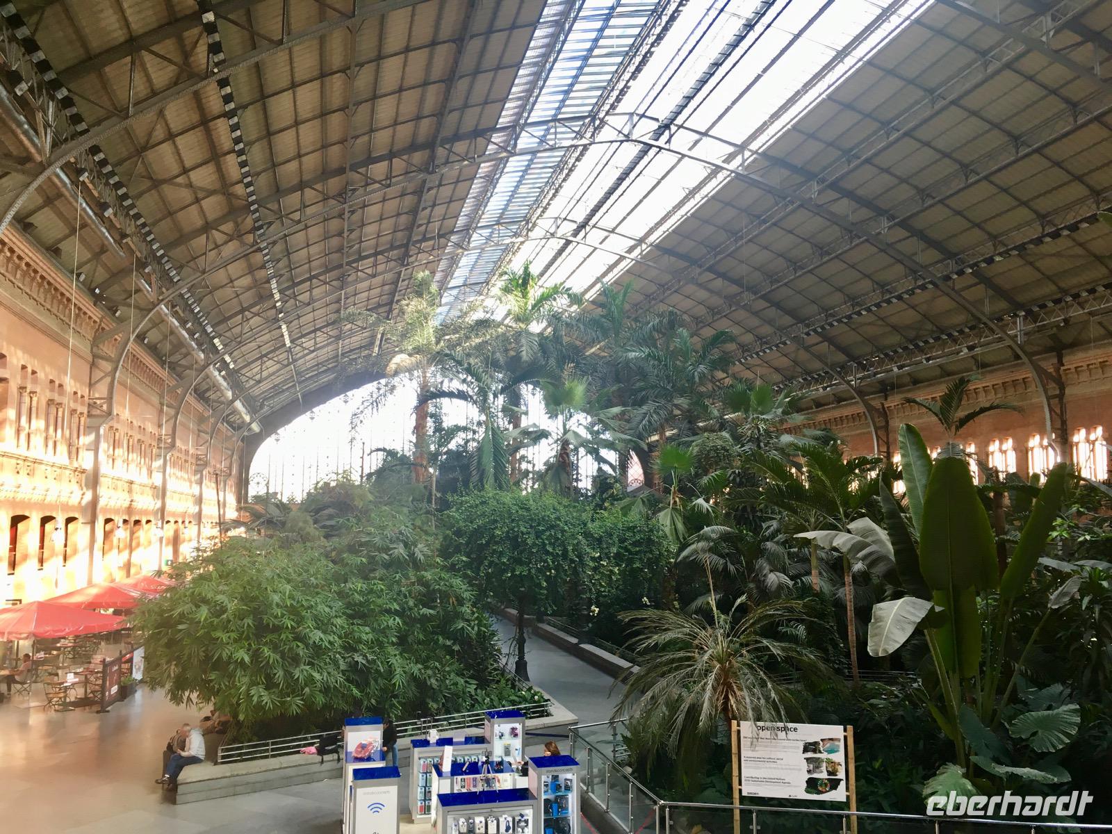 Heute geht es für unsere Eberhardt-Gruppe in die zweitgrößte Stadt Spaniens, nach Barcelona in Katalonien. Der ein oder andere packt noch die letzten Sachen in seinen Koffer und stärkt sich dann mit einem Frühstück. Wir werden sodann zum Bahnhof Atocha gebracht. Auf dem Weg zu unserem Gleis entdecken wir den botanischen Garten mit Palmen in der alten Bahnhofshalle, die Ende des 19. Jahrhunderts aus Glas und Gusseisen erbaut wurde. Wir passieren die Kofferkontrolle und steigen in den Schnellzug AVE ein, der uns in weniger als drei Stunden bequem nach Barcelona bringt.