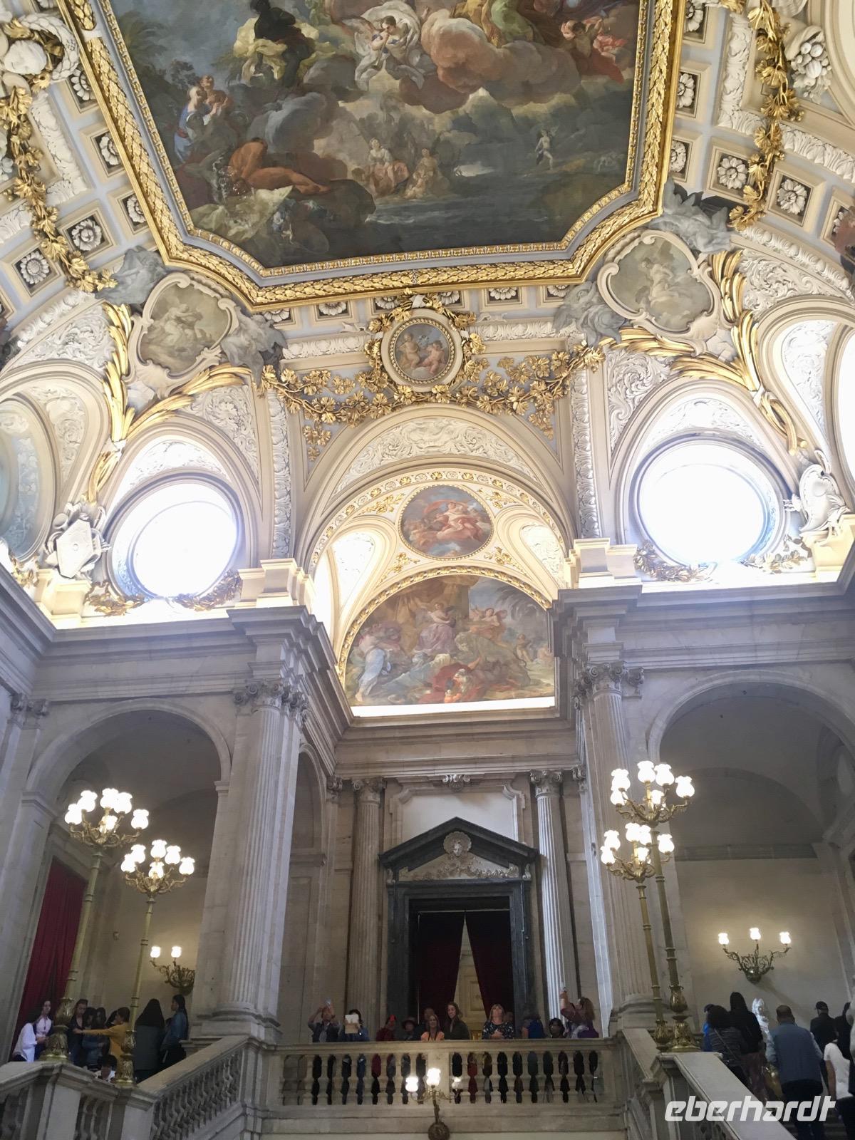 der spanischen Könige dar. Am späten Nachmittag kehren wir dann mit einer Fülle von Eindrücken zurück nach Madrid. Die meisten freuen sich darauf, die Füße kurz hochzulegen, während andere noch das Prado-Museum ansteuern. Am Abend treffen wir uns zum gemeinsamen Abendessen. Doch statt eines Spaziergangs wie die vorigen Tage legen wir den Weg heute mit der Metro zurück. Nach nur drei Stationen erreichen wir den Platz Callao, an dem auch die Gran Vía entlangführt. Der großen Hauptstraße folgend, die an den New Yorker Times Square erinnern mag, erreichen wir das Restaurant Jamón de la Gran Vía. Wir kommen in den Genuss, zahlreiche Tapasvariationen zu probieren. Als Auftakt des reichhaltiges Menüs wird uns ein Tomatensalat und eine Schinken-/ Käseplatte serviert. Es folgen Schinkenkroketten und Tortilla, ein spanisches Kartoffelomelette. Schließlich wird die Hauptspeise gereicht, Rinderfilet auf Pommes mit Gemüse. Nach einem café corto treten wir den Heimweg zu unserem Hotel an und fahren wieder mit der Metro zurück.
