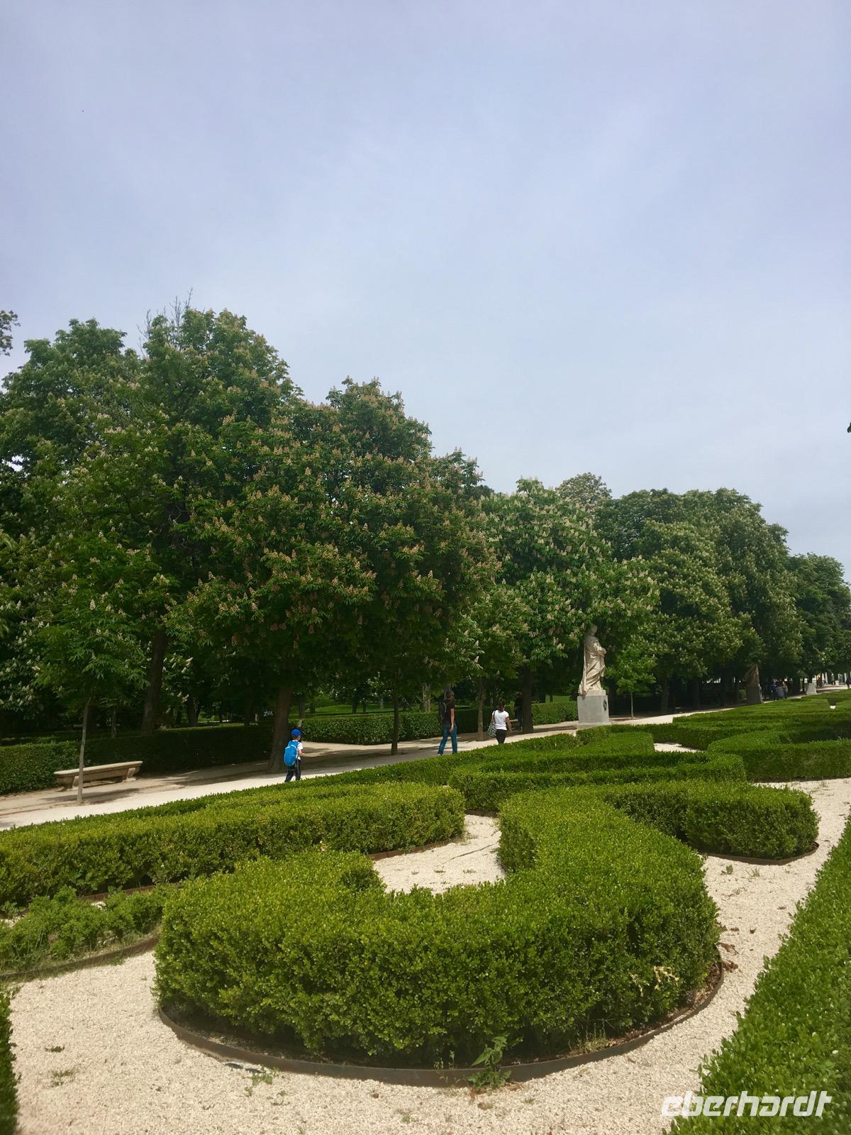 Wir starten den heutigen Tag gemütlich mit einem reichhaltigen Frühstück. Gut gestärkt freuen wir uns darauf, Madrid in seiner ganzen Vielfalt erleben zu dürfen. Um 9 Uhr werden wir sodann von unserer Reiseleiterin Petra abgeholt. Weiterhin treffen wir auf eine weitere Eberhardt-Gruppe, die ebenfalls Madrid bereist. Alle gemeinsam steuern wir den Plaza Mayor an und gelangen im Anschluss zur Markthalle San Miguel. Ein Blick hinein verrät, welch vielfältige Auswahl hier geboten wird - sie reicht von Fleisch über Fisch bis zu einem großzügigen Obstangebot. Einige von uns nehmen sich fest vor, gegen Abend noch einmal zurückzukehren, um durch die Markthalle zu schlendern. Nebenan erwartet uns der Busfahrer José Miguel, mit dem wir eine Stadtrundfahrt unternehmen. Wir bestaunen die breit angelegten Prachtstraßen Madrids und steuern die Stierkampfarena an. Im Anschluss setzen wir die Rundfahrt in Richtung des Stadions fort. Das weckt bei dem einen oder anderen Erinnerungen an die Fußballweltmeisterschaft im Jahr 1982 wach, als Italien Deutschland mit einem 3:1 besiegte. Wir schießen ein paar Fotos von der großen Grünfläche, auf der regelmäßig 22 Weltgrößen des Fußballs spielen. Wir gelangen wieder ins das Stadtzentrum und verbringen dort eine kleine Mittagspause in der Sonne. Petra führt uns im Anschluss durch den Königspalast und nach dem kulturreichen Tag freuen wir uns, den Nachmittag im Retiro-Park ausklingen zu lassen. Die grüne Oase inmitten der Stadt ist nicht nur für Touristen ein idealer Ort zum Erholen, sondern auch bei den Madridern beliebt. Viele von ihnen hat es heute in den Park gezogen, um in einem kleinen Boot auf dem See zu schippern und vom Großstadttrubel abzuschalten.