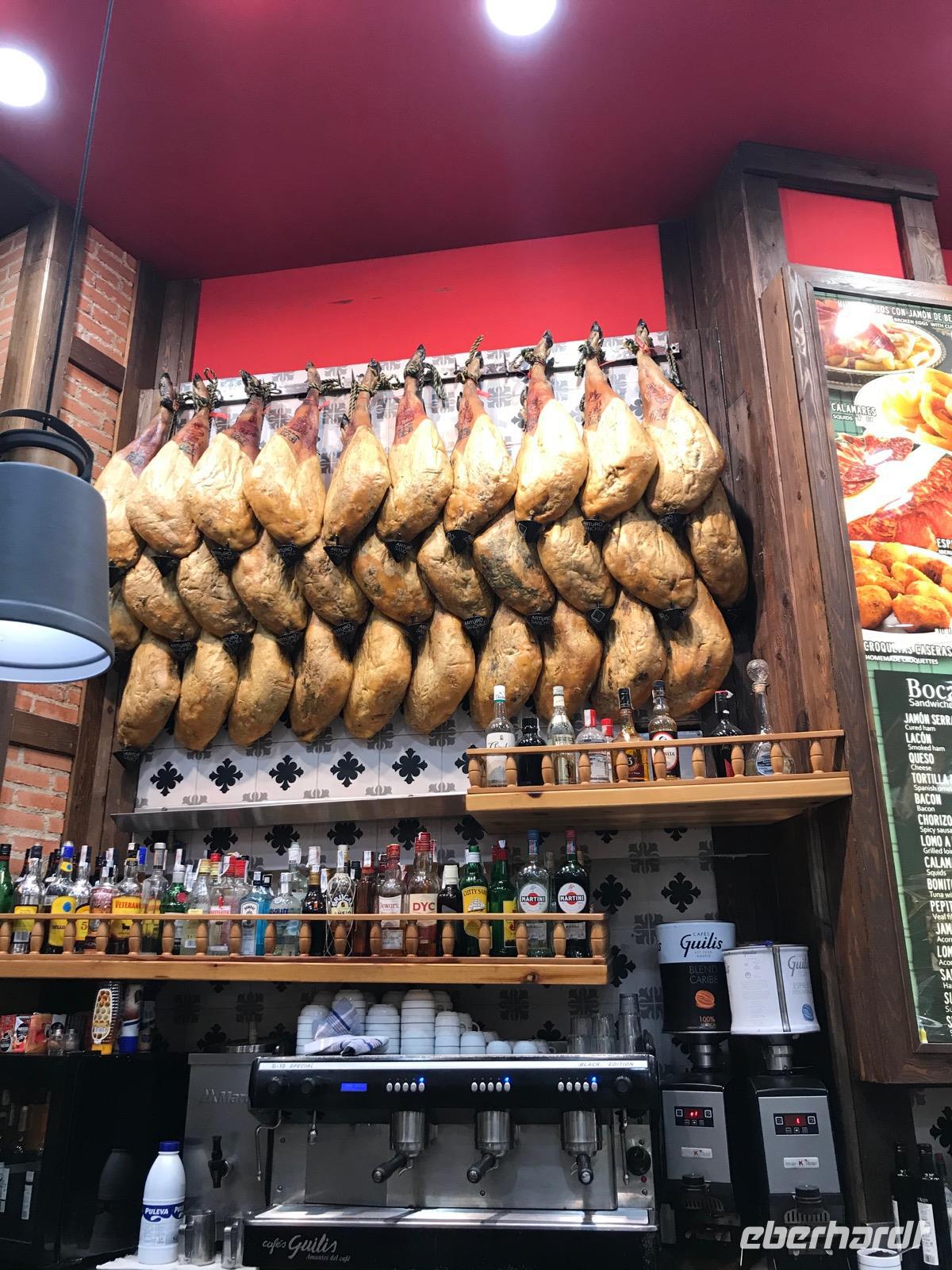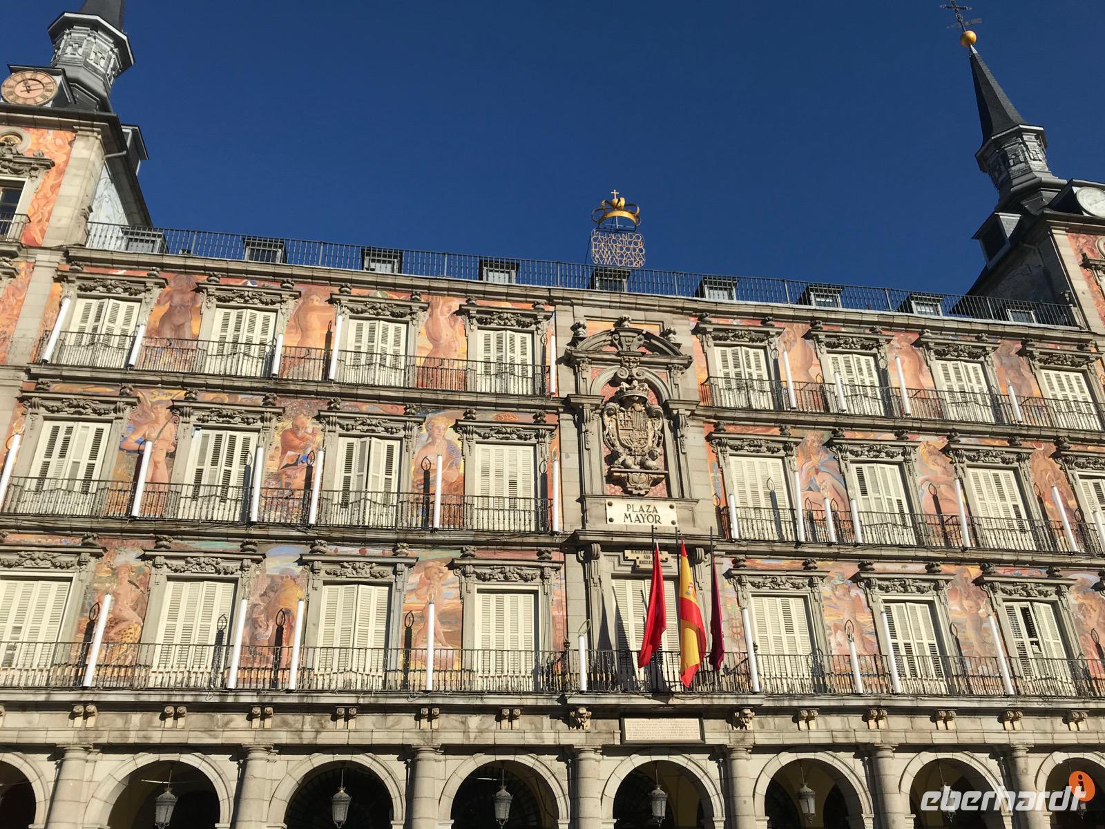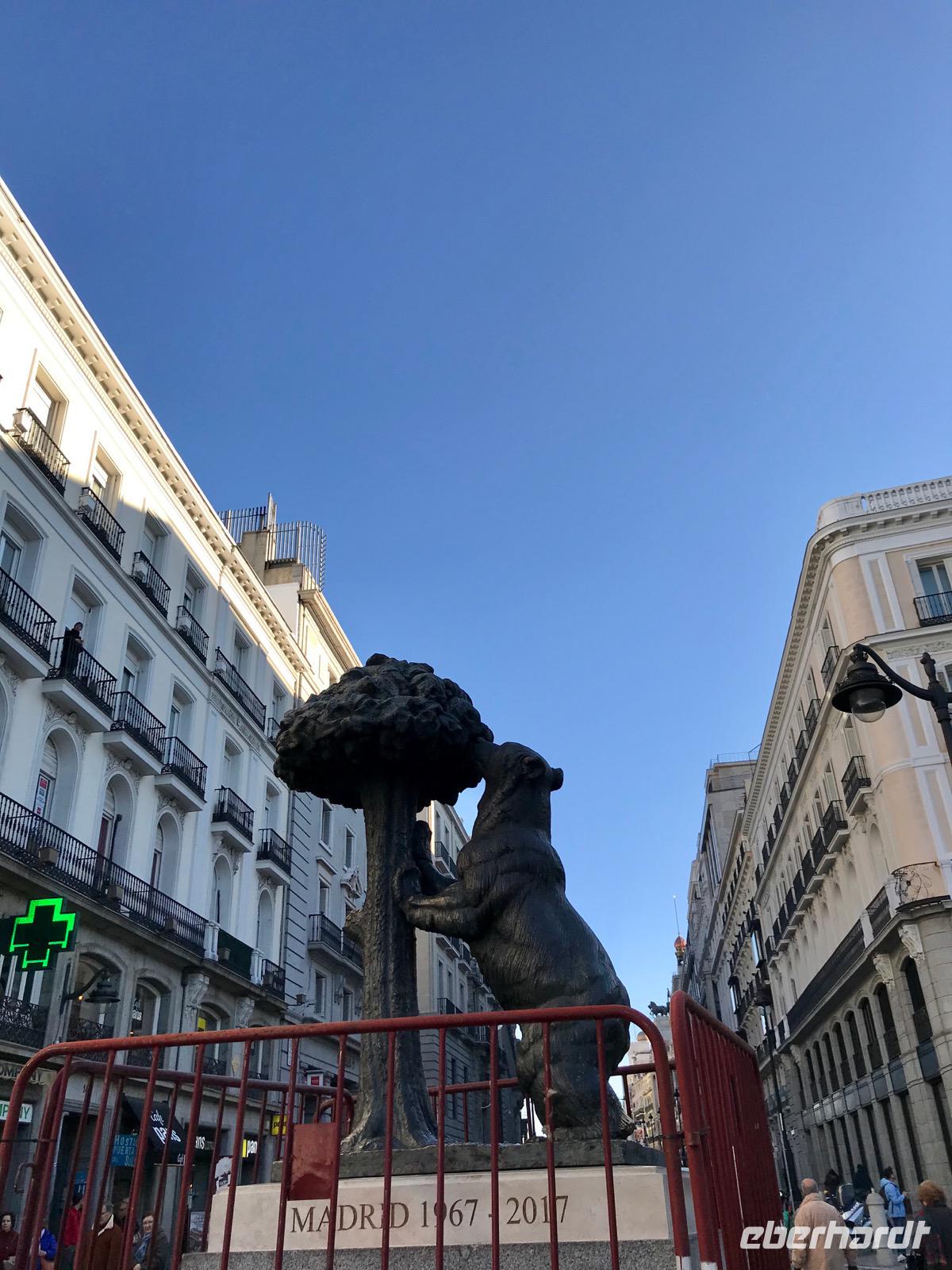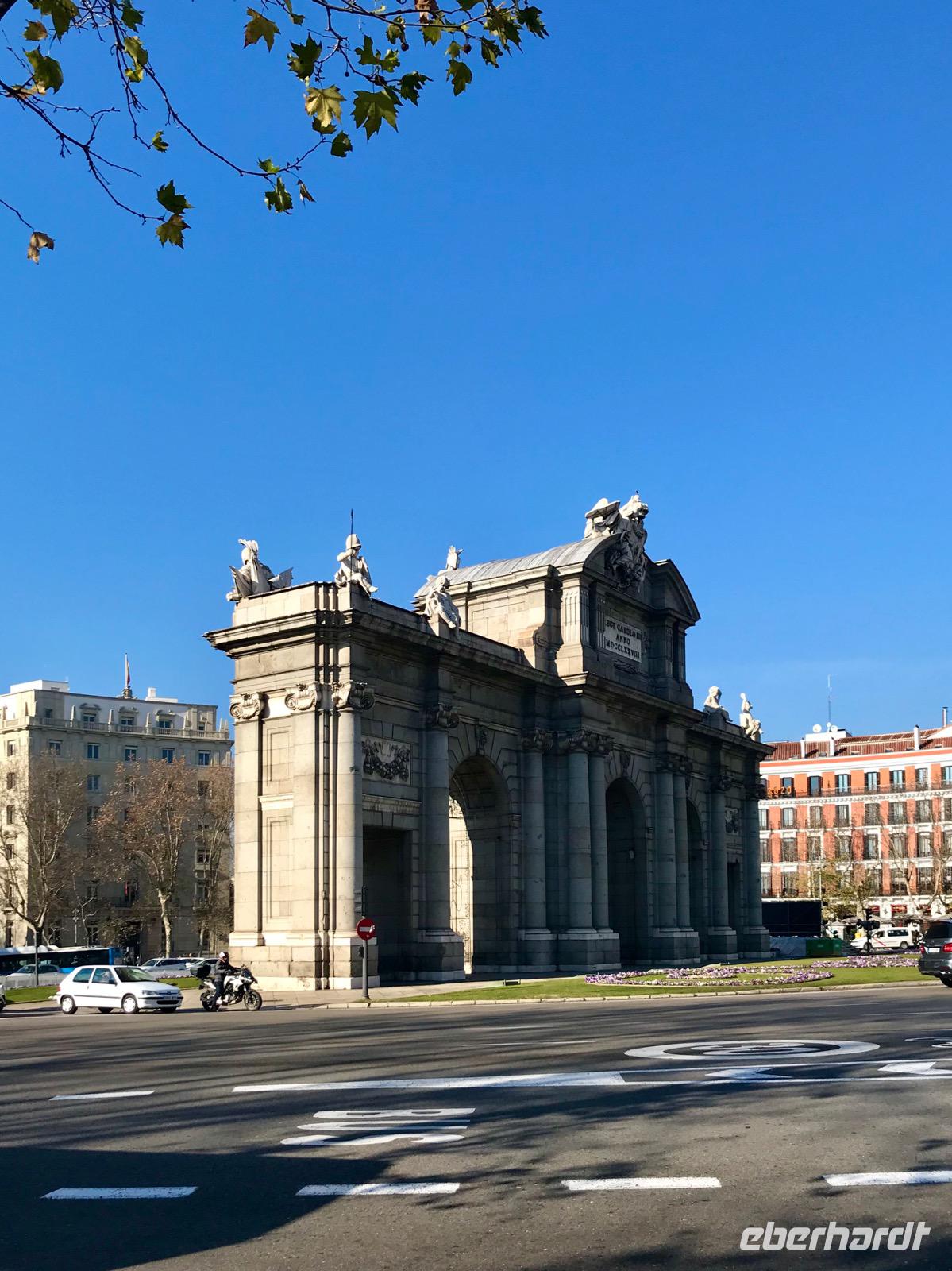 Heute lässt es unsere Eberhardt-Gruppe gemütlicher angehen. Nach einem ausgiebigen Frühstück starten wir am späten Vormittag mit unserer Reiseleiterin Christine zur Stadtrundfahrt. Der längsten Straße Madrids, der Calle de Alcalá, folgend, passieren wir den Plaza de Cibeles. Den verkehrsreichen Platz ziert ein Springbrunnen, der griechischen Göttin Kybeles gewidmet, sowie würdige Gebäude wie die spanischen Nationalbank. Sodann gelangen wir zur Stierkampfarena. Mit Elementen im Mudéjar-Stil begeistert uns die Arena durch ihre Architektur. Wir führen unsere Rundfahrt weiter fort und sehen das Bernabeu-Stadion von Real Madrid. Bevor wir wieder in das Stadtzentrum zurückkehren, machen wir noch einen Abstecher zum Stadtrand, wo zahlreiche Wolkenkratzer, die in den Himmel ragen, das Bild prägen. Wir fahren anschließend den Atocha-Bahnhof an und kehren zurück auf die längste Straße Madrids, die Calle de Alcalá.