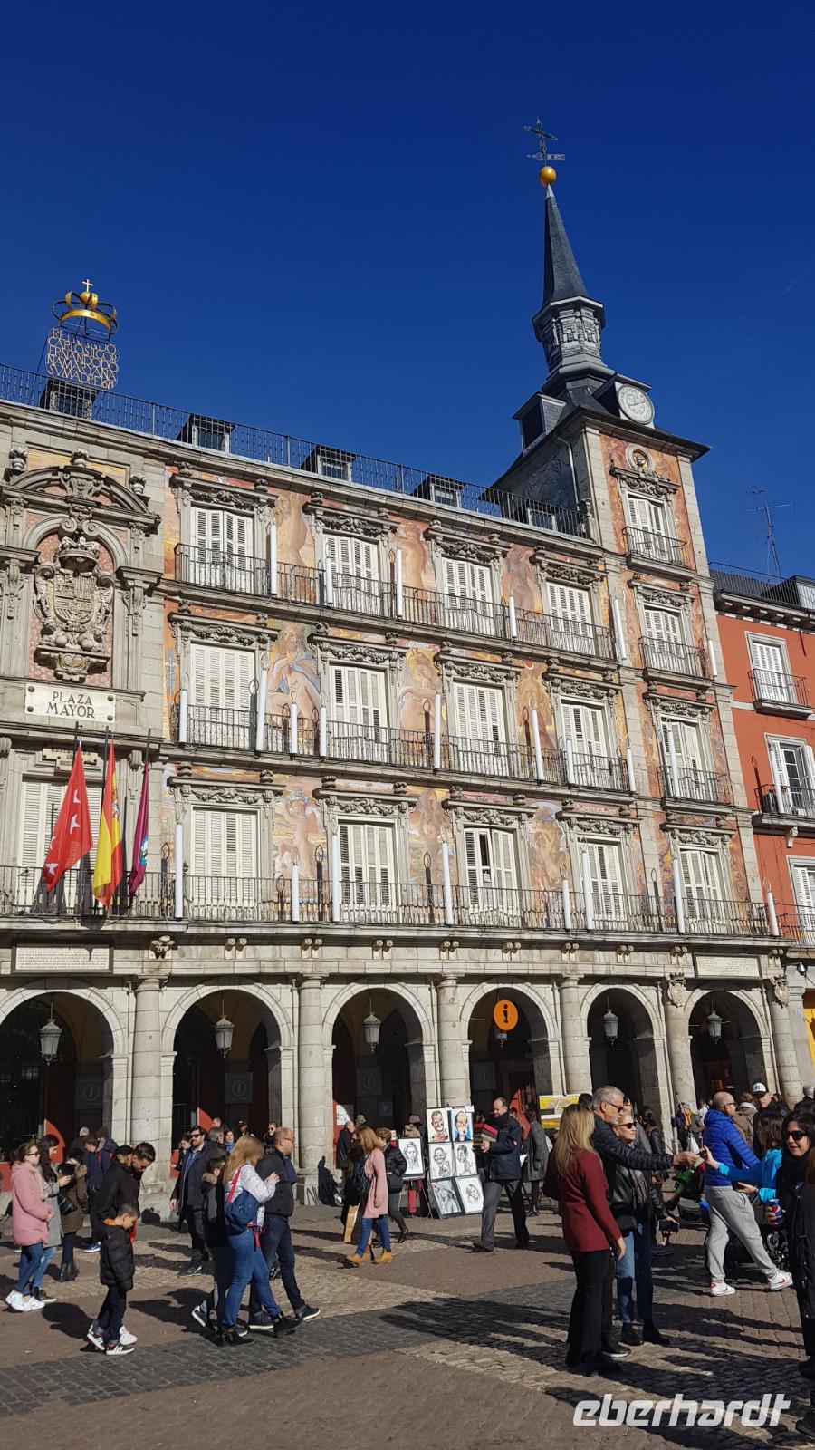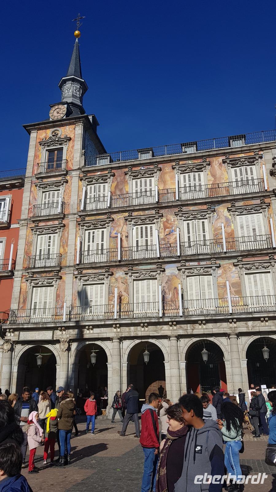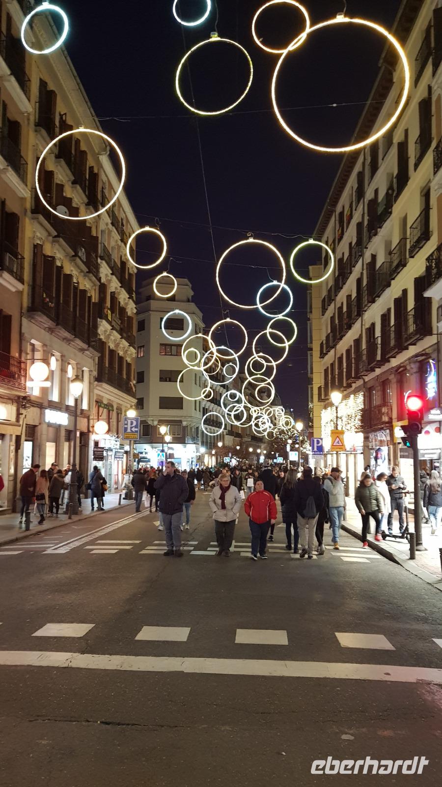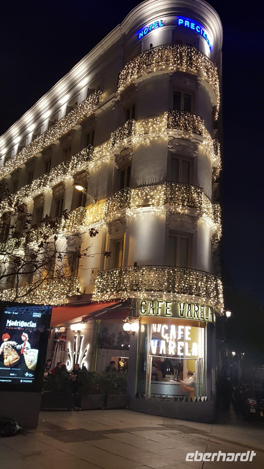 Unser erster Tag in Madrid haben wir sehr ruhig verbracht. Nach der Ankunft und Hotel Check in haben wir einen kleinen Spaziergang unternommen. Die zwei wichtigsten Plätze, Puerta del Sol und Plaça Mayor waren nur einige Gehminuten von uns entfernt. In der Markthalle haben wir einen Aperitif getrunken, nach Spanischer Art. Die ganze Stadt war zu den Festen geschmückt, bei dem grossen Weihnachtsmarkt gab es auch eine Krippe.
