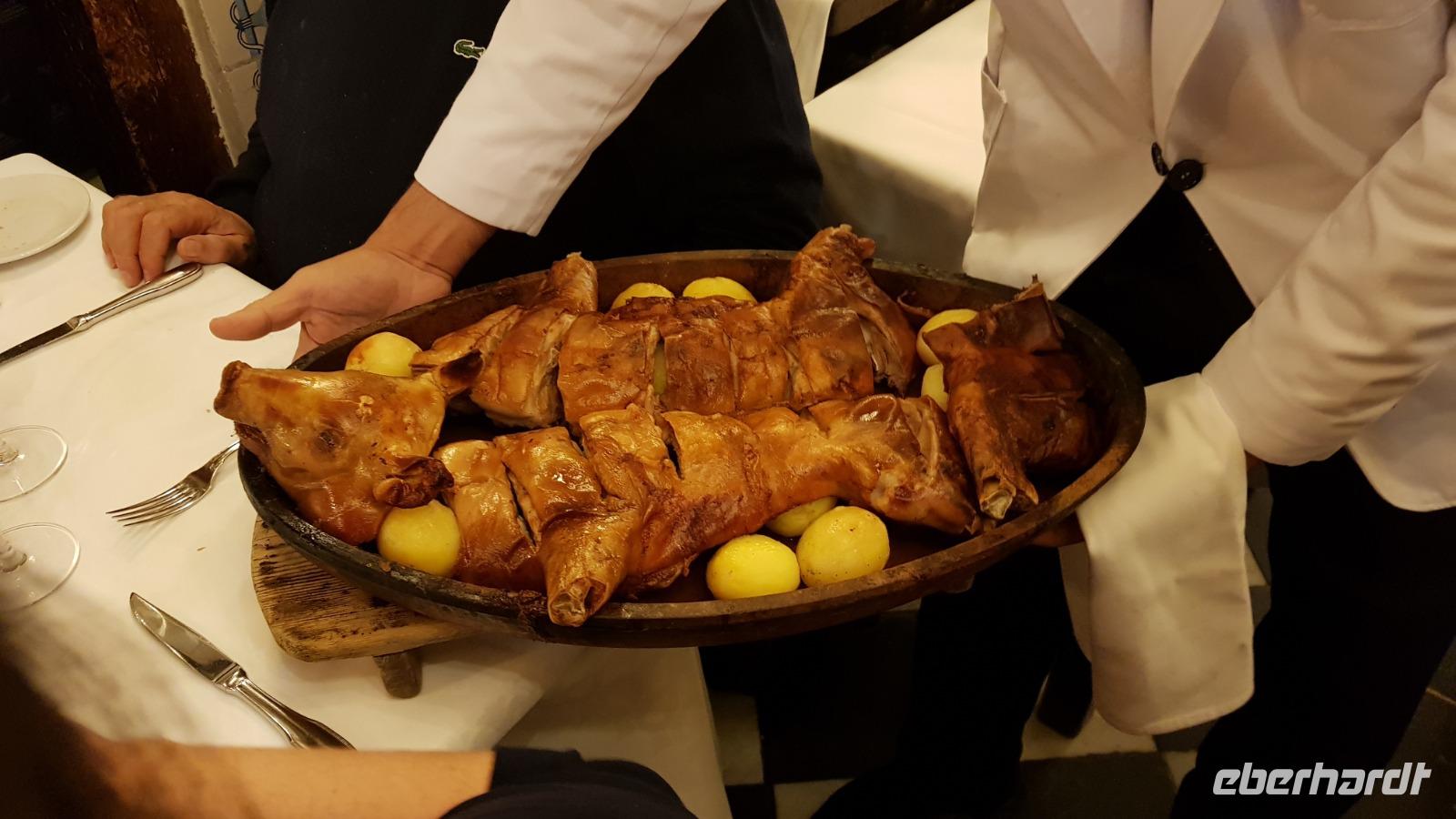 Spät abends war für uns ein Restaurant reserviert. Man sagt, dass sei das älteste Restaurant der Welt, so „Guinness Buch der Rekorde". "Botín" wurde 1725 gegründet. Das war uns eine Ehre, eine Spezialität des Hauses und der Kastilischen Küche, "Spanferkel nach kastilischer Art" zu probieren. Man sagt, es wird im Ofen vorbereitet, der seit Gründung des Restaurants in Betrieb sei.