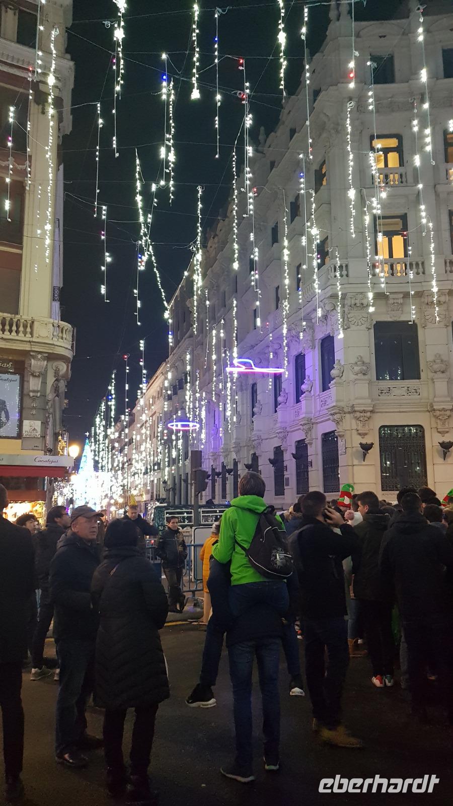 100 Jahre später ist der Brauch, Weintrauben zu essen, ein Muss in Spanien und anderen Ländern von Lateinamerika. Es ist so populär geworden, dass das Zentrum von Madrid für eine gewisse Zeit geschlossen wird und nur die 20 000 Glücklichen dürfen auf den Platz Puerta del Sol kommen. Die Leute nehmen eine Schlange einige Stunden früher und schon gegen 21 Uhr abends ist es schwer, sich dort zu bewegen.