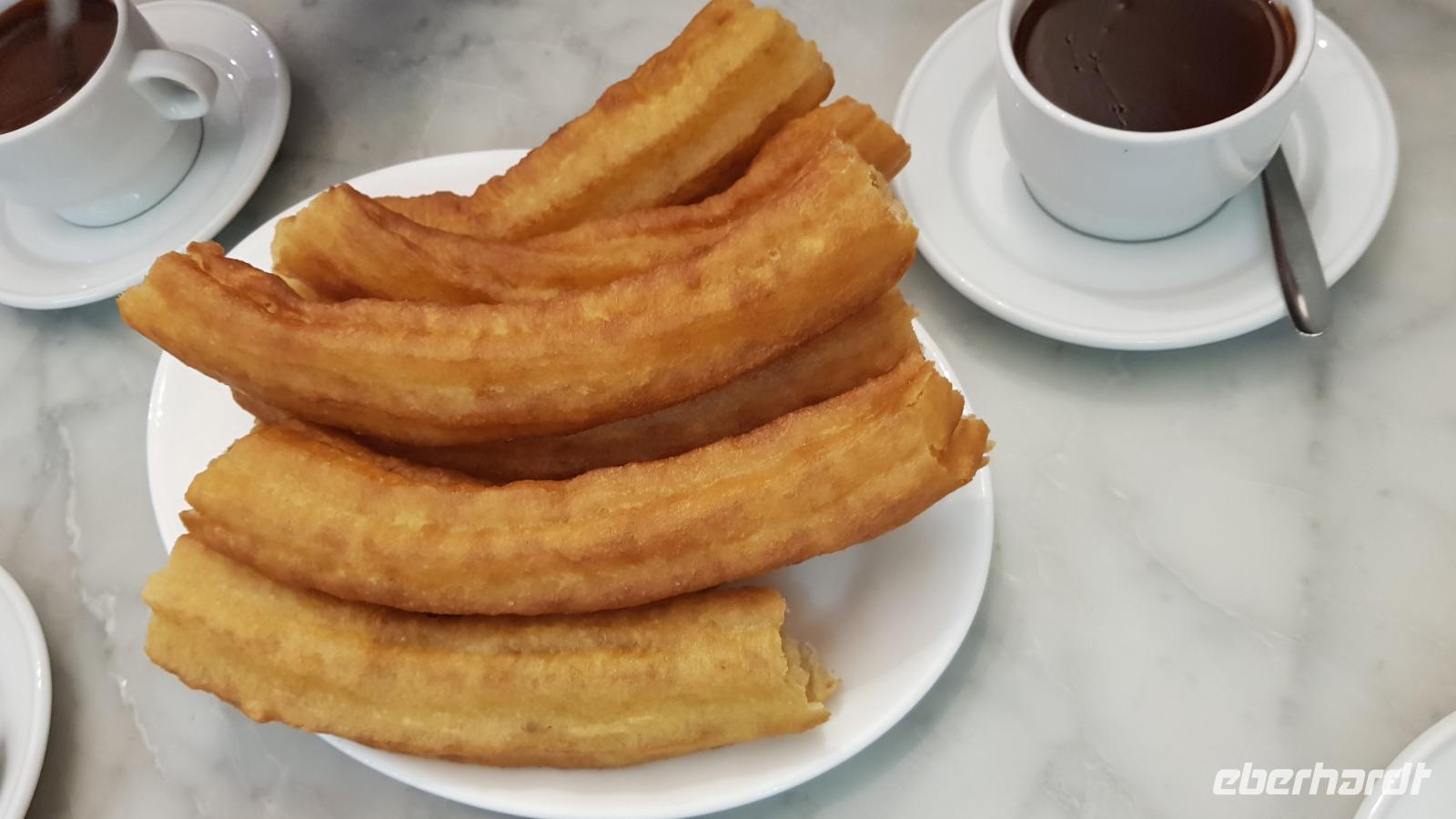 Was für ein Glück den heutigen Tag erst um 13 Uhr anfangen zu können. Unser Guide Dani hat uns abgeholt, um eine Stadtrundfahrt zu machen. Früh am Morgen am 1 Januar ist Madrid leer, also haben wir viel mehr geschafft, als geplant. Sogar einen Kaffee bei Bernabeu Stadion getrunken. Danach sind wir zu Fuss zu einer der ältesten in Madrid Chokolateria gegangen. Die Menschenschlange war gross, aber wir haben Glück gehabt, einen Platz zu bekommen und die typischen Schokolade und Churros zu kosten, in unserer Variante Porras. Meine Ansicht nach, sind die letzten noch besser, als Churros.