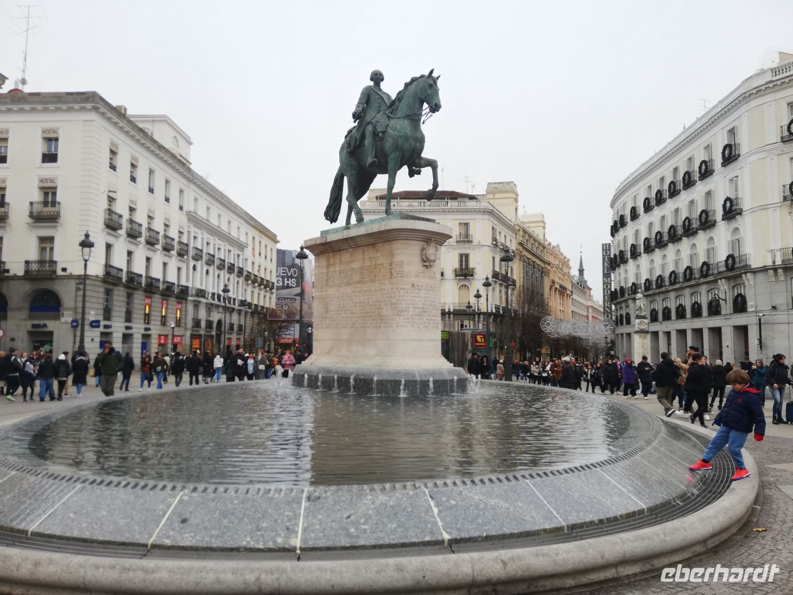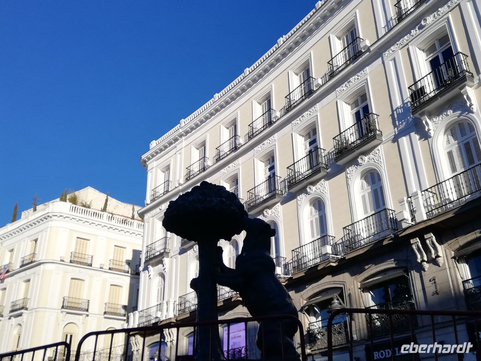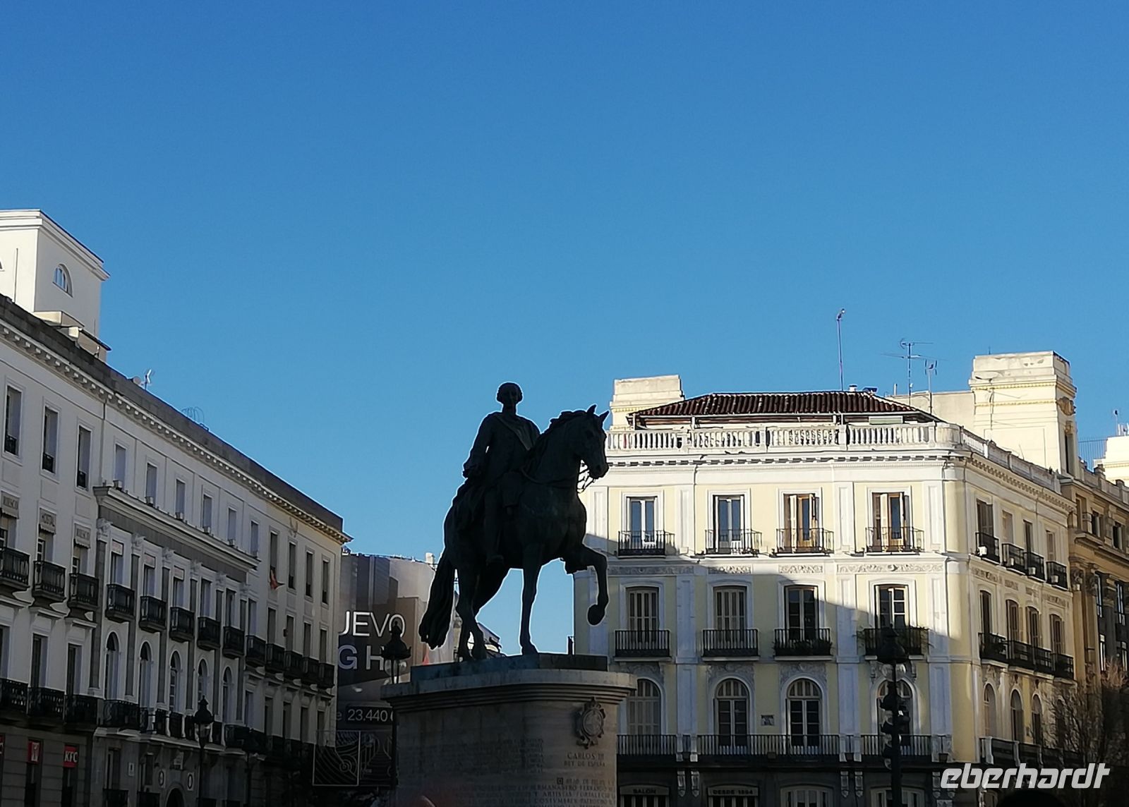 Nun machen wir uns auf den Weg und folgen Angela. Es ist noch etwas kühl, aber ein blauer Himmel verspricht uns heute ein Kaiserwetter. Ein paar Schritte, und schon sind wir an der „Puerta del Sol“ - heute erscheint der Platz ganz anders als gestern im Lichterglanz.