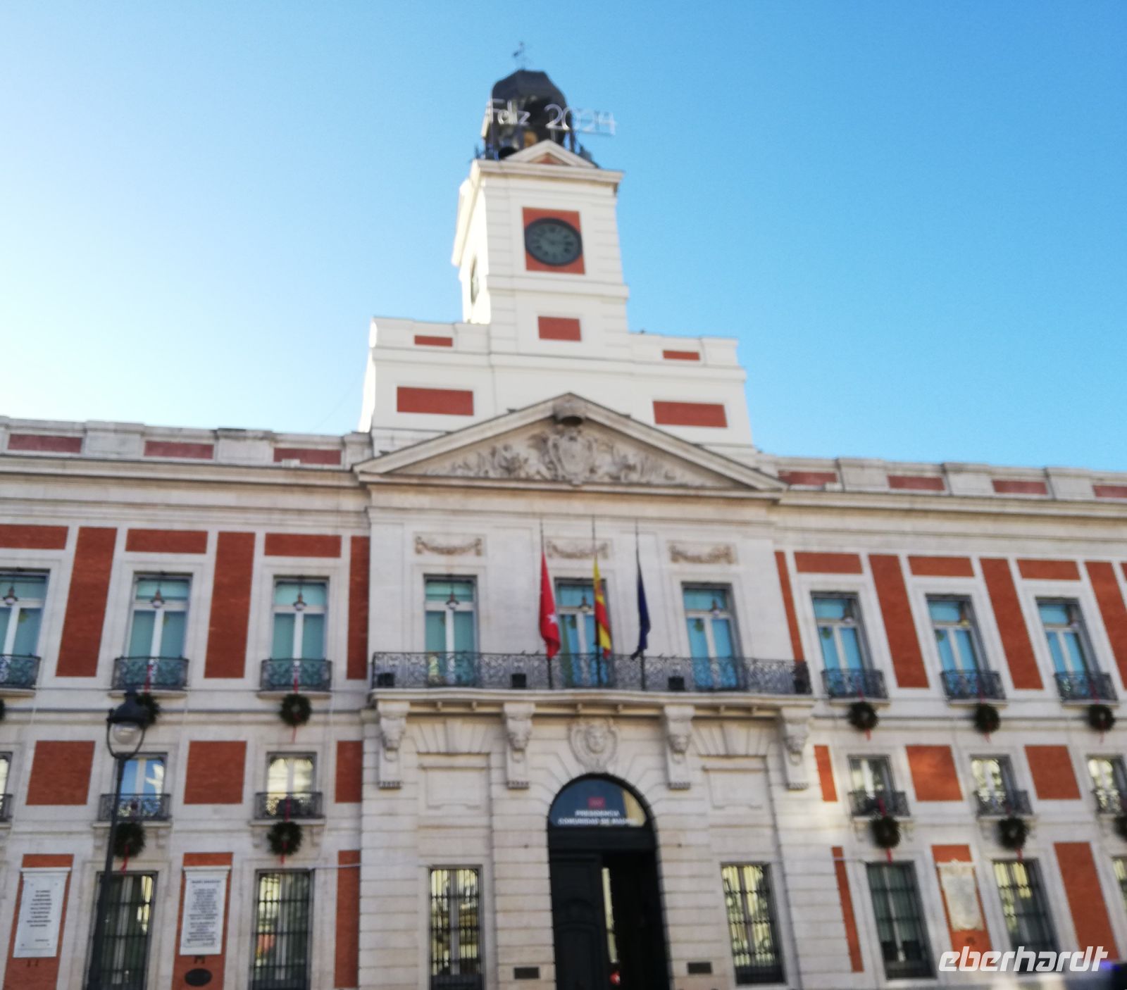Wir laufen noch einmal über Puerta del Sol, noch herrscht hier die Ruhe vor dem Sturm, hier feiern heute die Madrilenen den Silvester und folgen der Tradition der „Glückstrauben“.