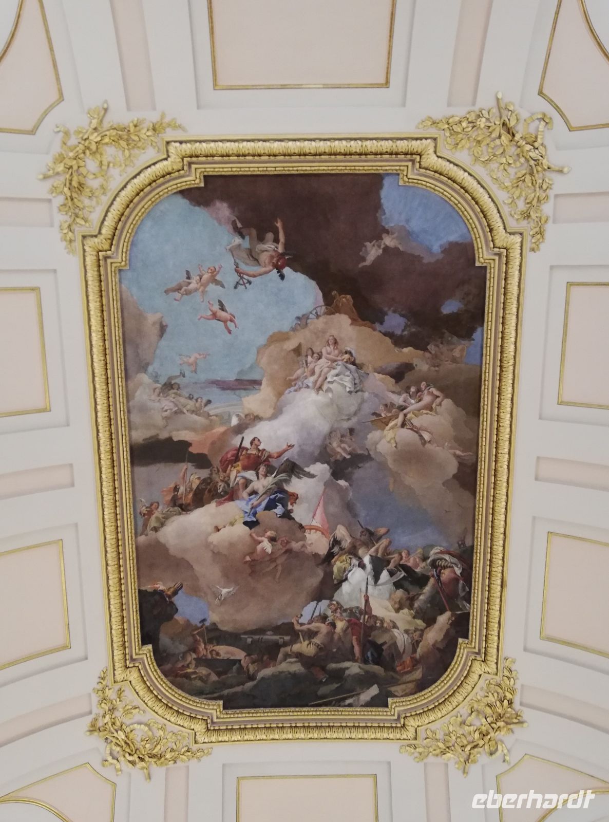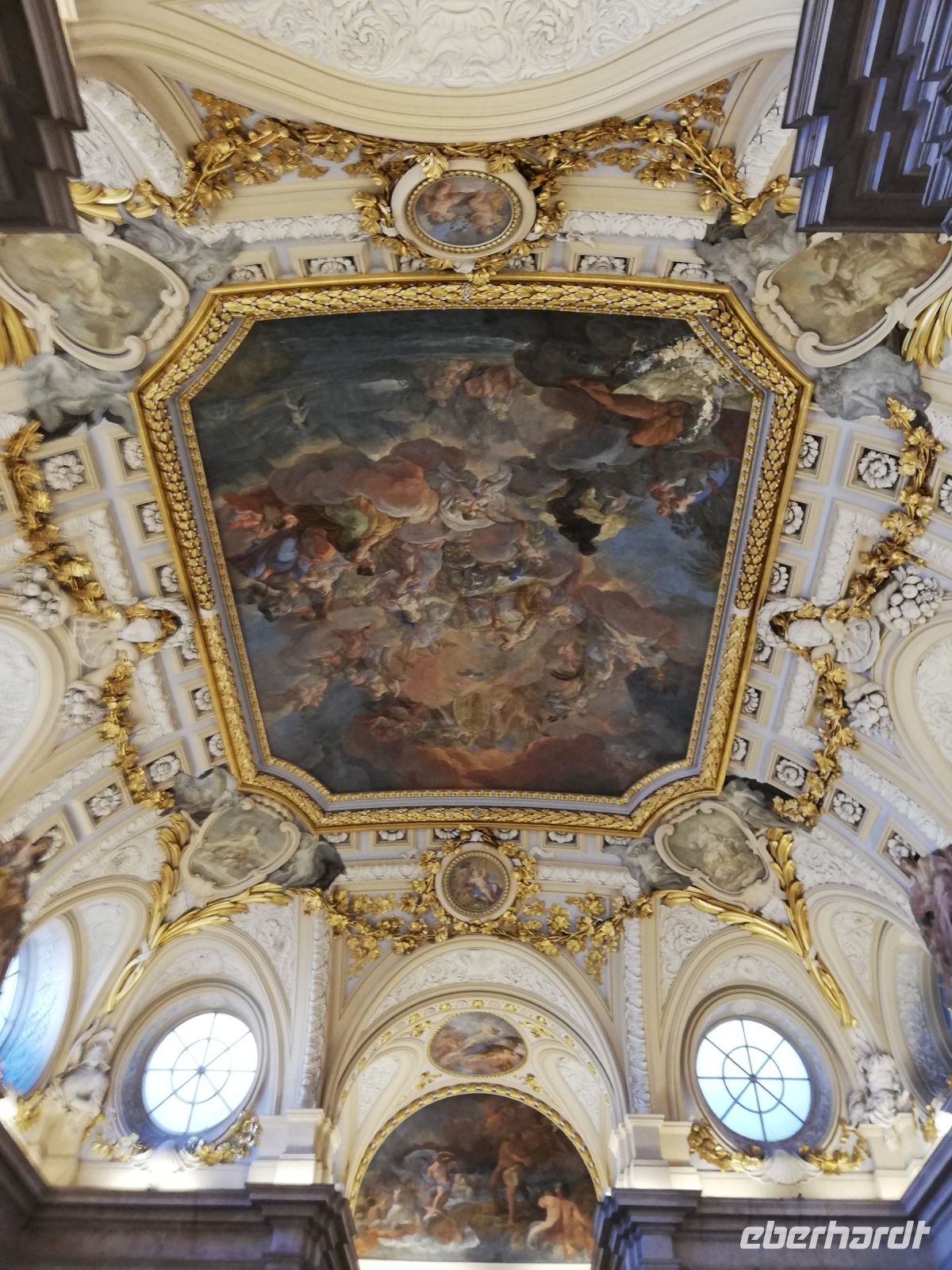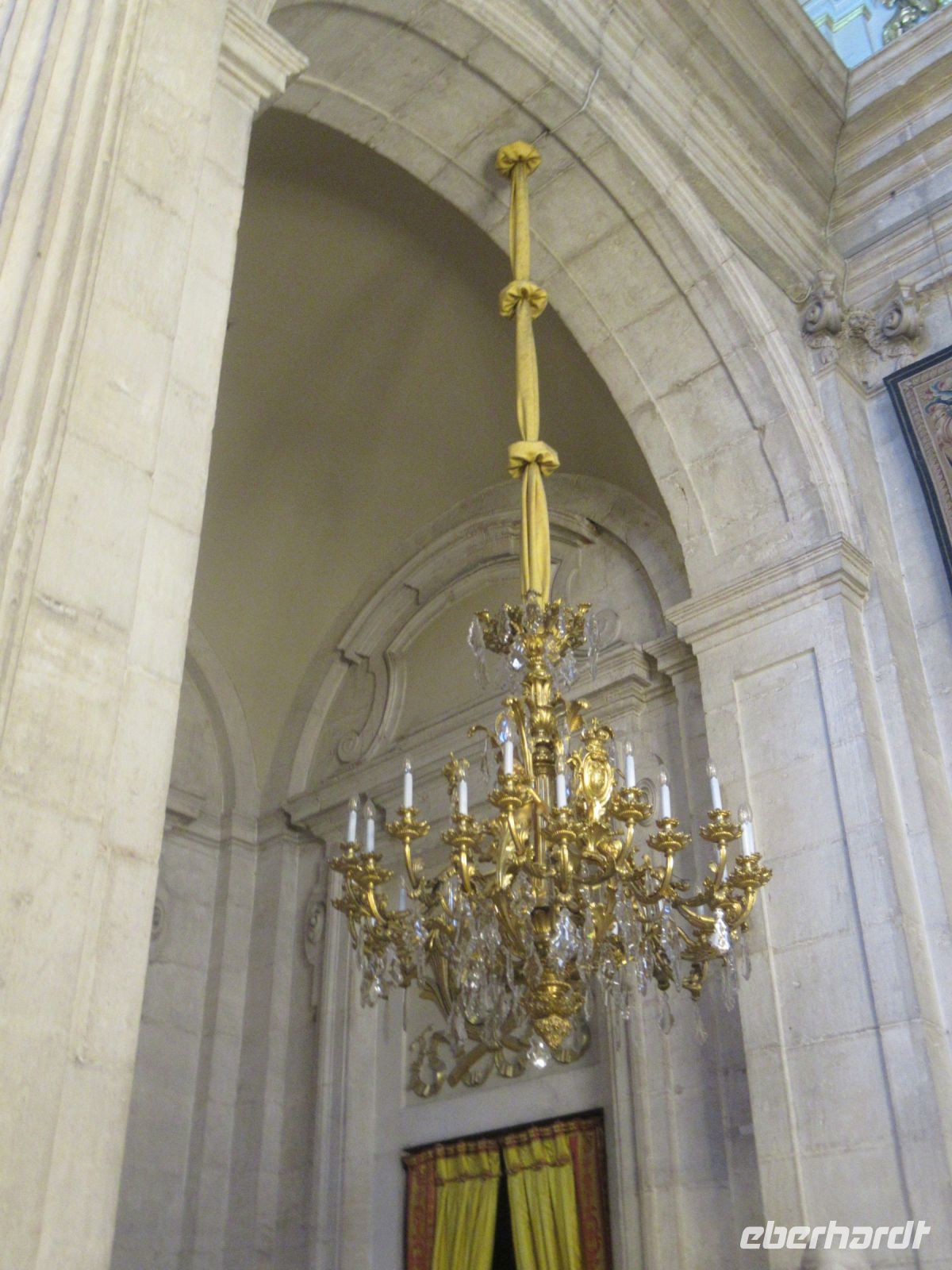 Wir beschreiten über die mondänen Treppen die ersten Säle und besichtigen einen Saal nach dem anderen und kommen aus dem Staunen gar nicht raus. Überwältigender Prunk, Gold, Seidentapeten, Statuen und die wunderschöne Luster schmücken auf unterschiedliche Weise die Säle. Einige davon werden auch heute noch von Königsfamilie für die Staatsempfänge genutzt. Etwas mühselig arbeiten wir uns jedoch mit dem Audio-Visual Geräten durch…