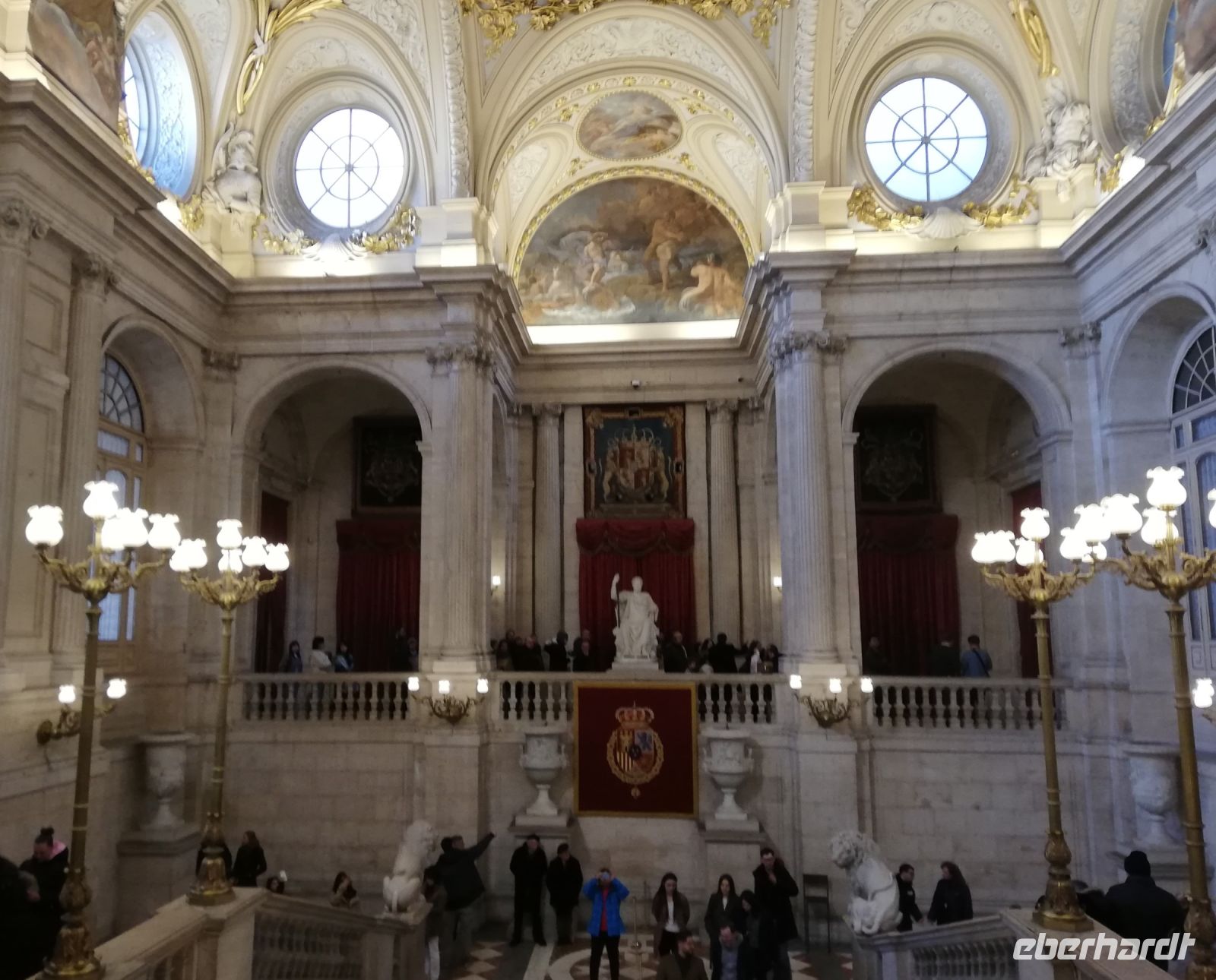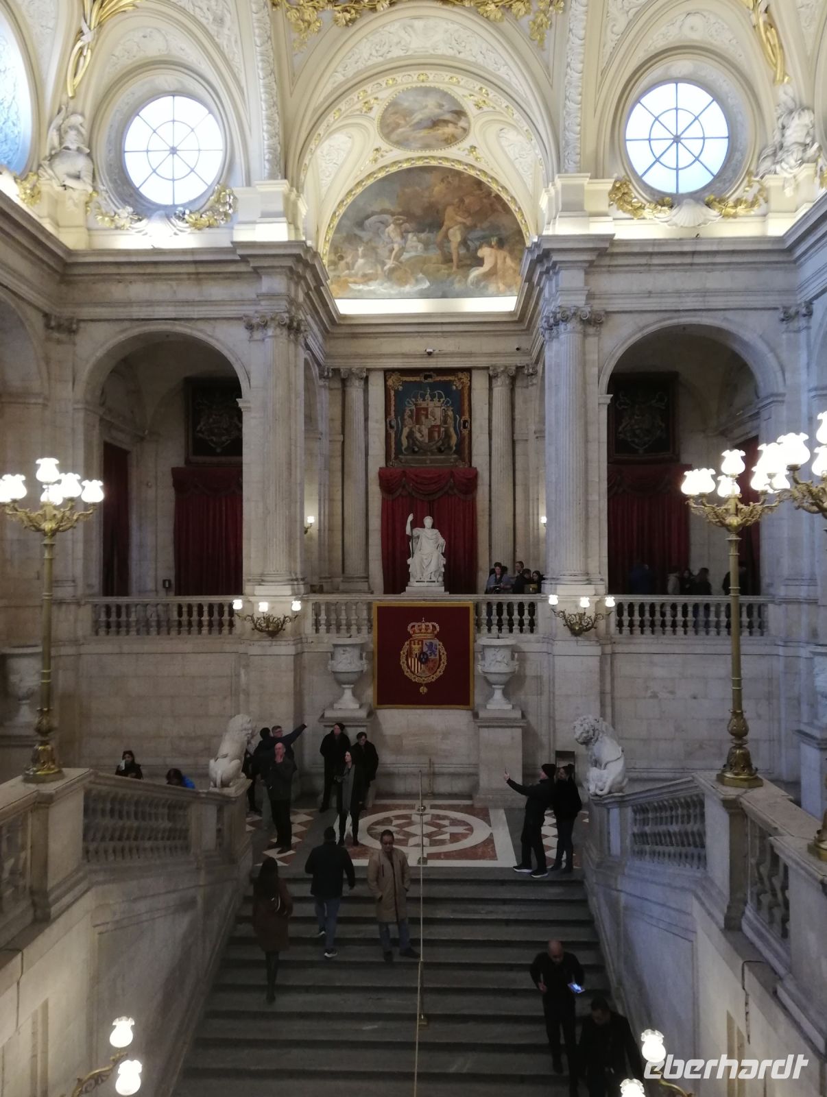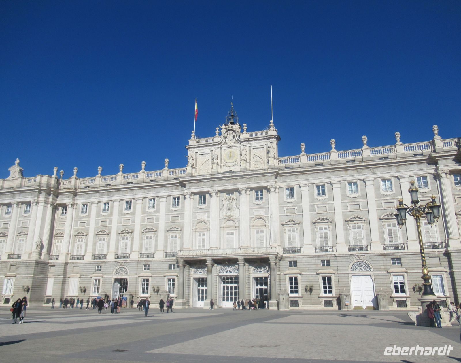 Über die Calle Mayor gelangen wir bald von oben zu Almudena Kathedrale und haben von oben einen wunderbaren Blick auf die imposante Kirche. Vor dem Palacio Real machen wir eine kleine Pause, bewundern die wunderschöne Fassade de Palacio, bevor wir eintreten dürfen.