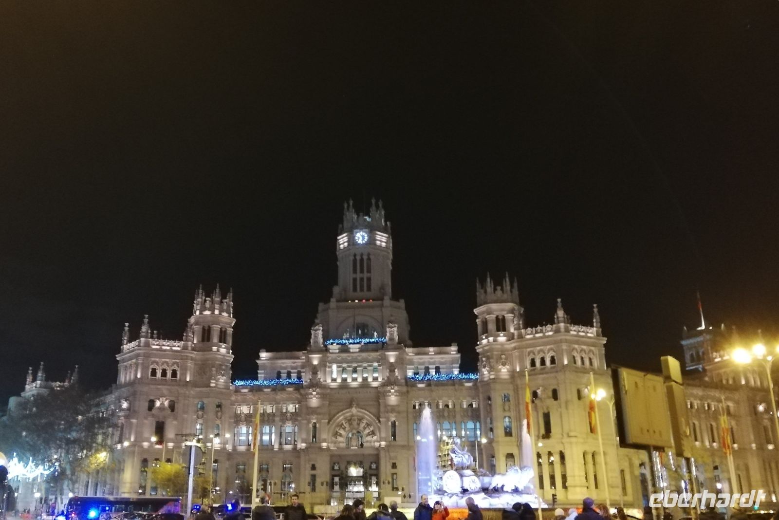 An dem Glockenturm des früheren Postamtes feiern die Madrilenen die Silvesternacht und begrüßen das Neue Jahr mit der Tradition: bei den letzten 12 Glockenschlägen des Jahres, wird bei jedem Glockenschlag eine Traube gegessen. Das soll Glück bringen und Wünsche erfüllen. Morgen ist es soweit: 31.12.2023! Mal sehen…